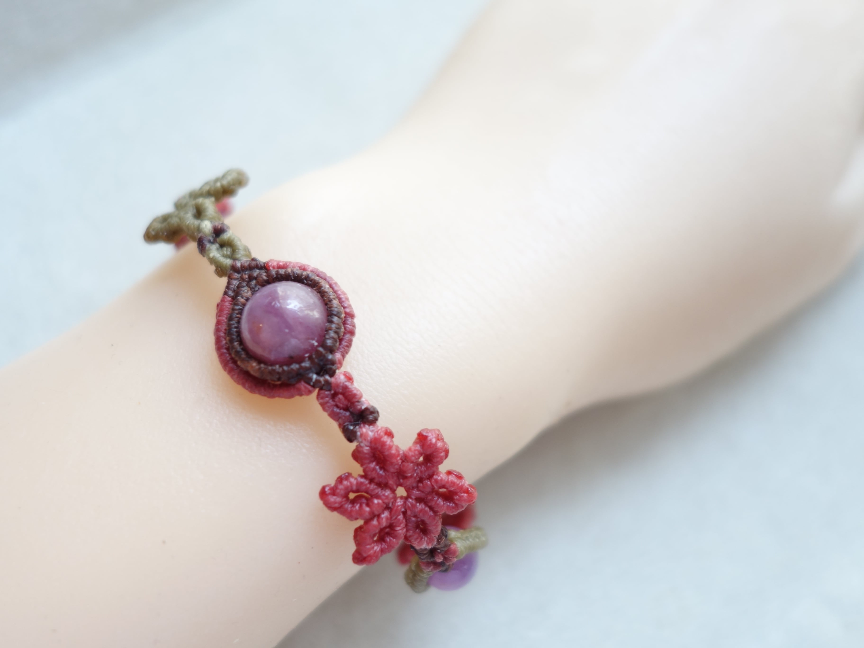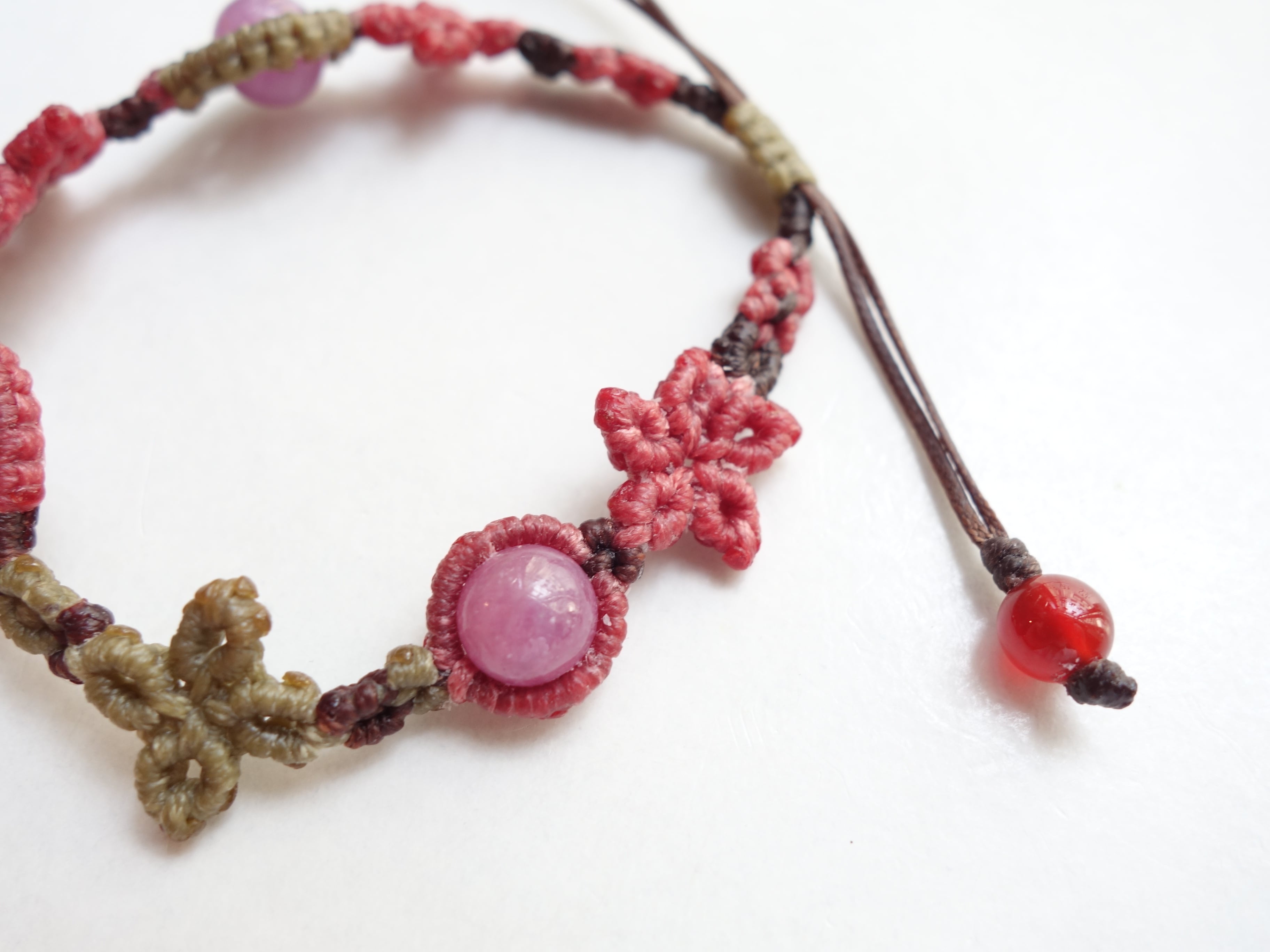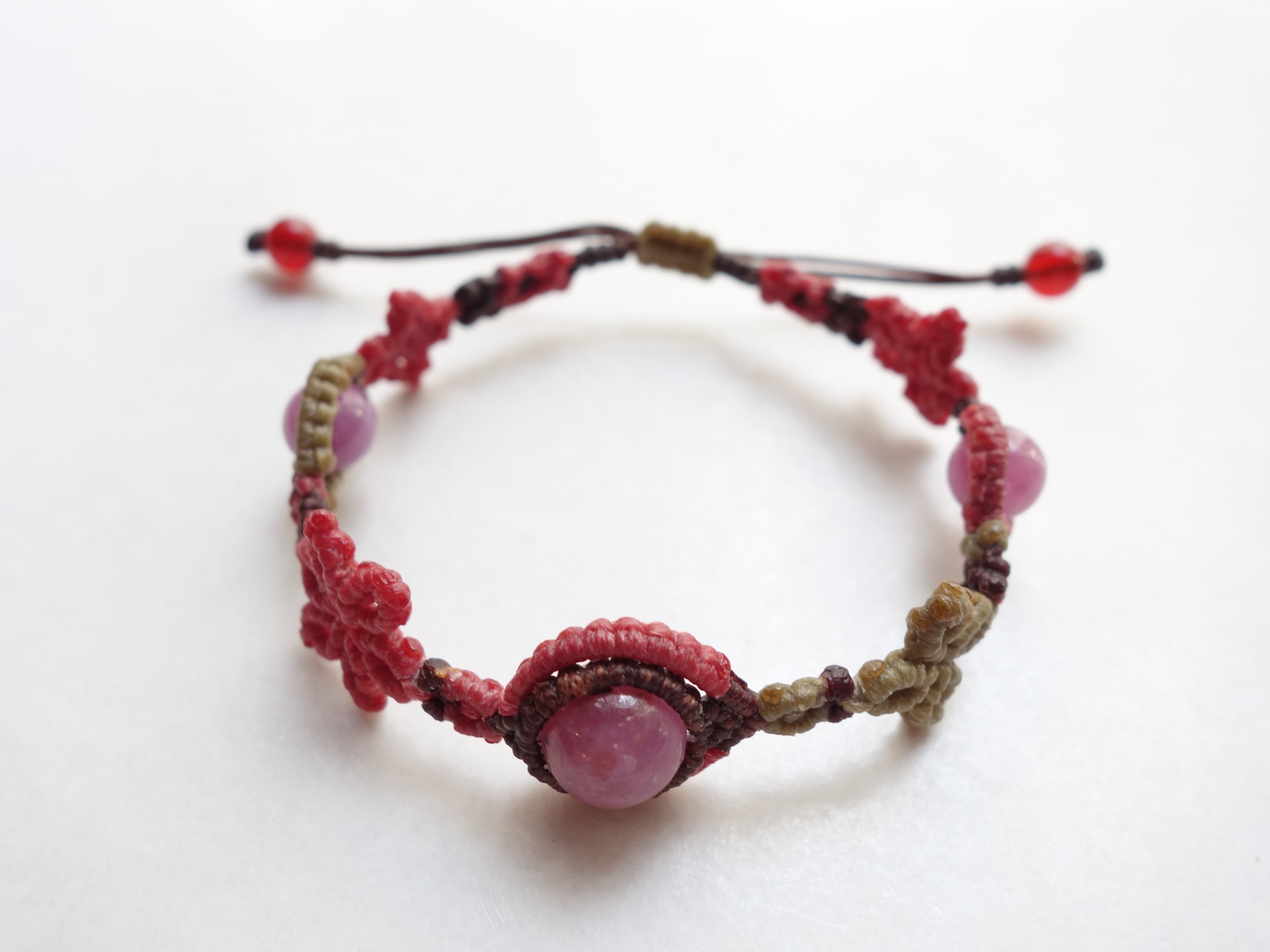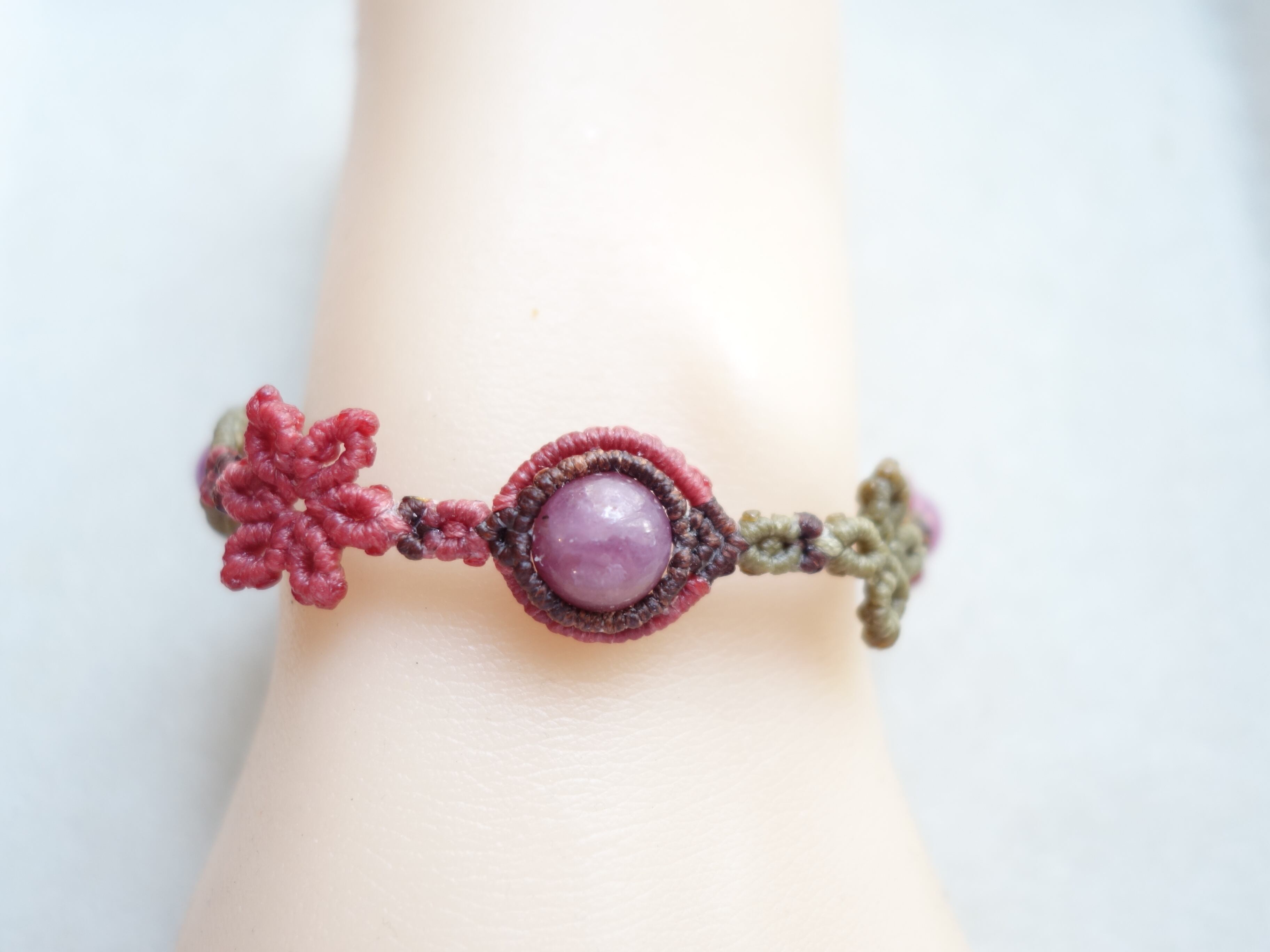 【ルビー】フラワーモチーフ マクラメブレスレット