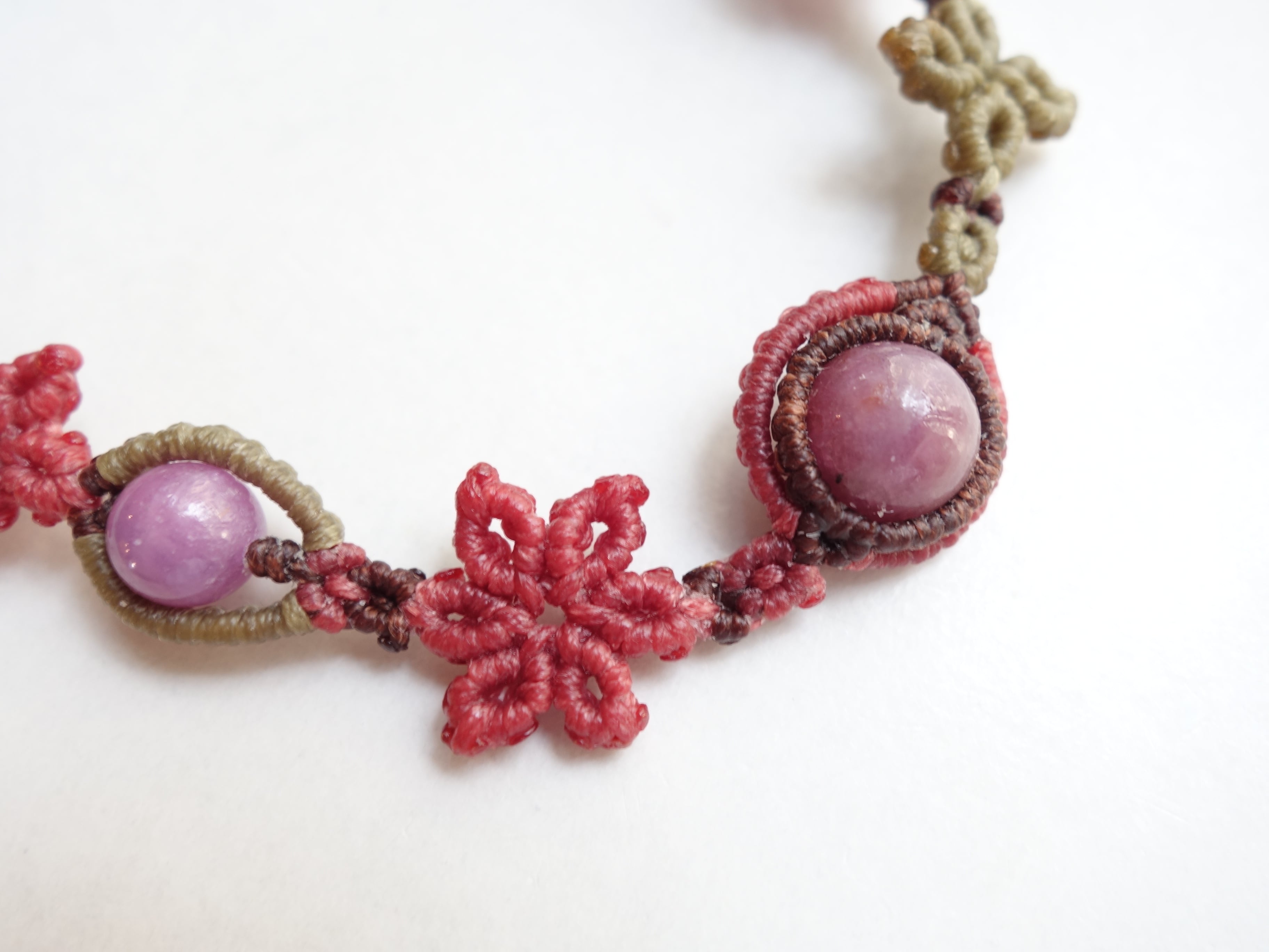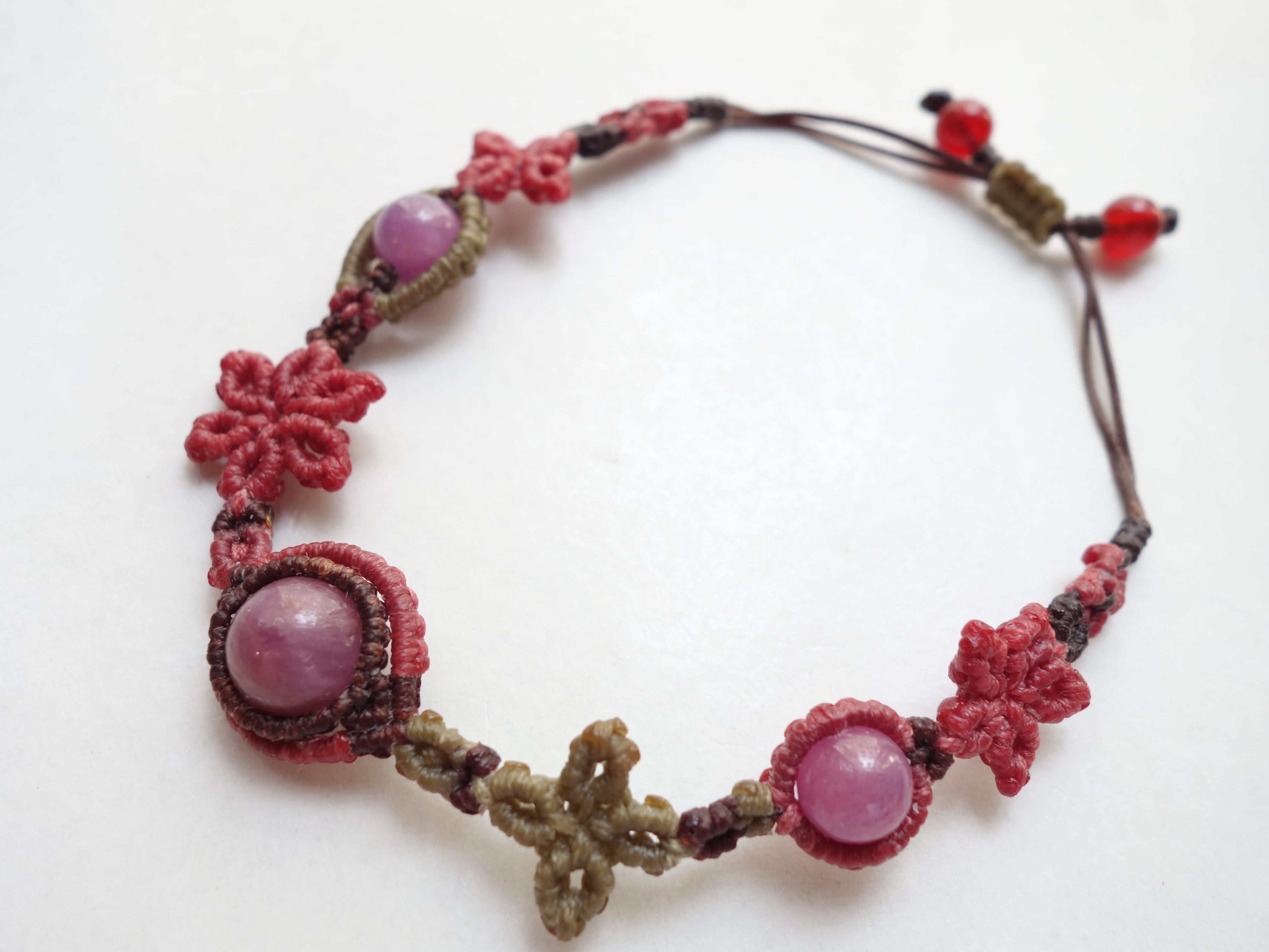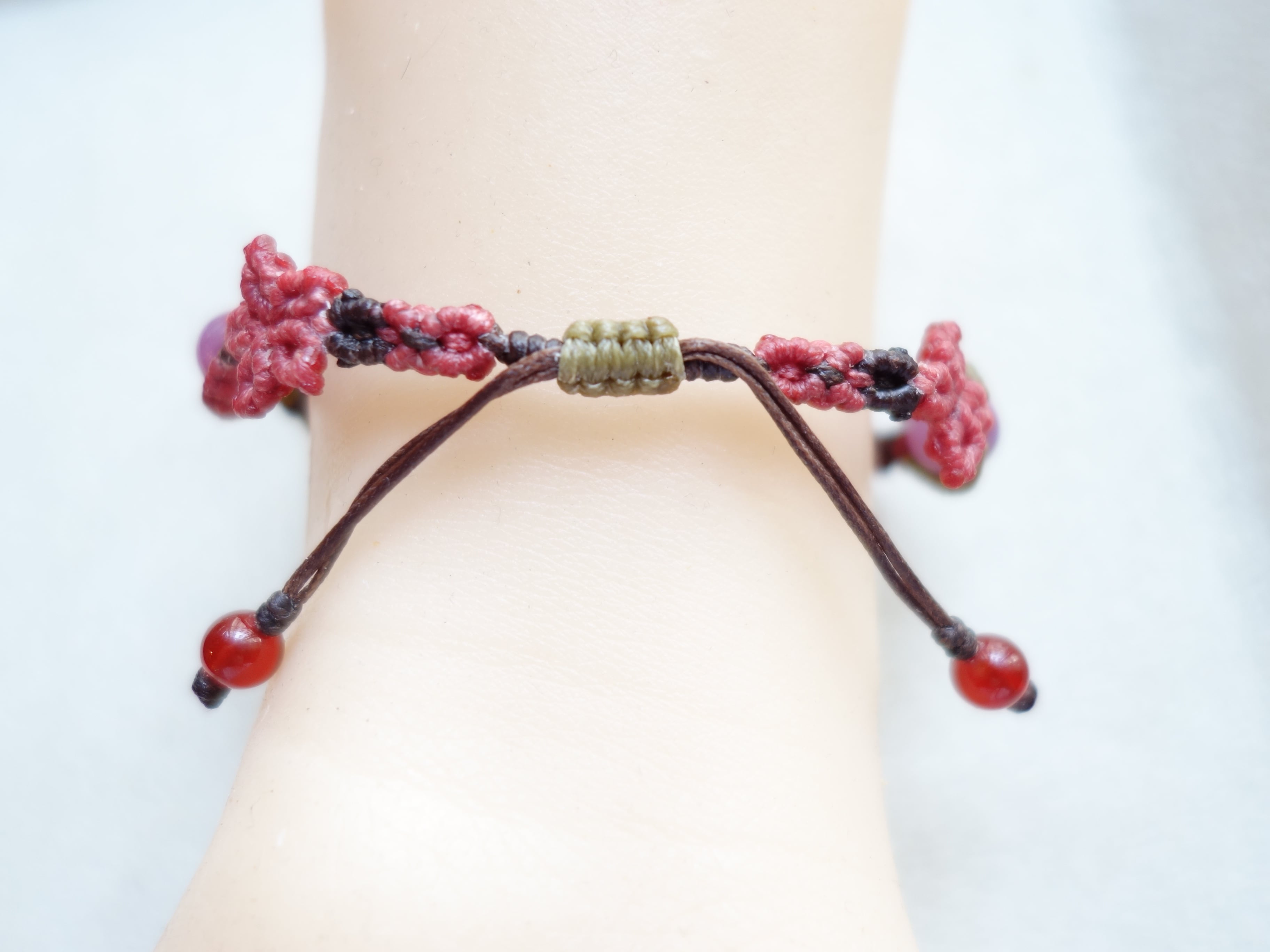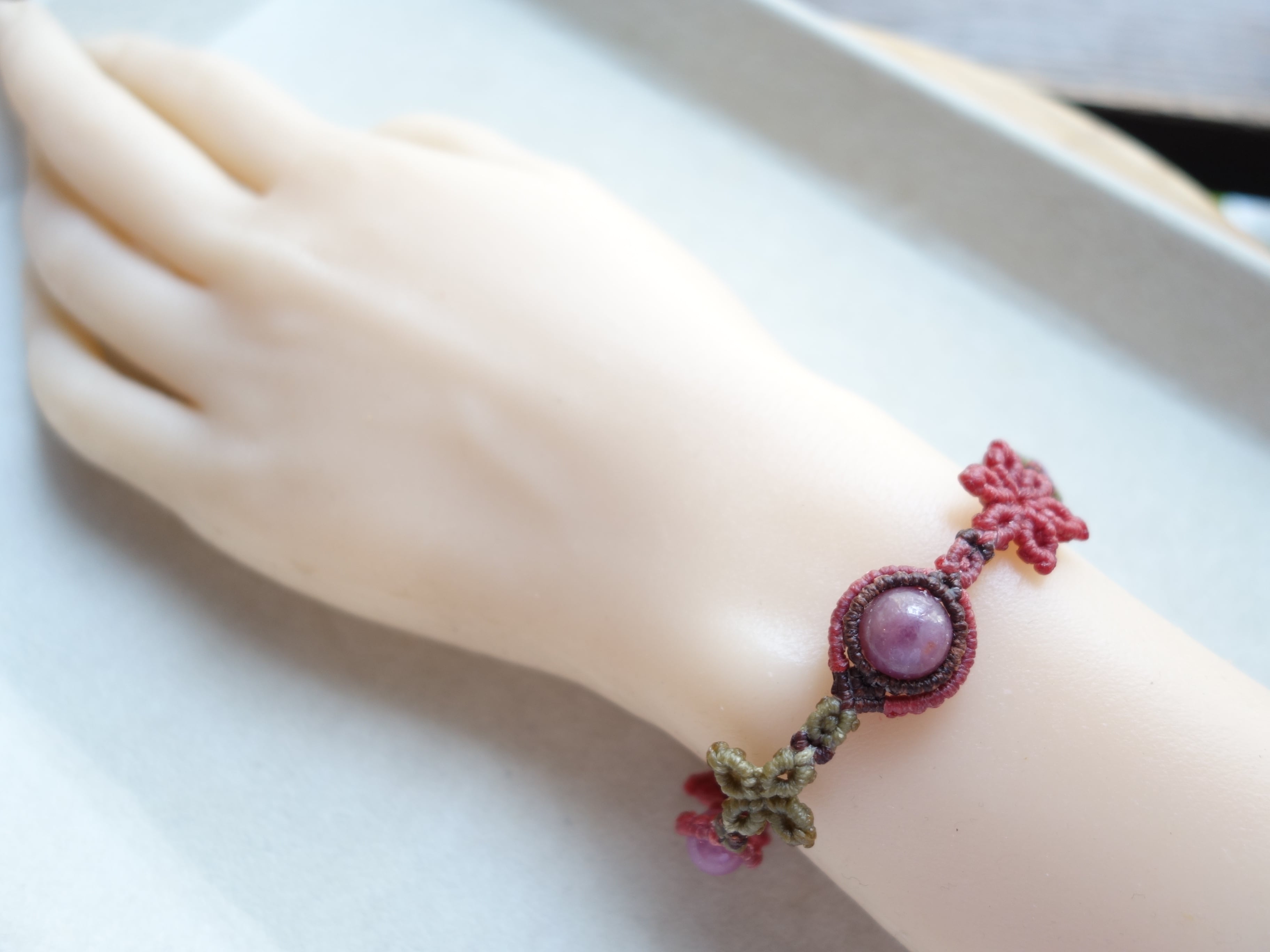 【ルビー】フラワーモチーフ マクラメブレスレット