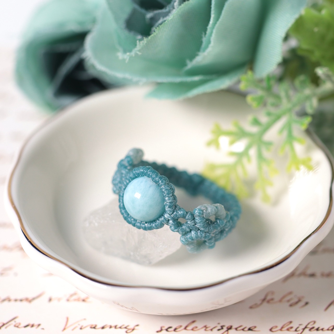 数量限定ビーズ【ラリマー】を使用しマクラメリングをお作りしました