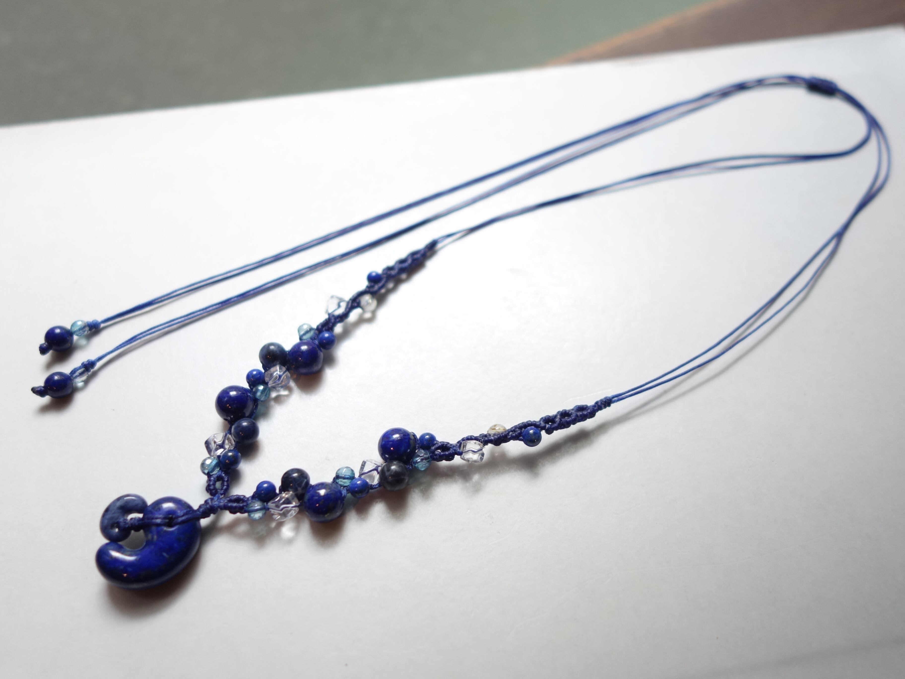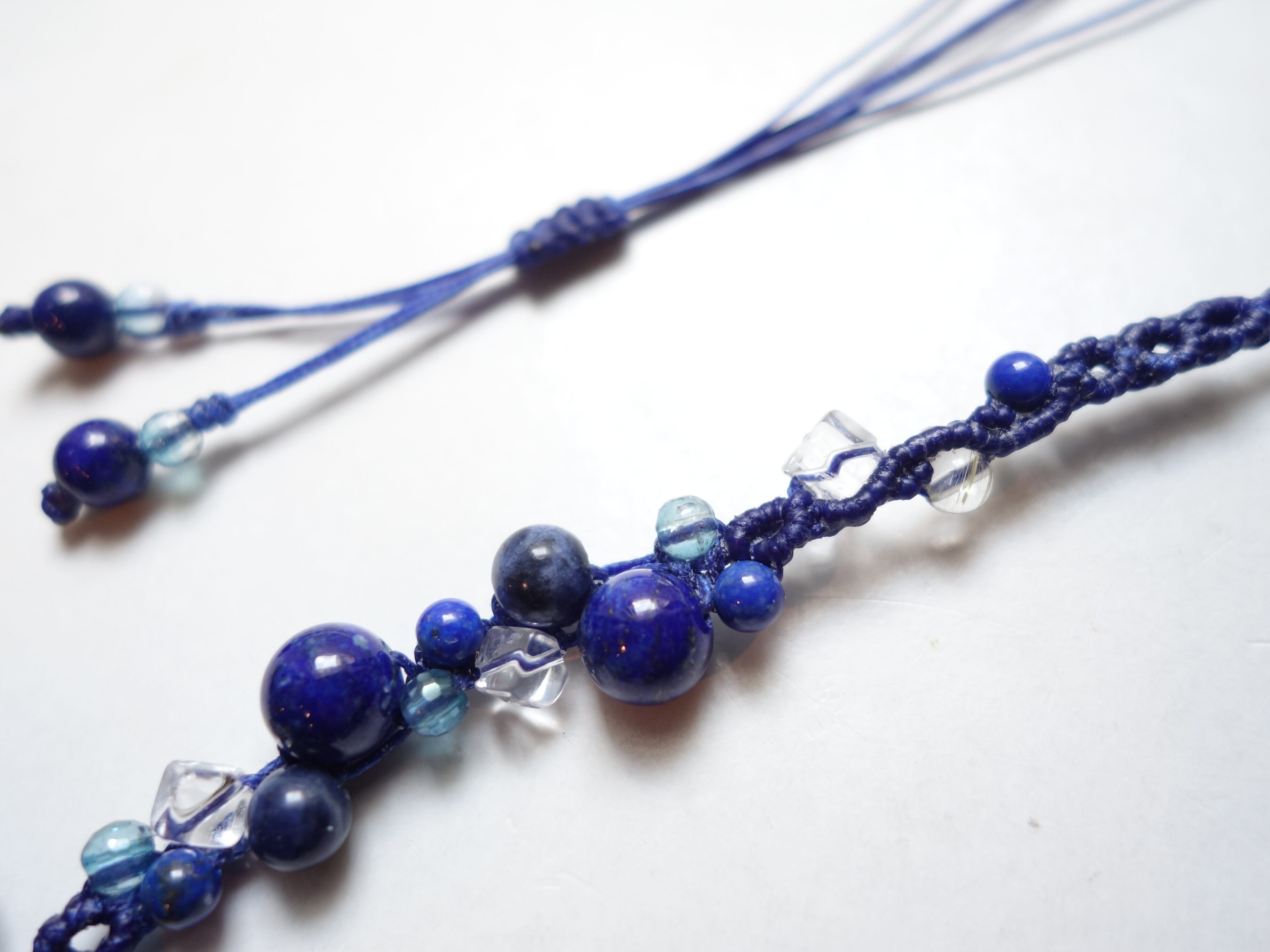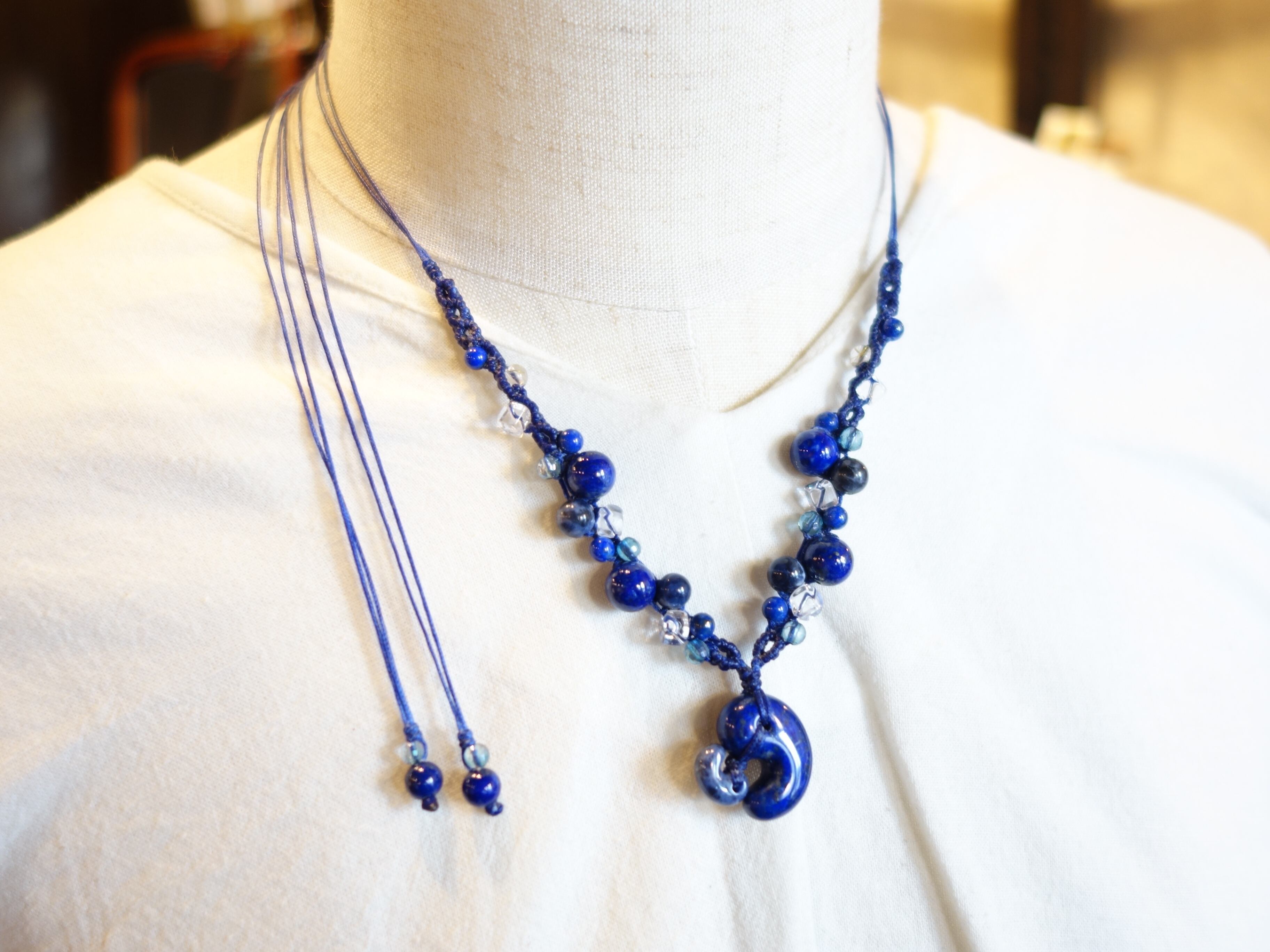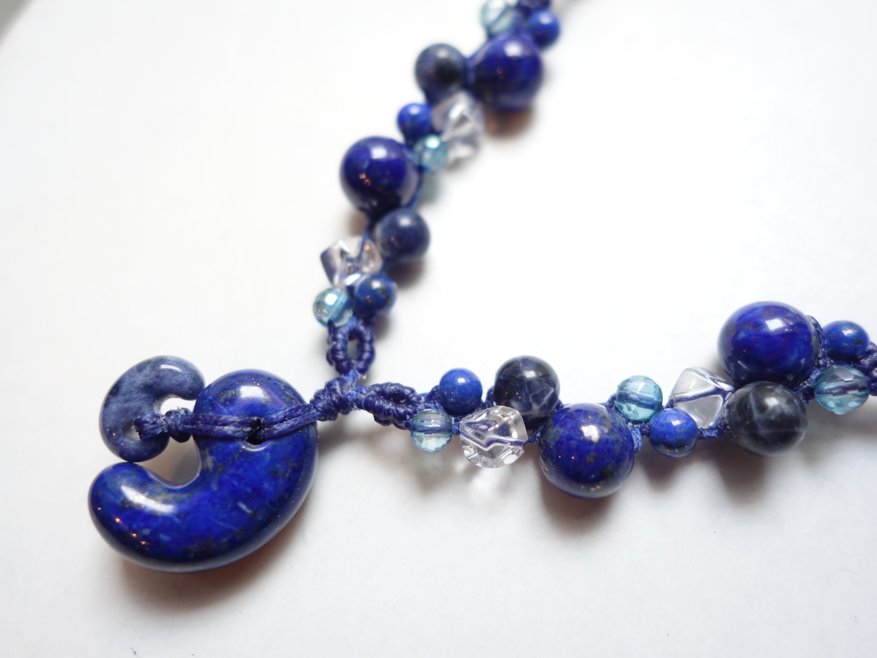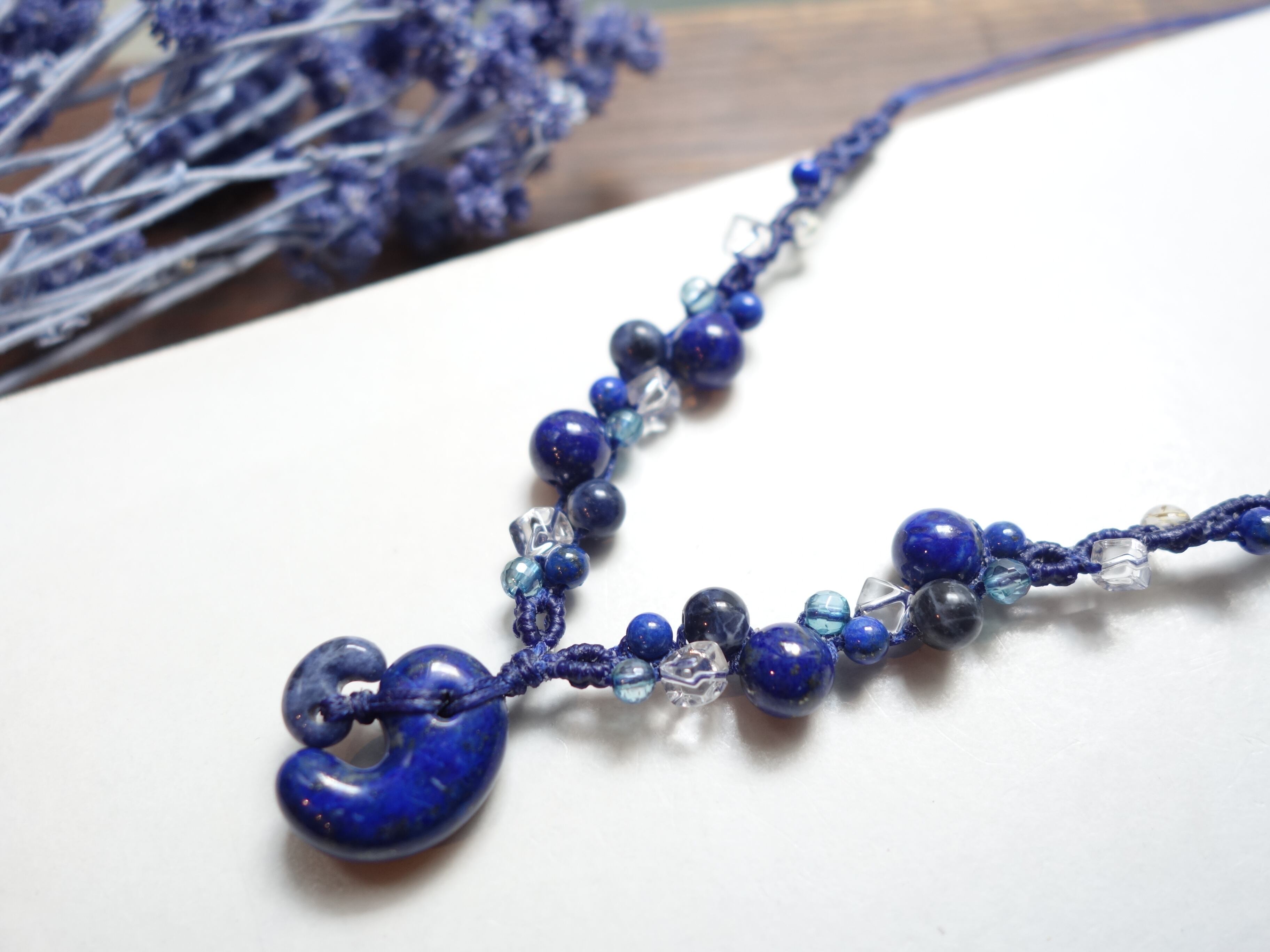 今回はラピスラズリを勾玉とビーズでたくさん使用しながら、