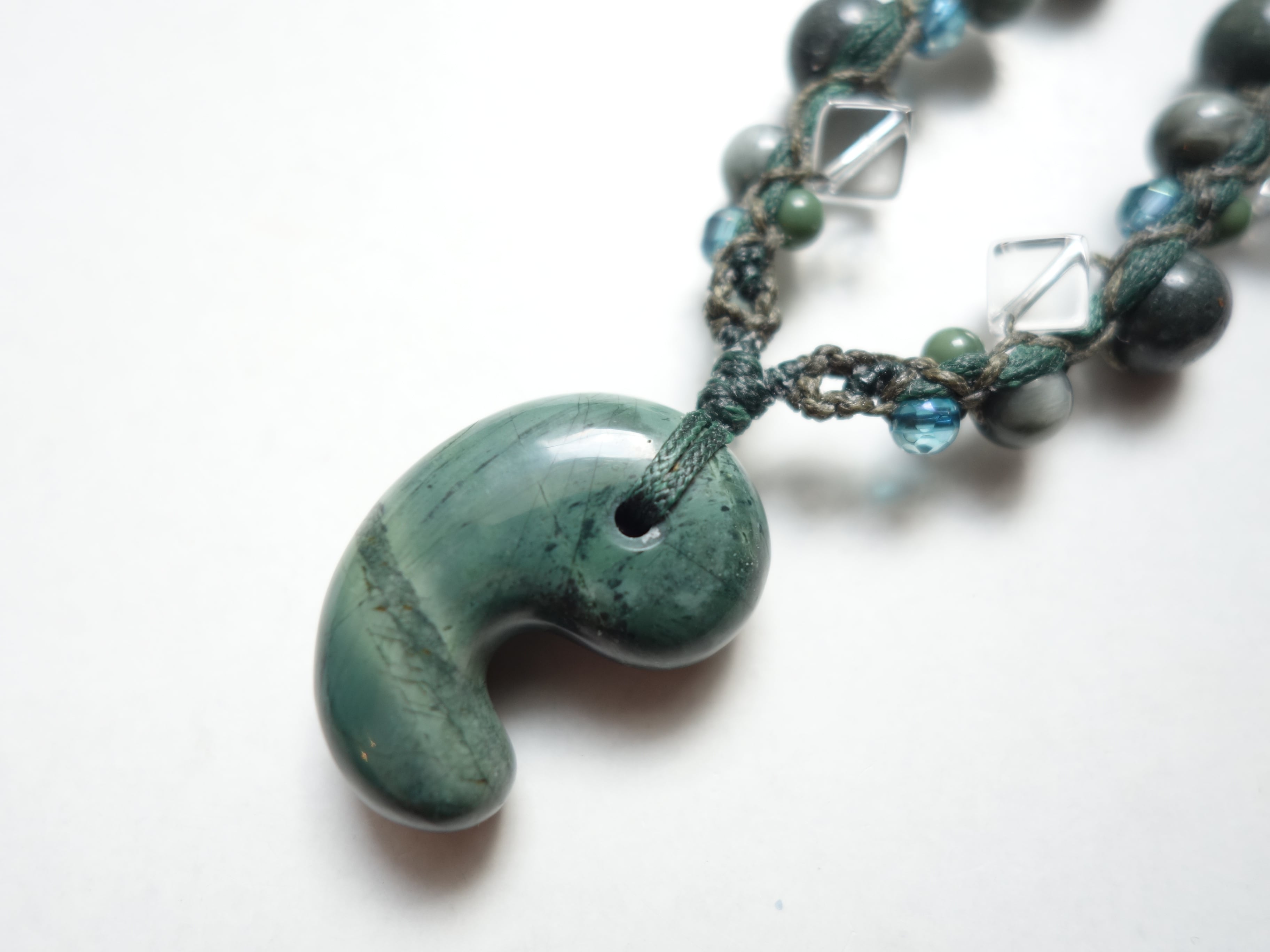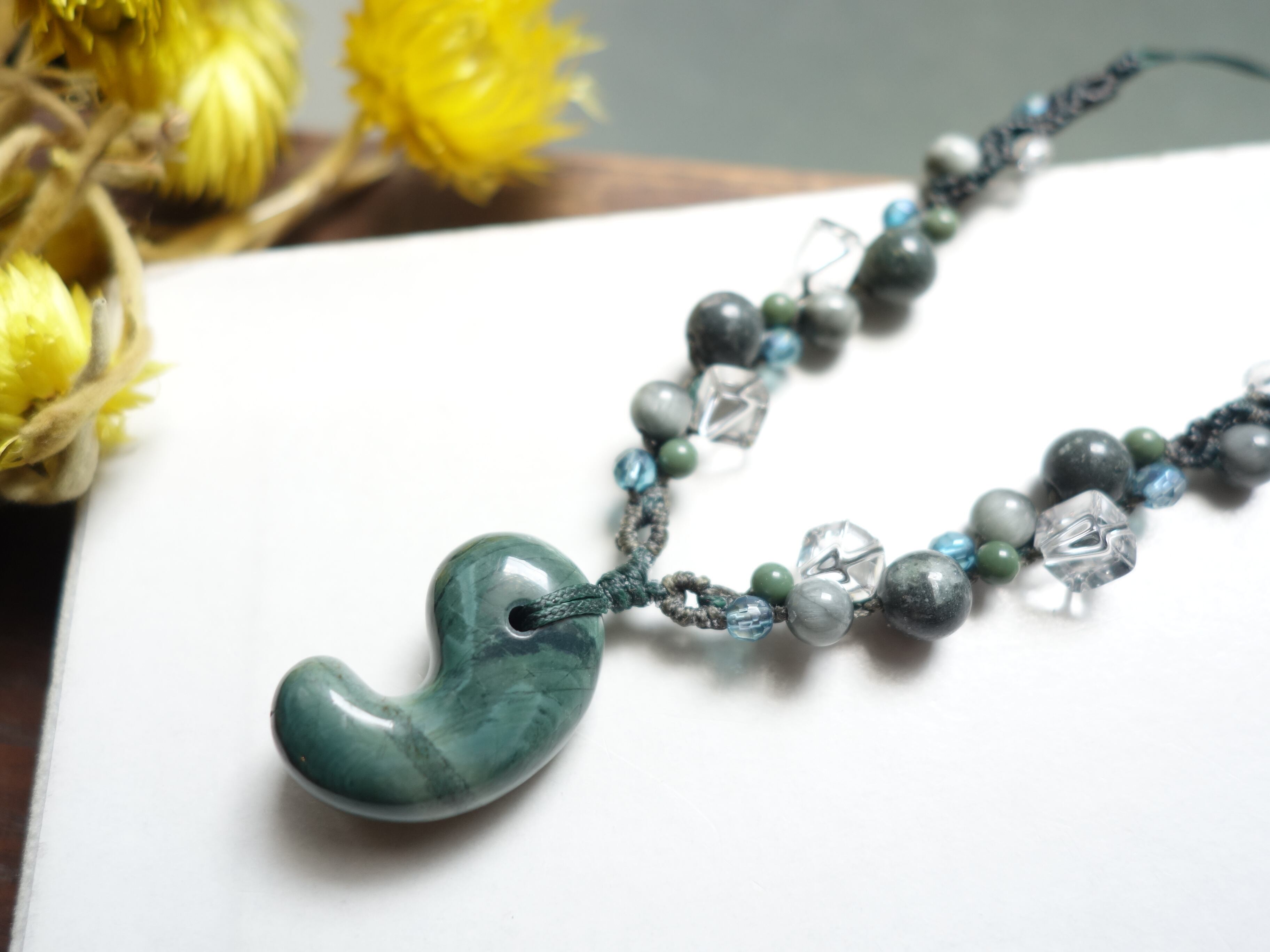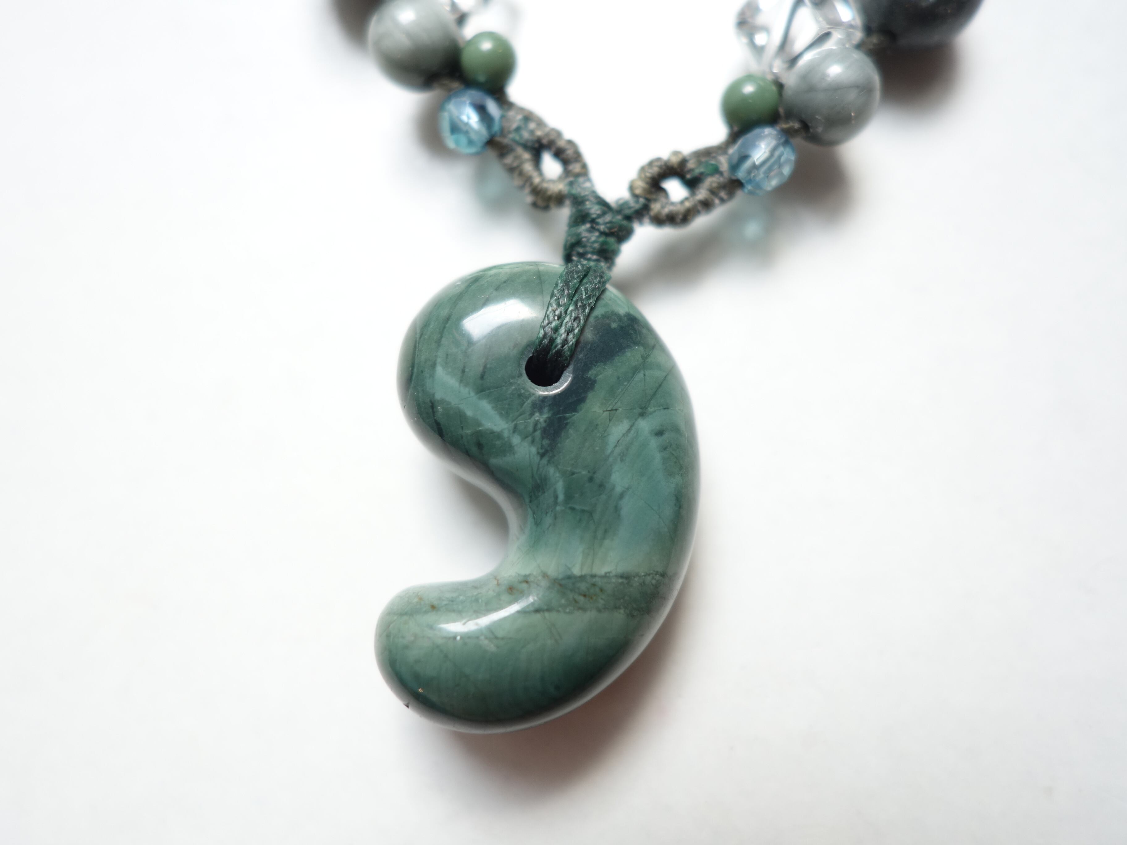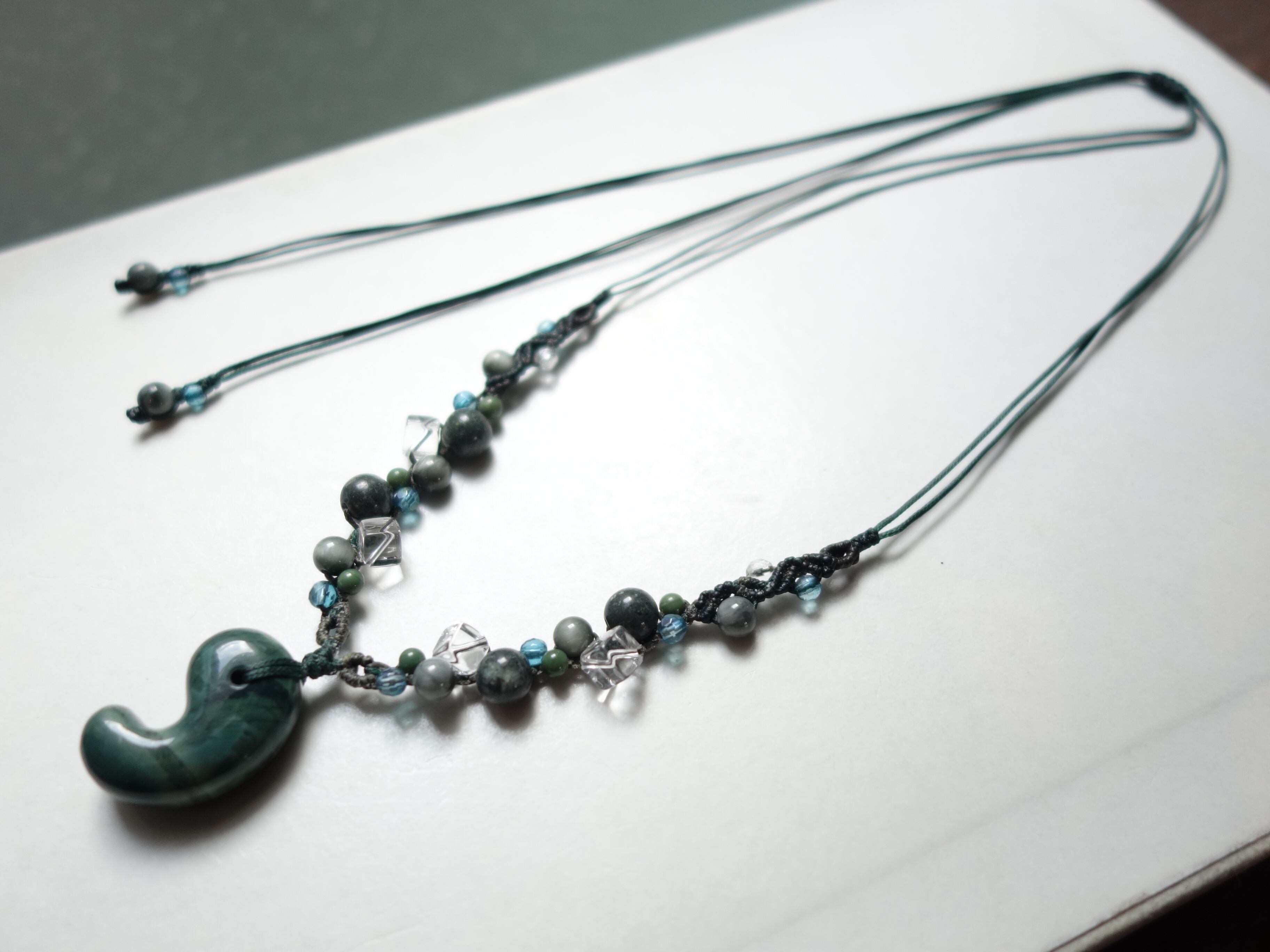 新作【花仙碧玉】30ミリ勾玉の調節式ネックレスです。