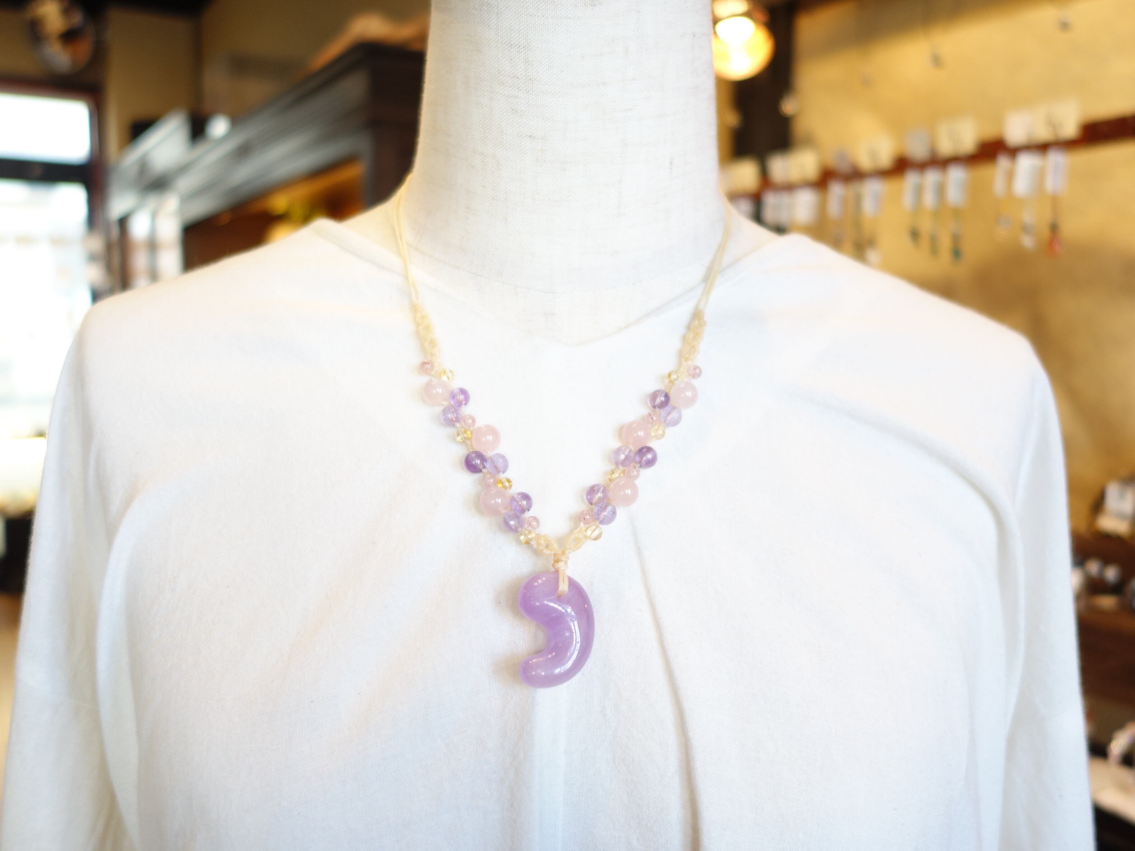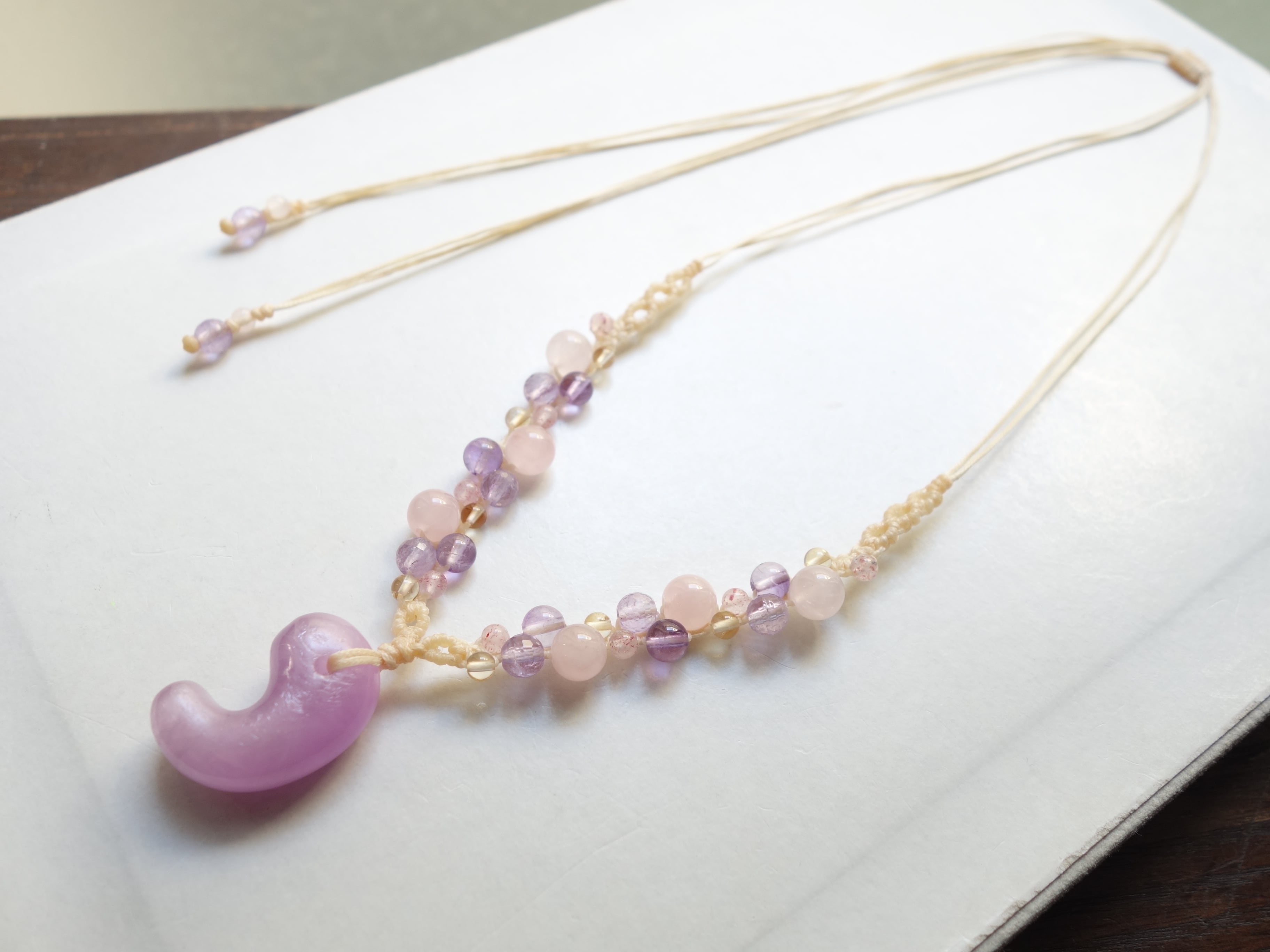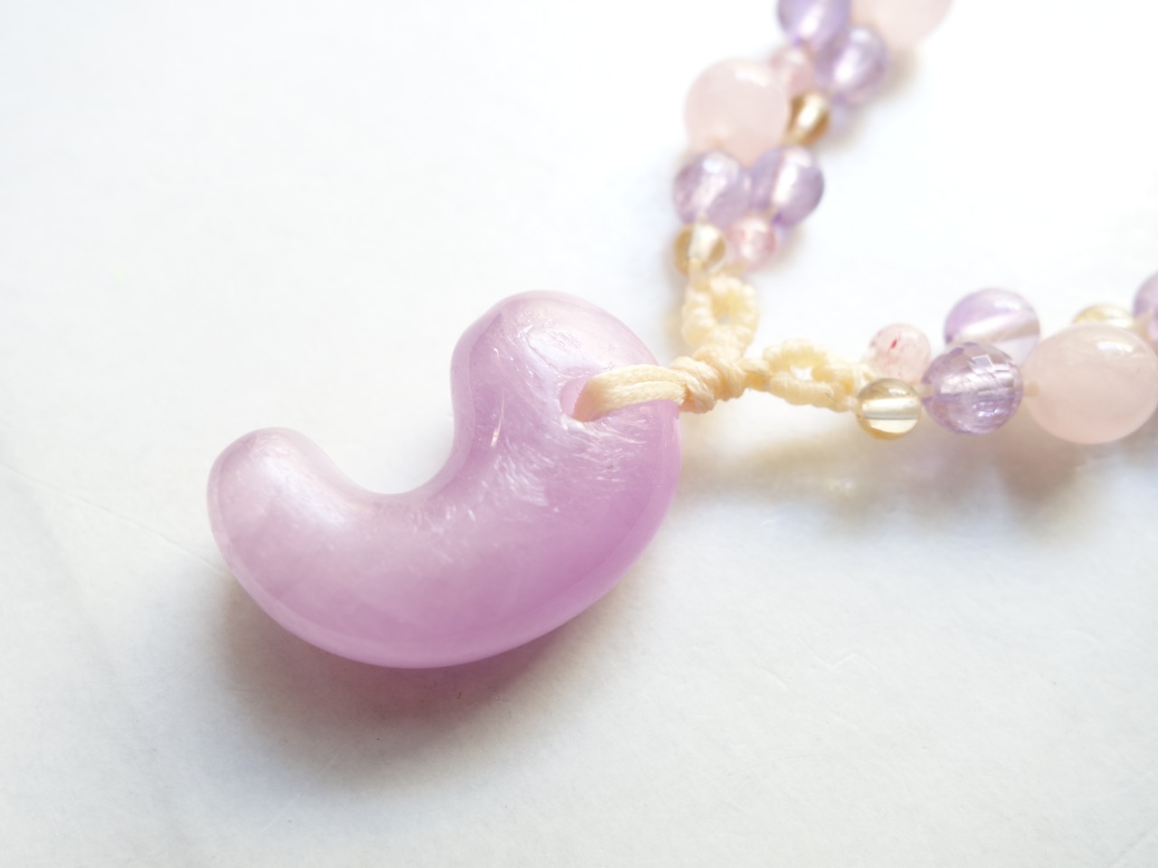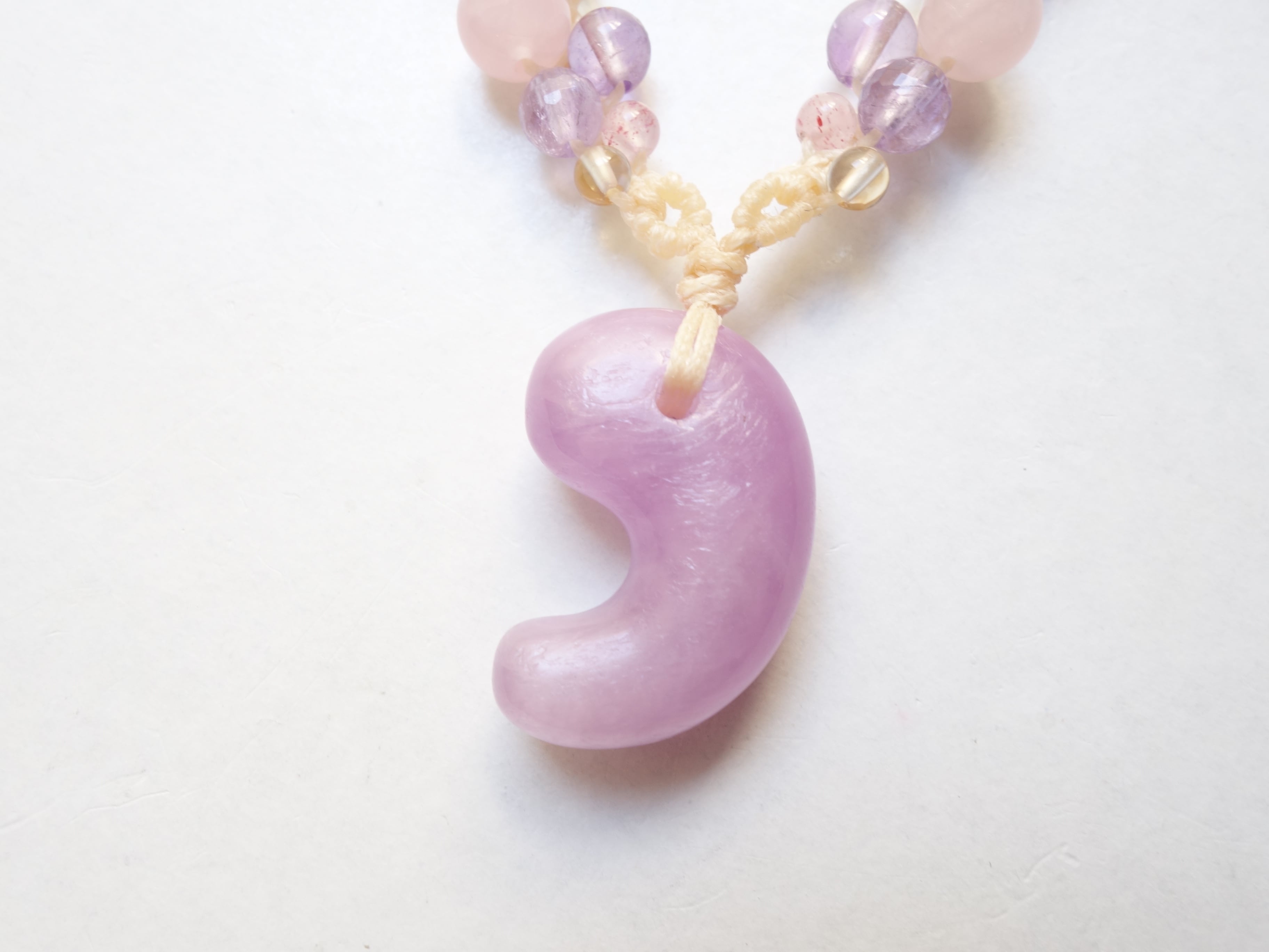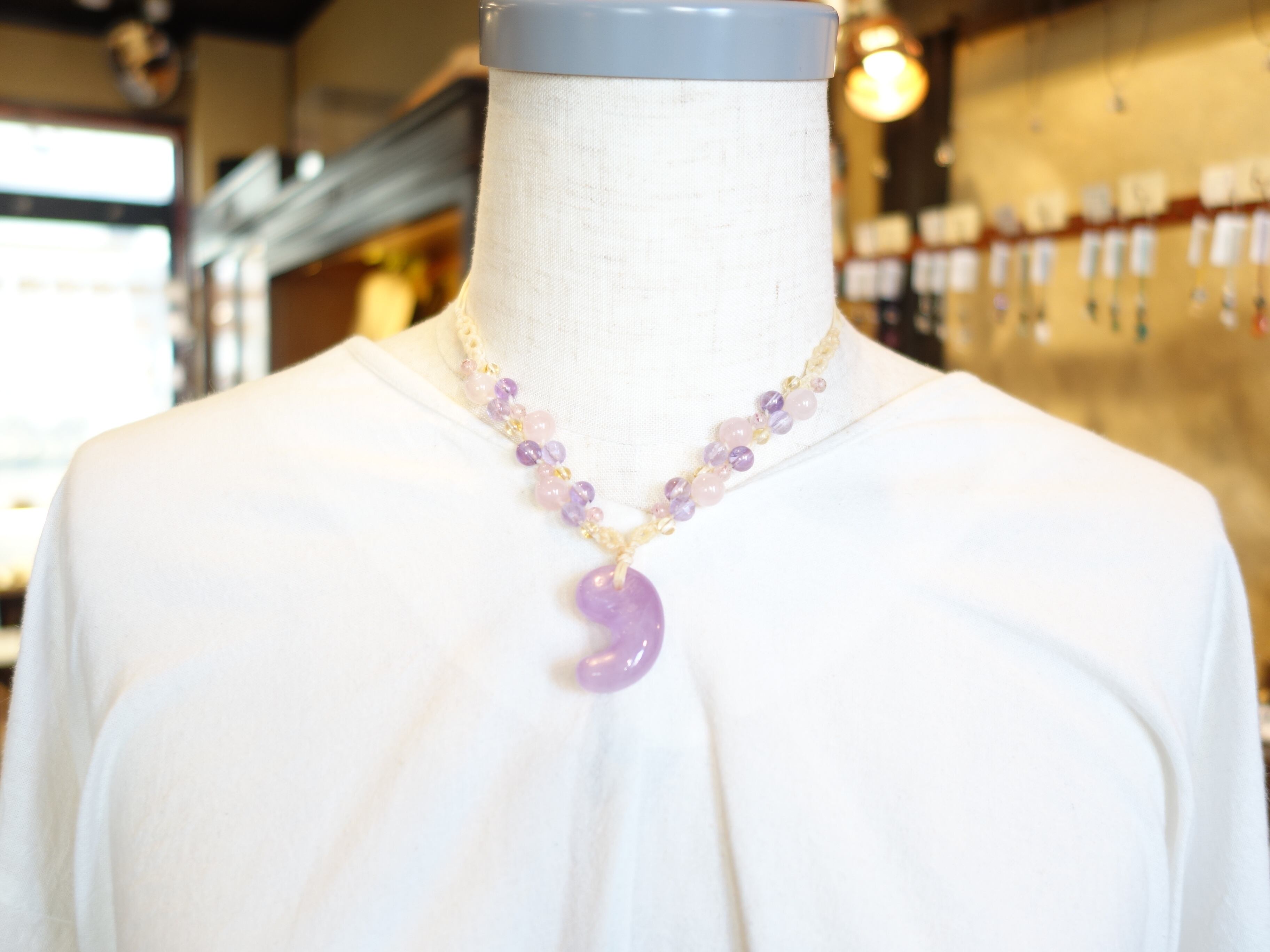 【キャッツアイラベンダークンツァイト】30ミリ勾玉のネックレスです。