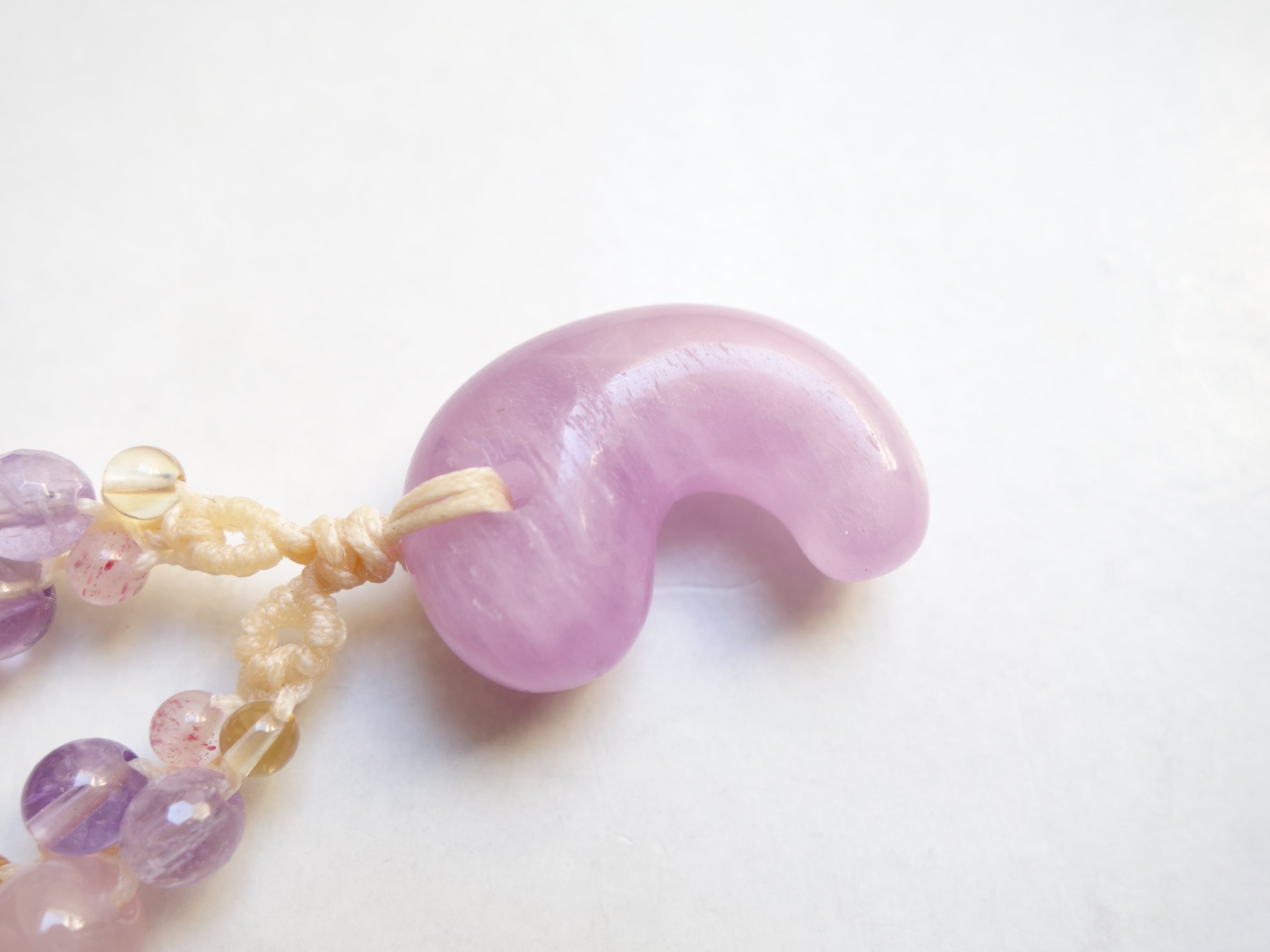 【キャッツアイラベンダークンツァイト】30ミリ勾玉ネックレス