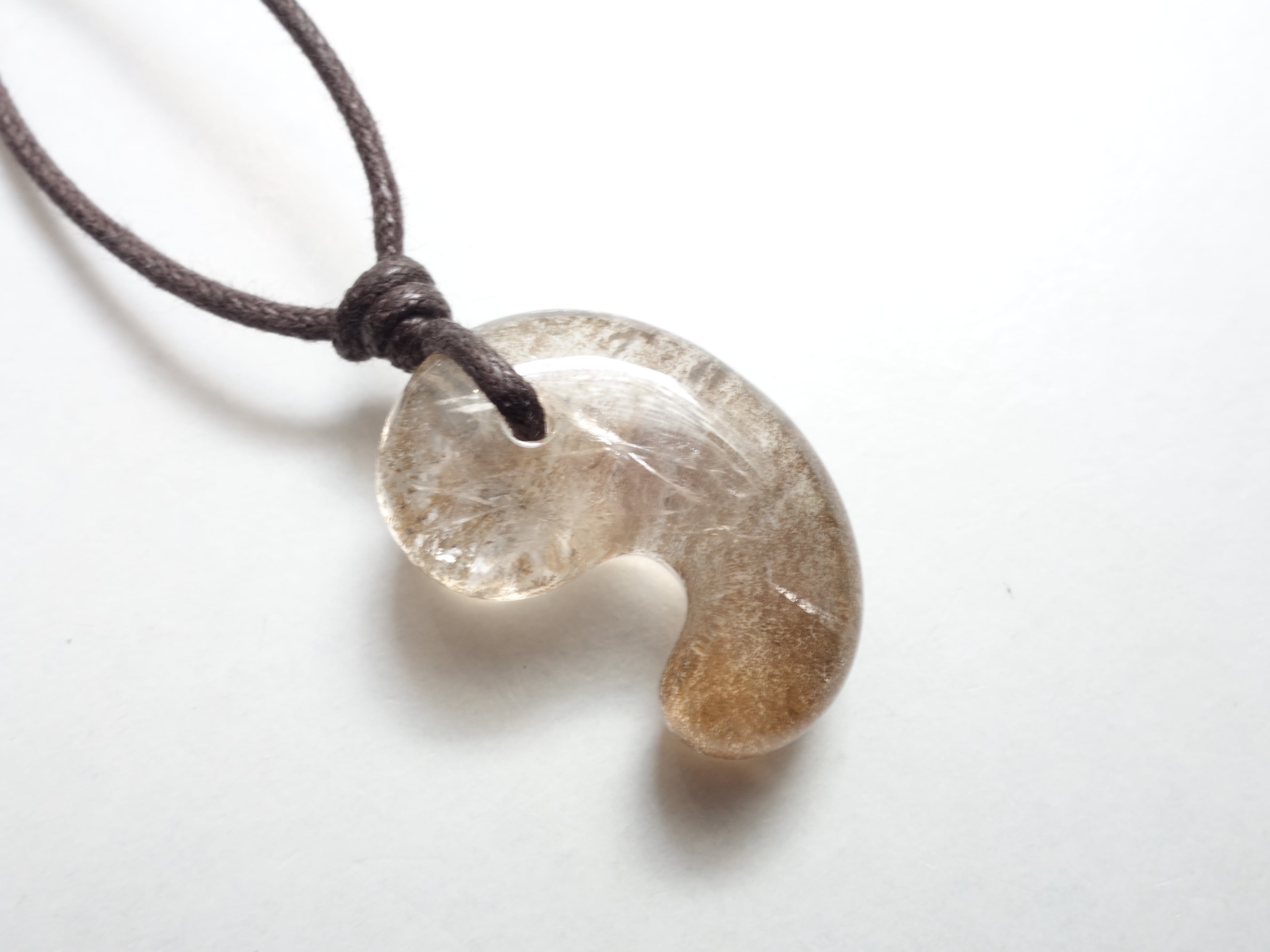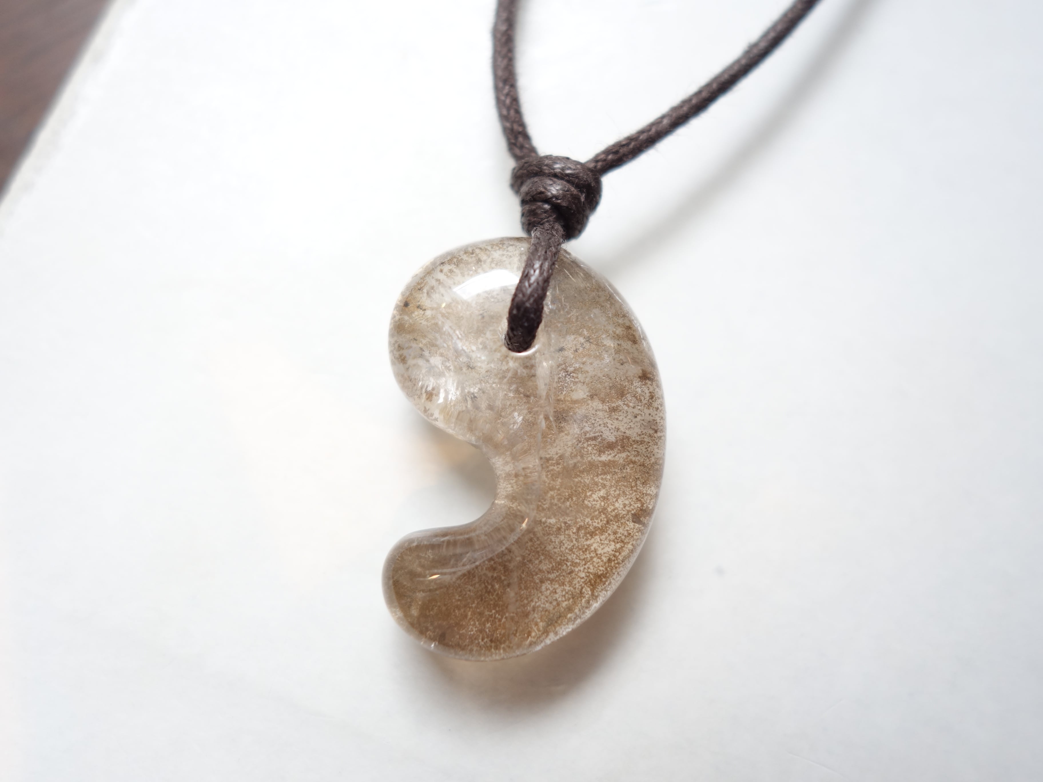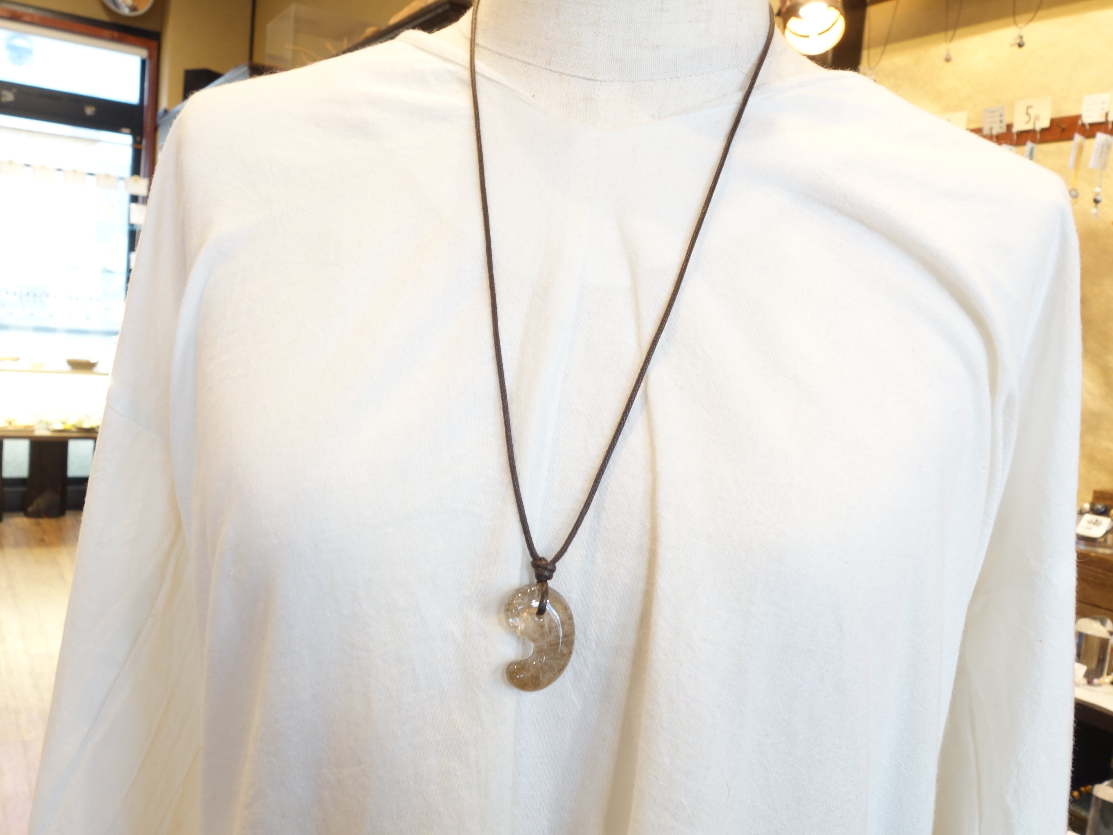 限定【虹入りデンドリチッククォーツ】30ミリ勾玉の調節式ネックレスです。