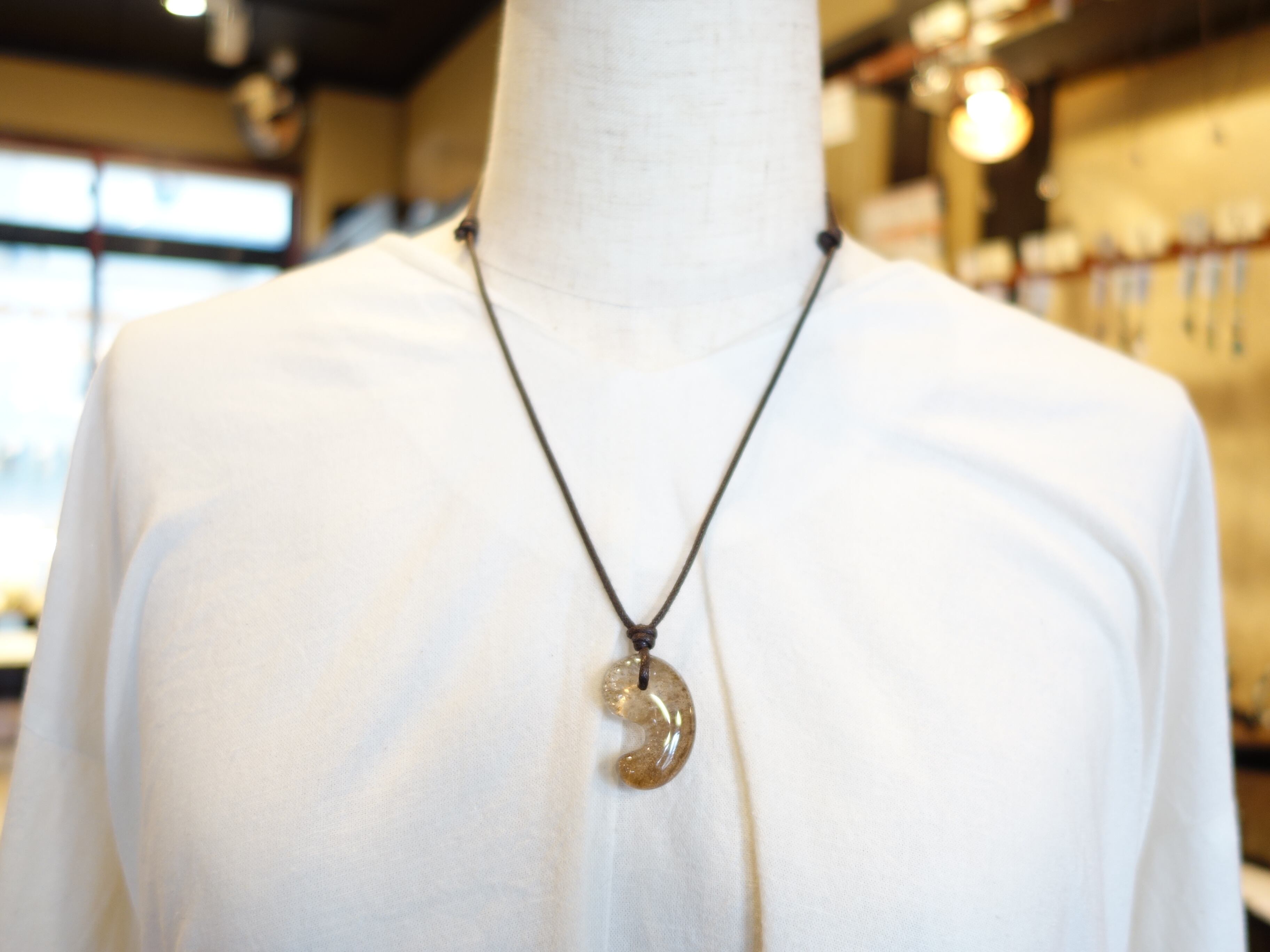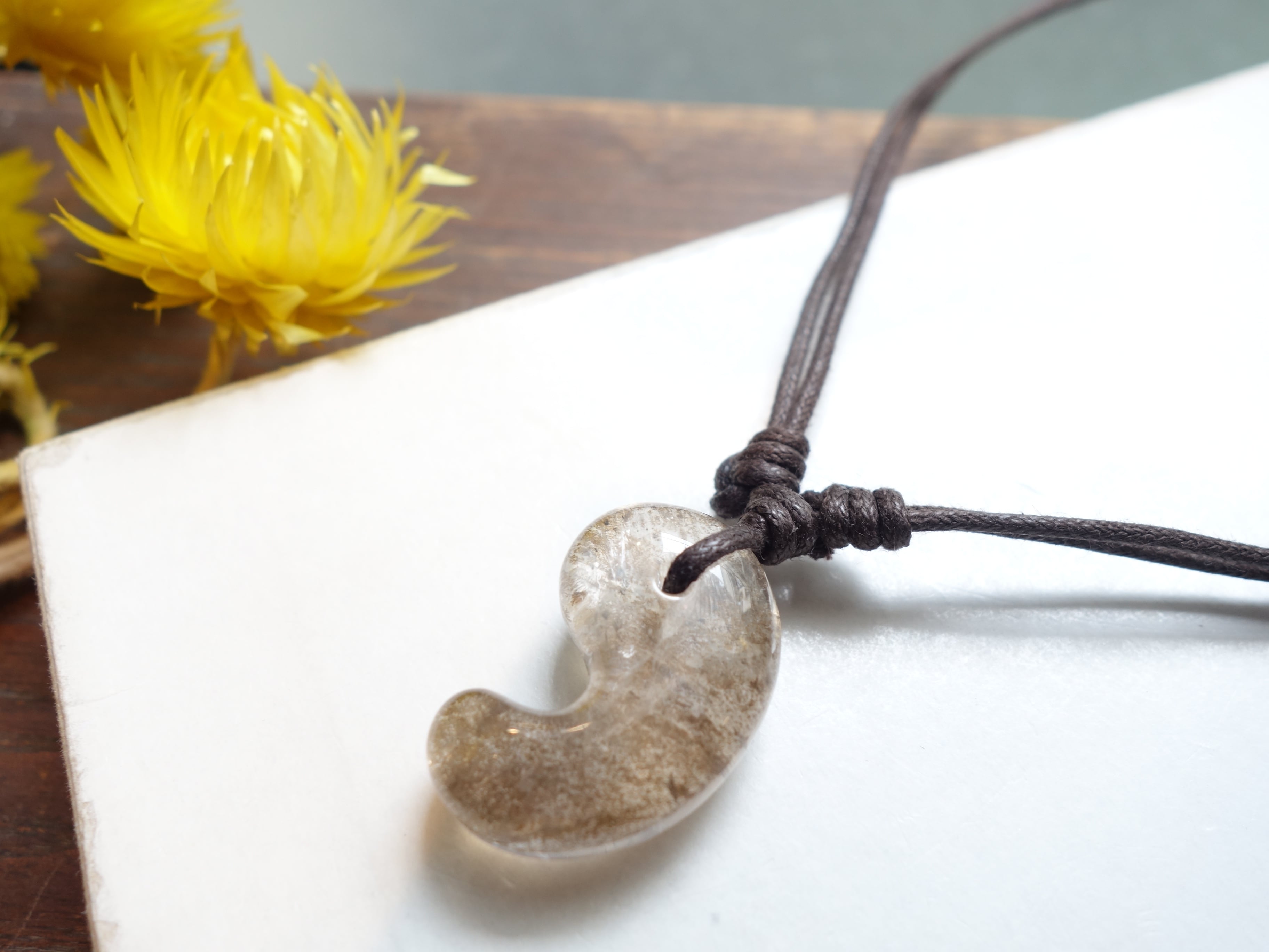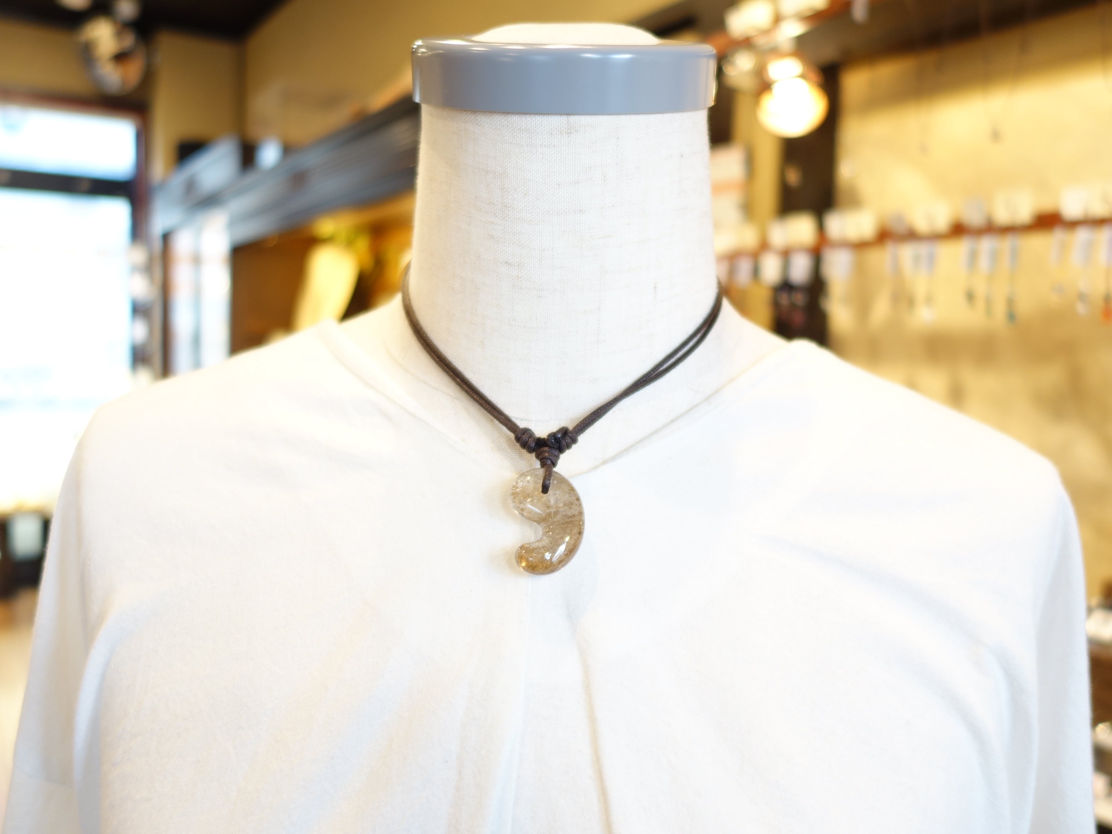 限定【虹入りデンドリチッククォーツ】30ミリ勾玉の調節式ネックレスです。
