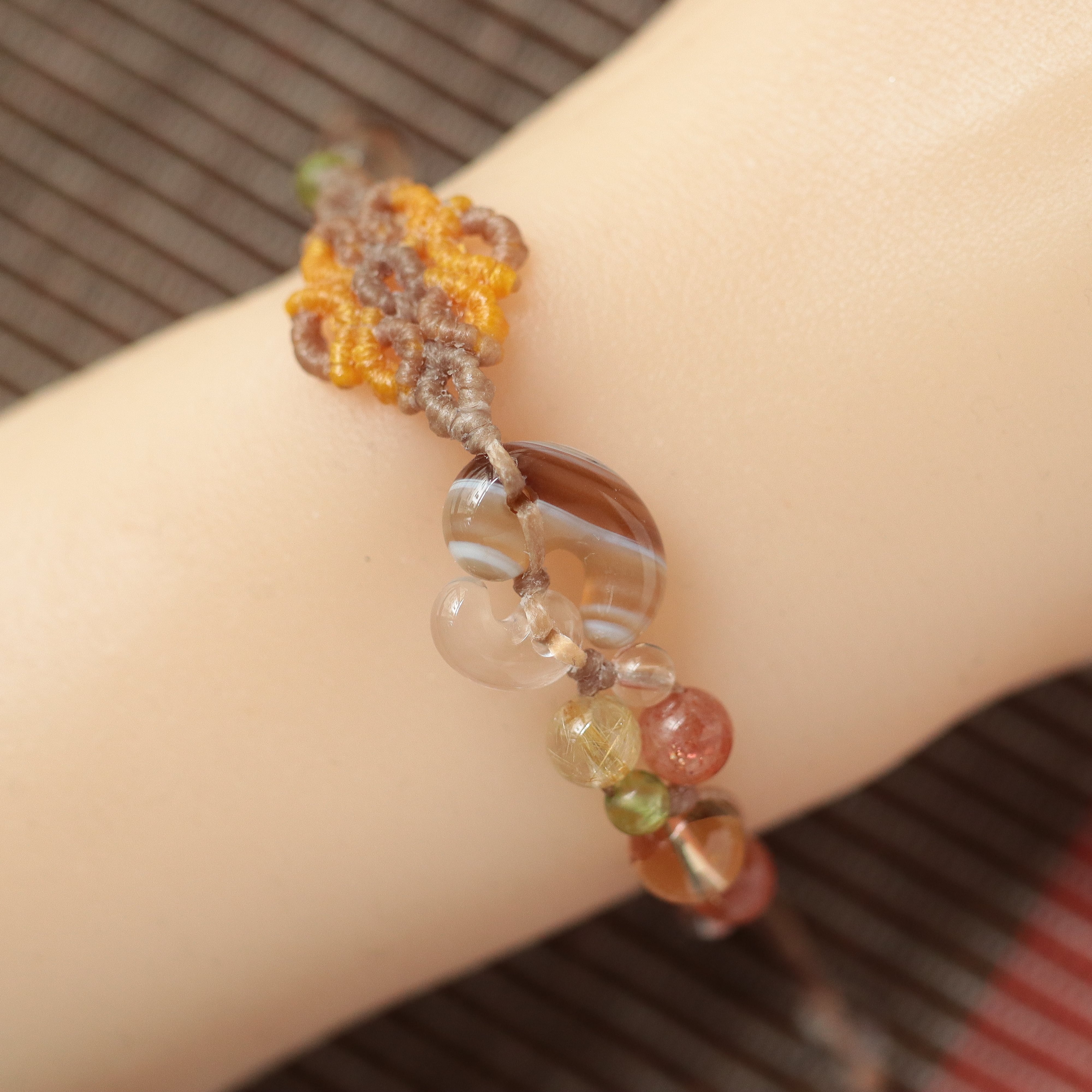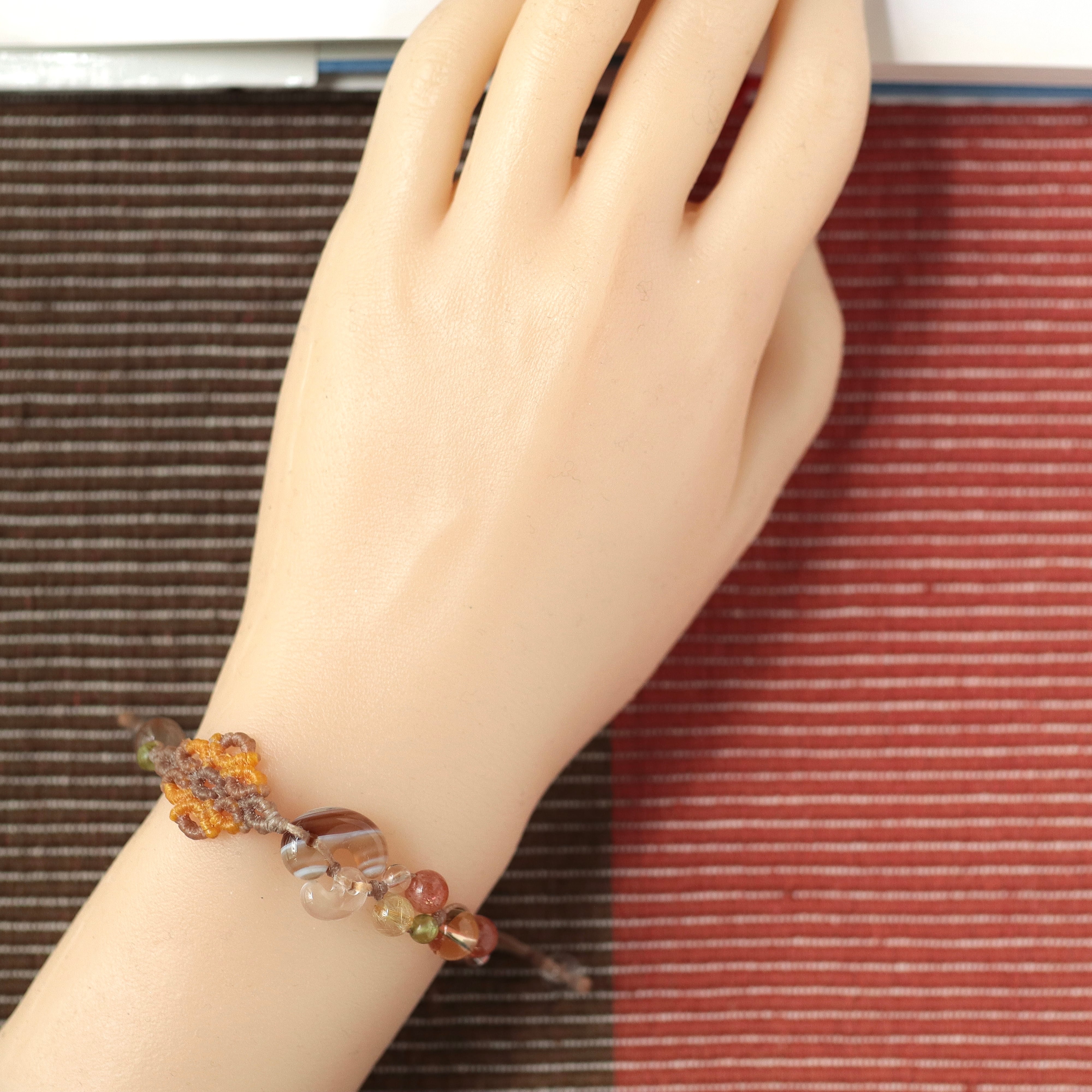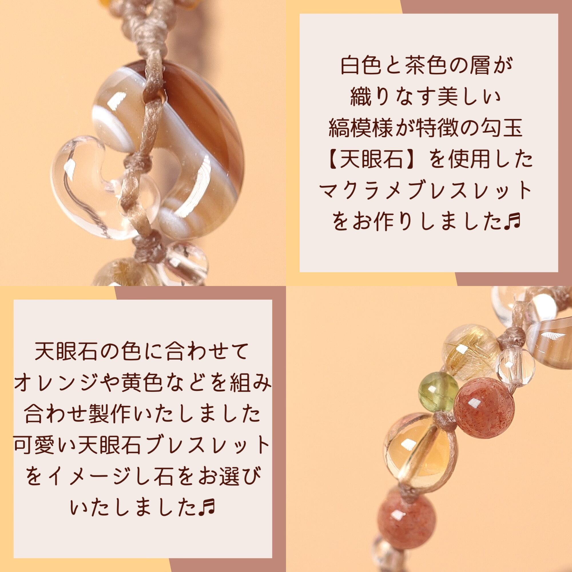 勾玉結アシンメトリーデザインのマクラメ編みブレスレットをお作りしました