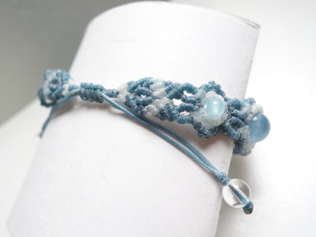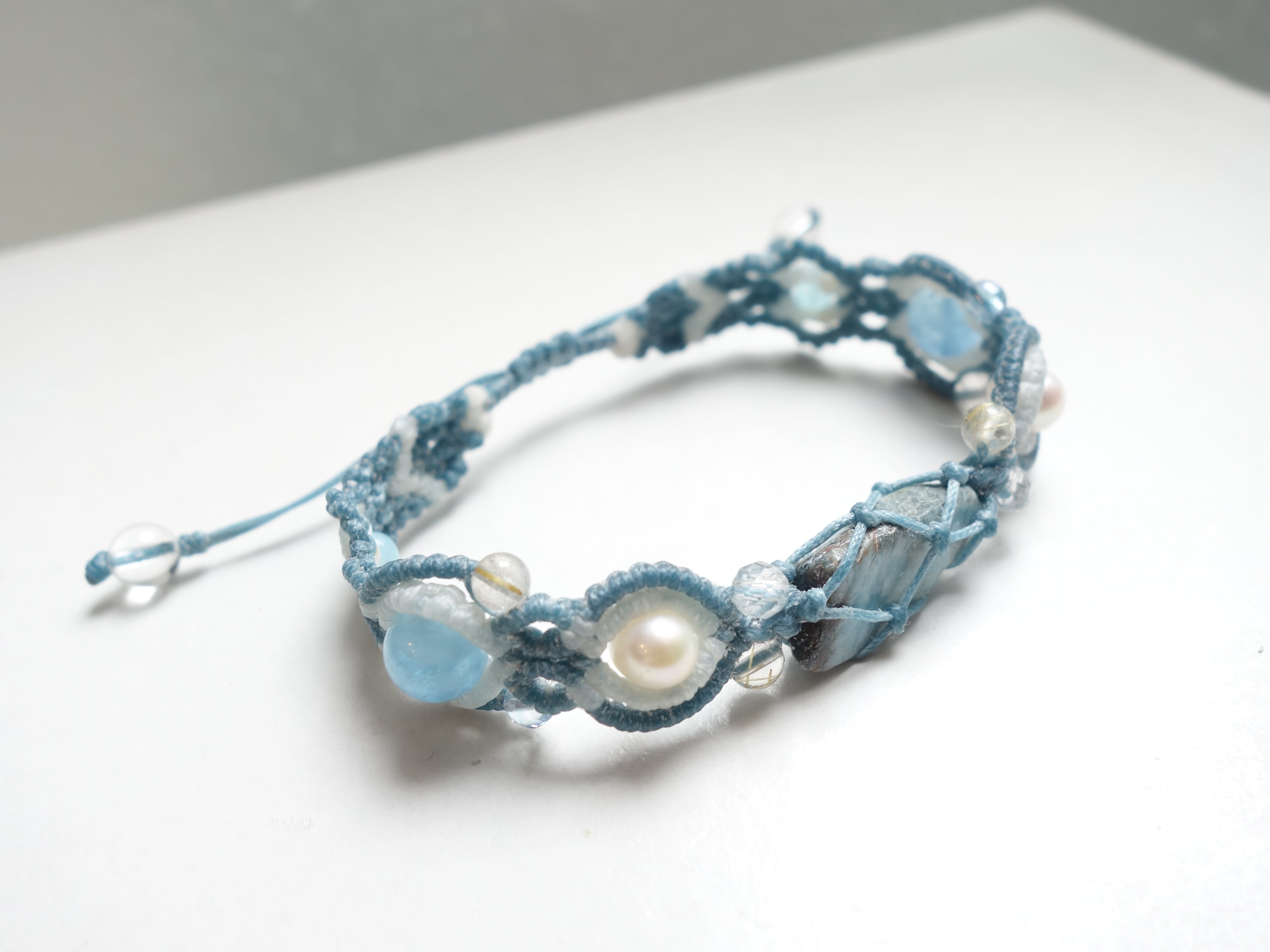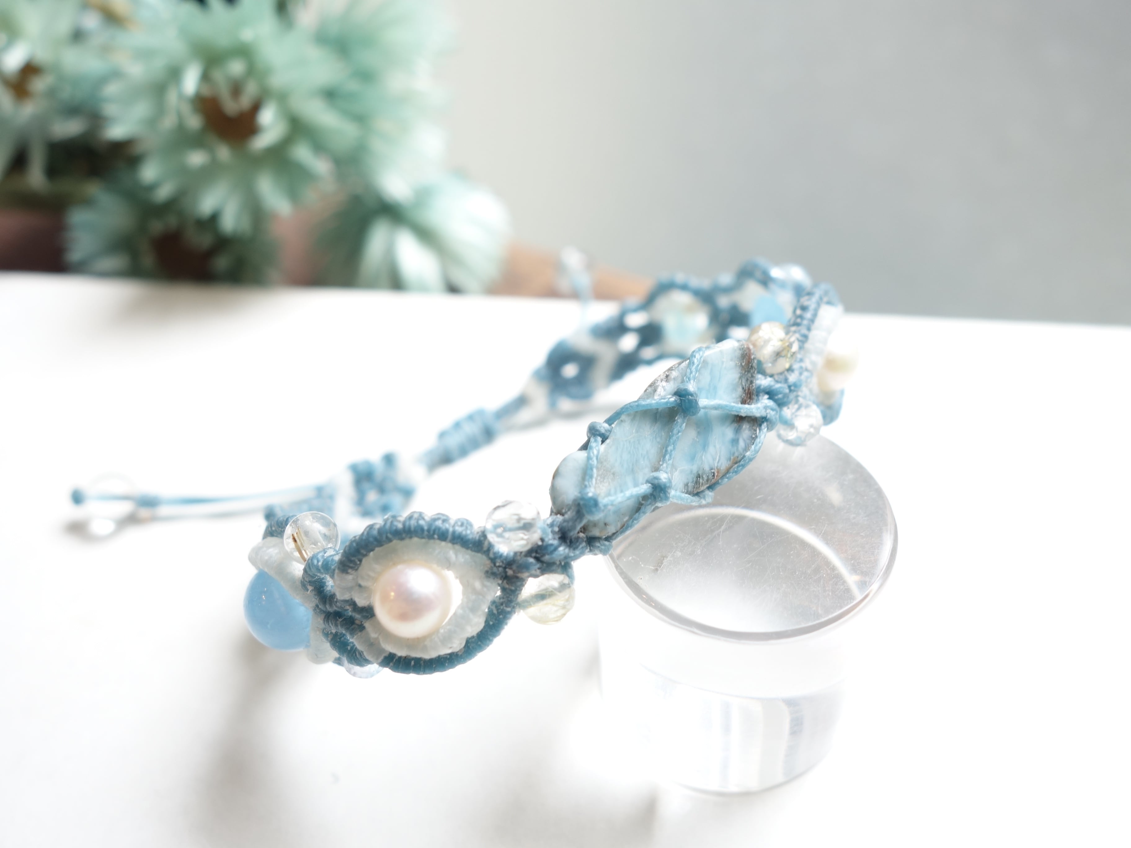 穏やかな空と海の色彩で編み込んだマクラメデザインで身につけてみませんか。
