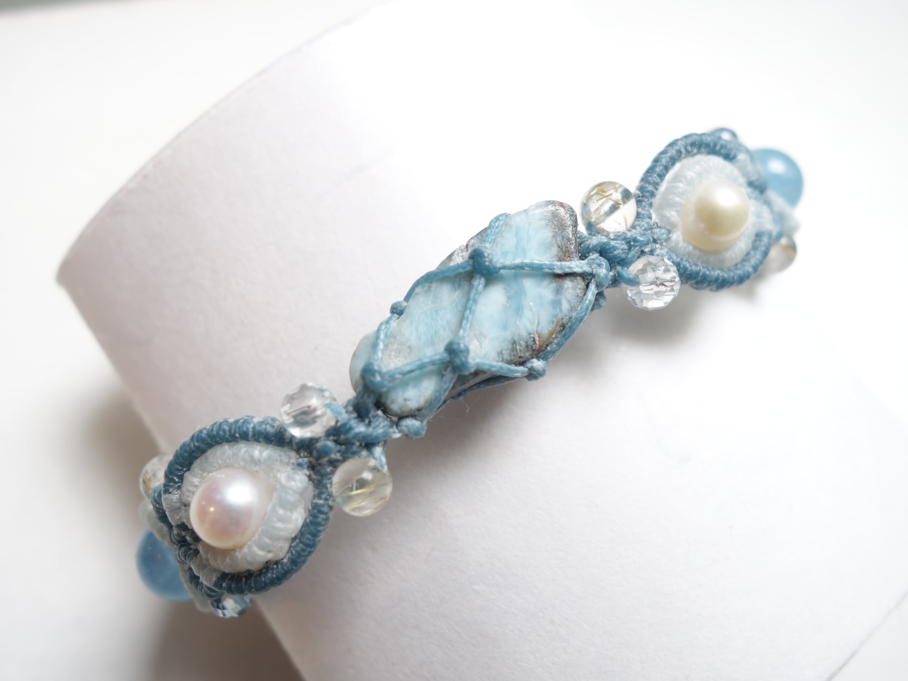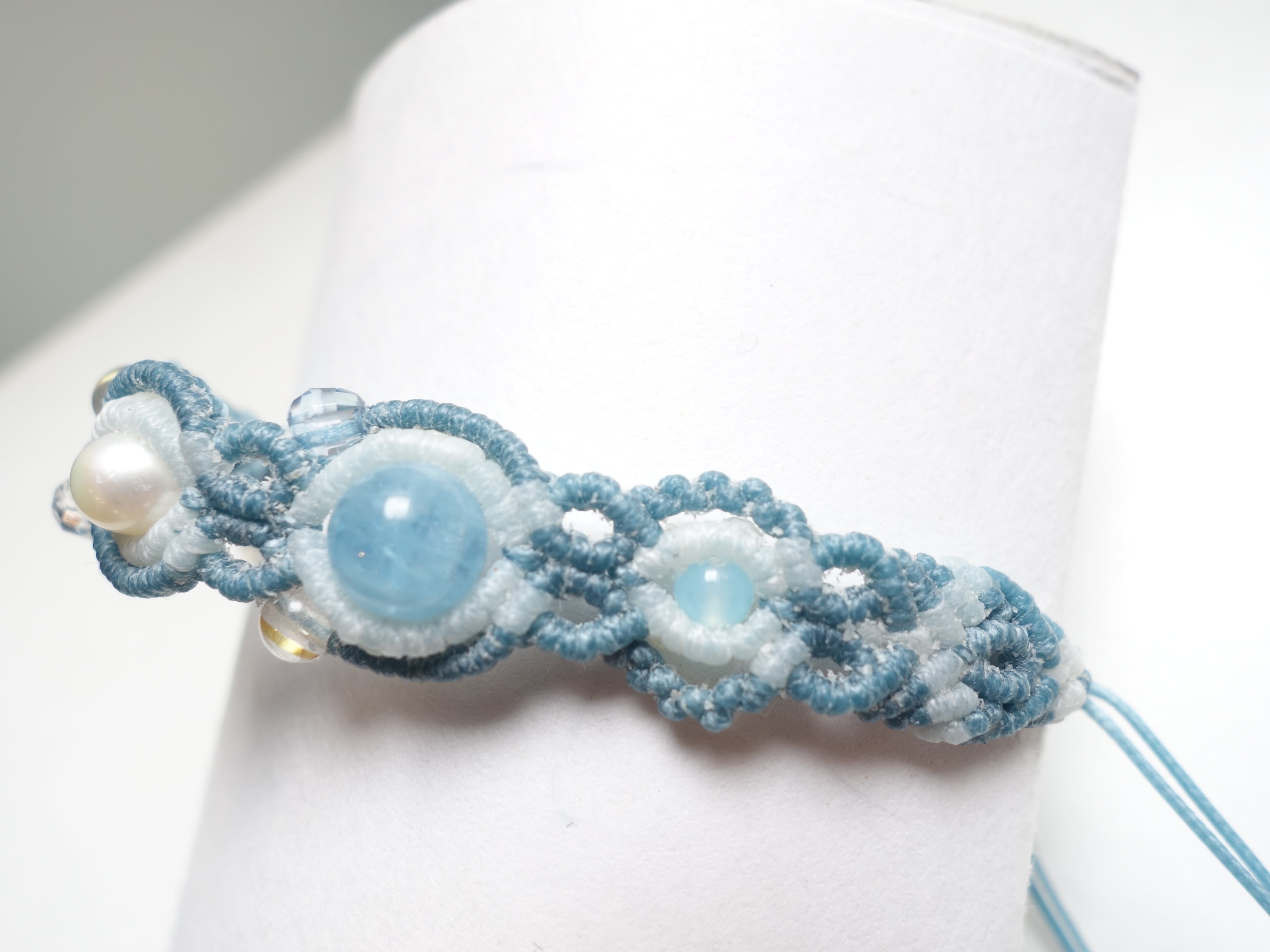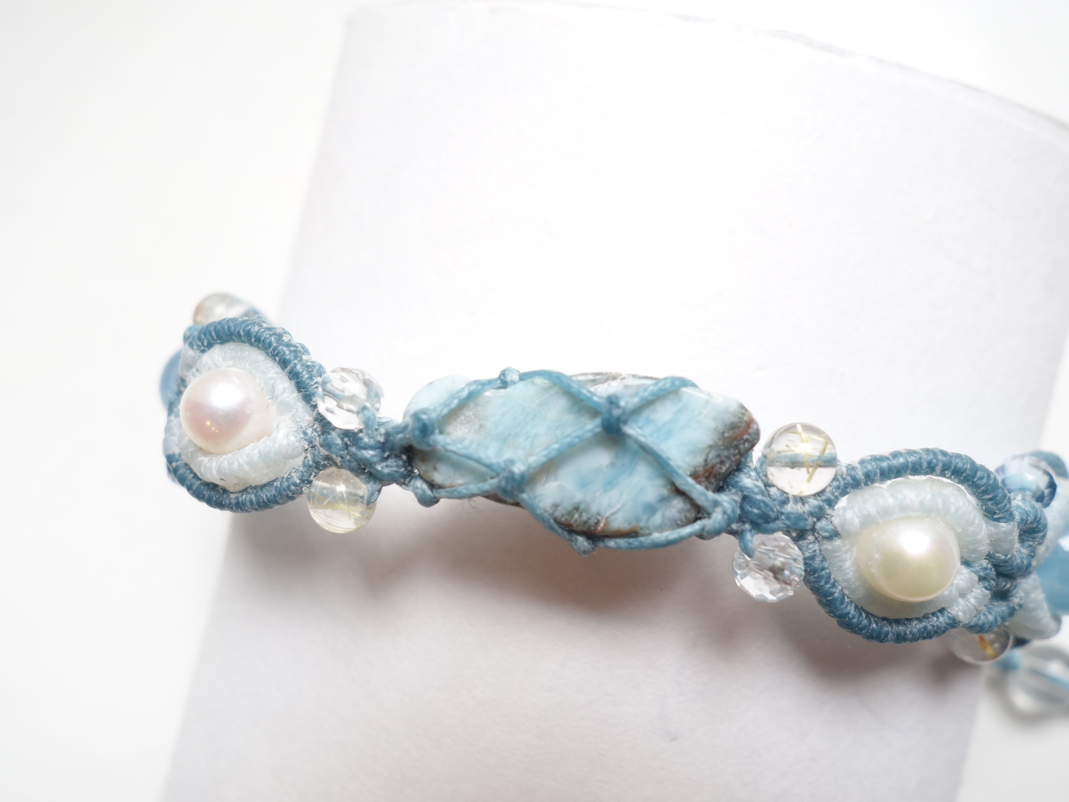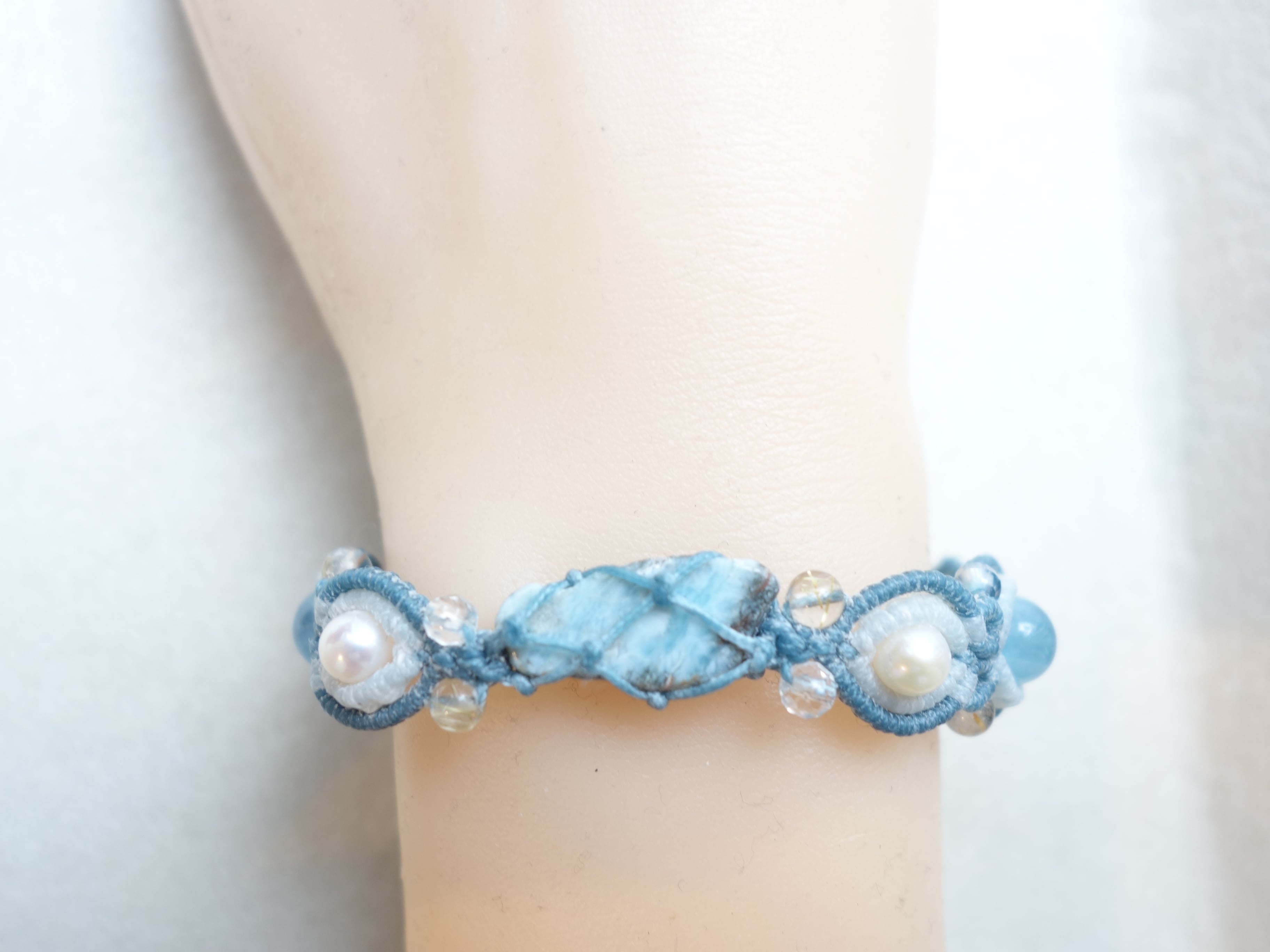 穏やかな空と海の色彩で編み込んだマクラメデザインで身につけてみませんか。