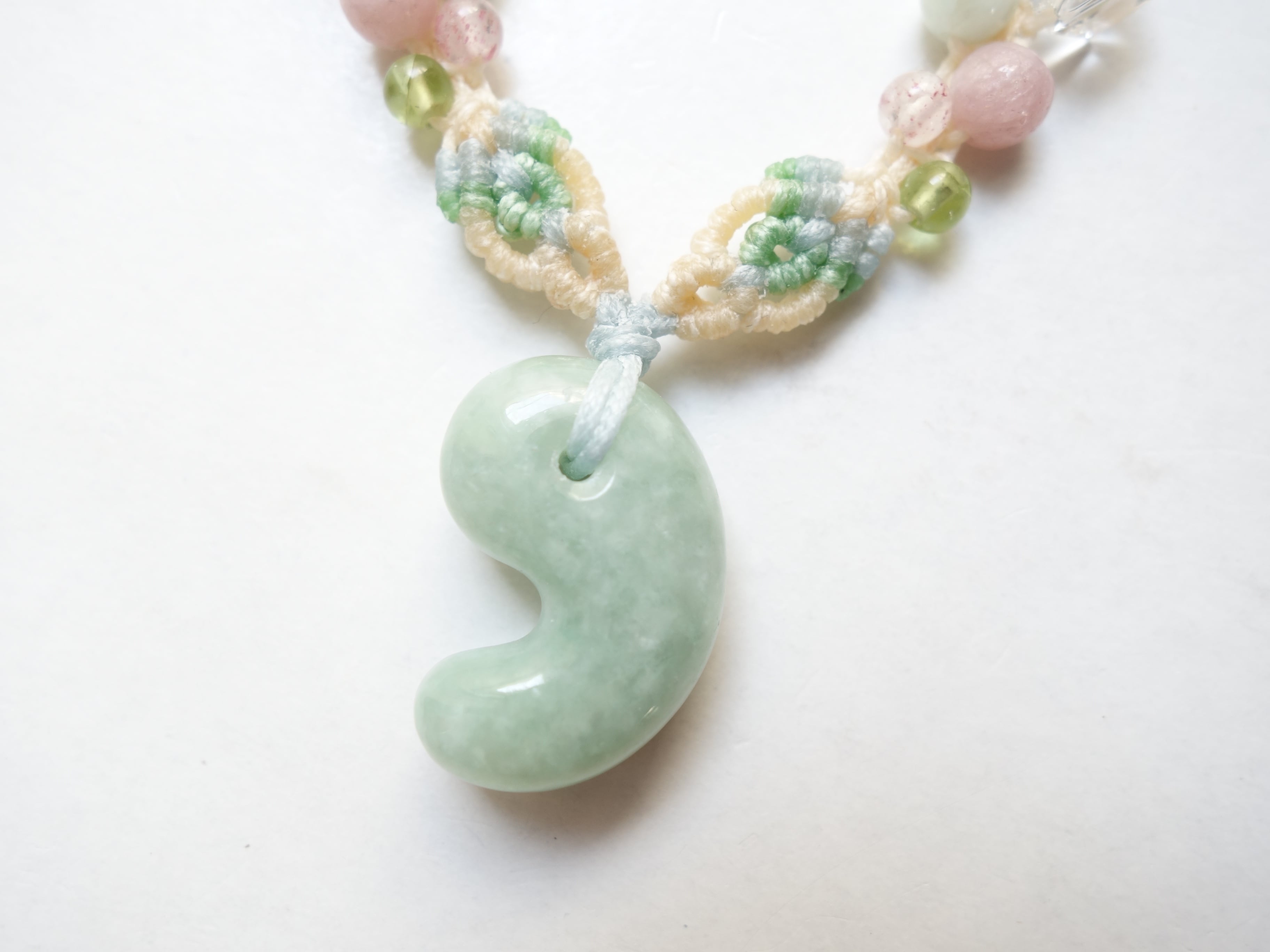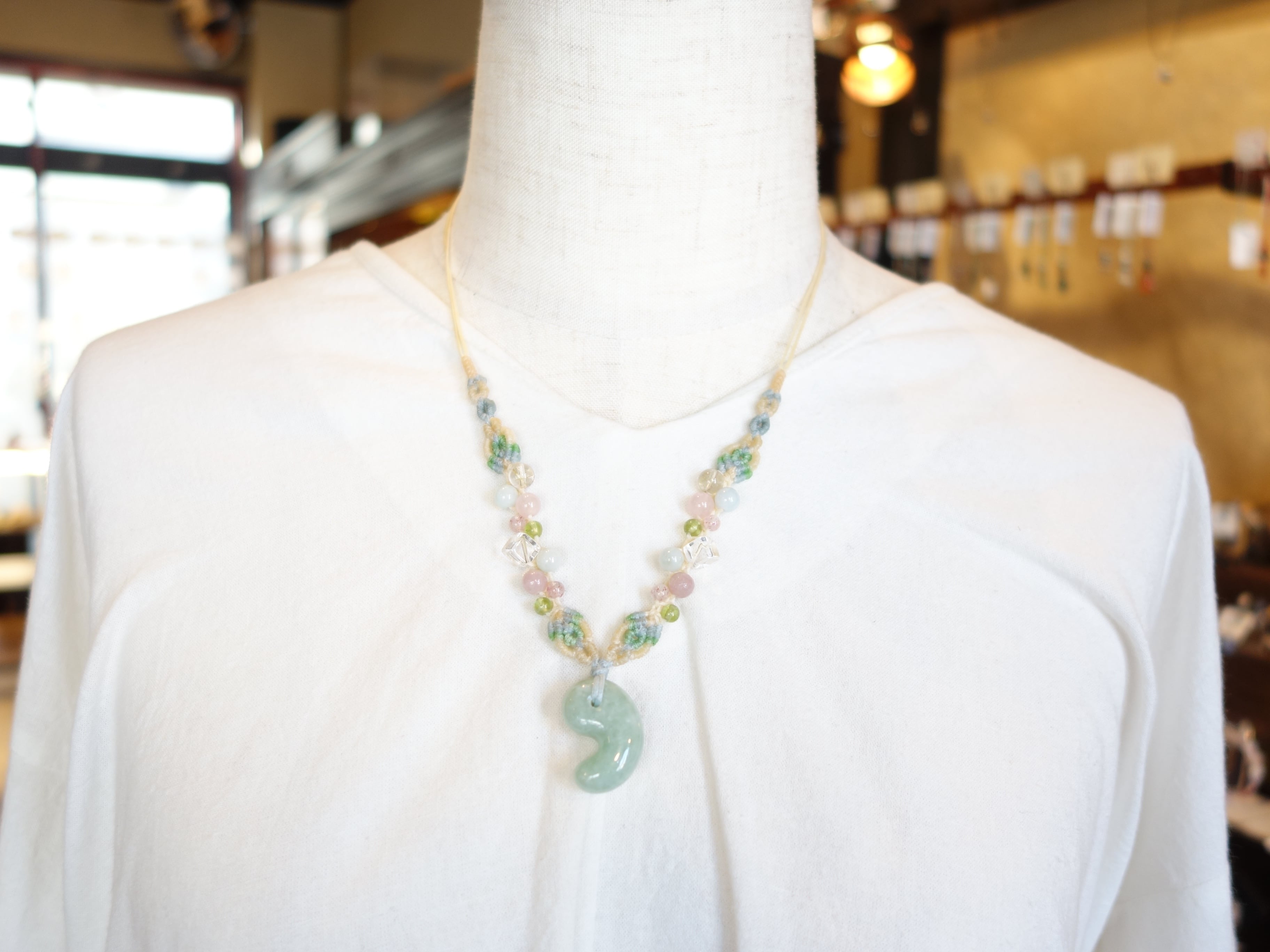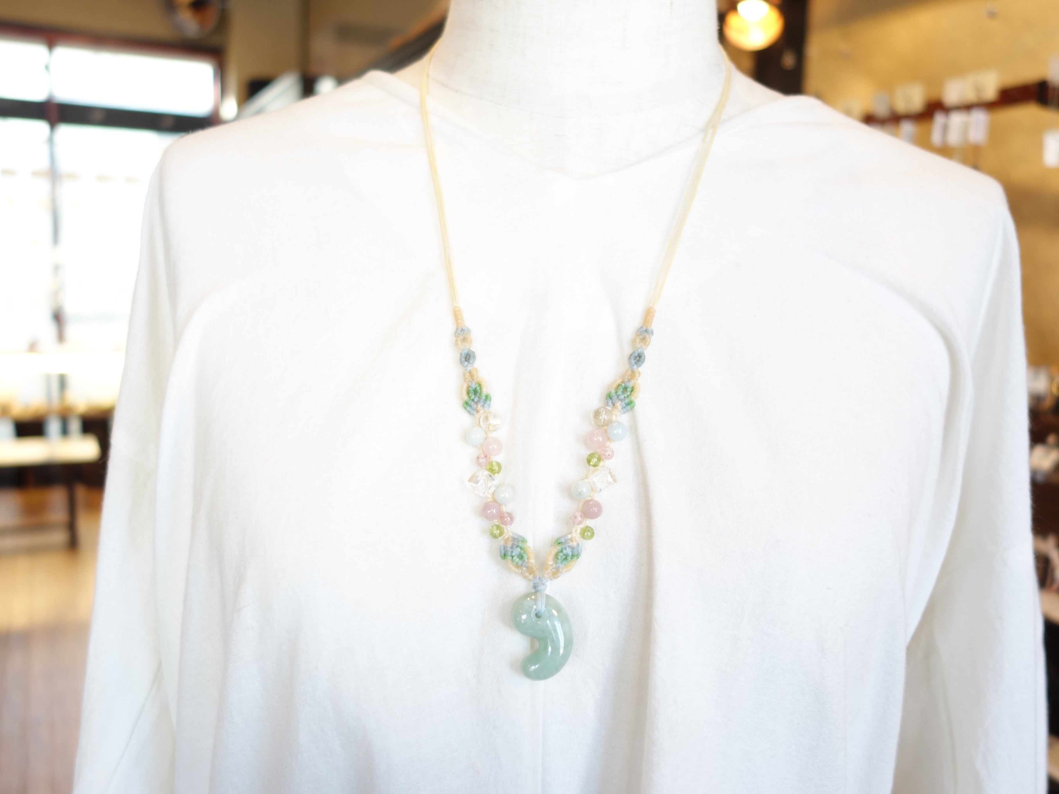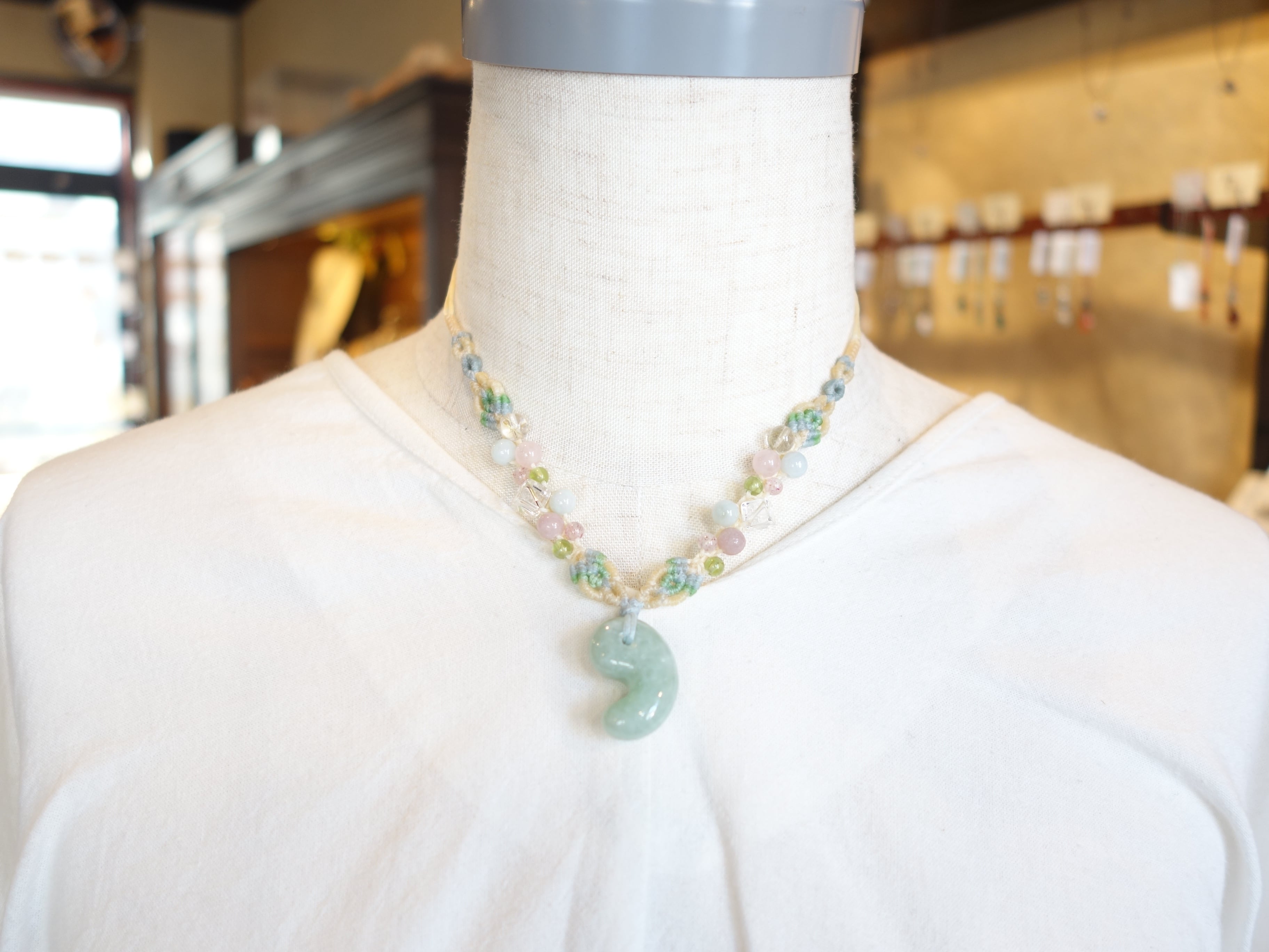限定【ビルマヒスイ】25ミリ勾玉が主役のマクラメネックレスです。