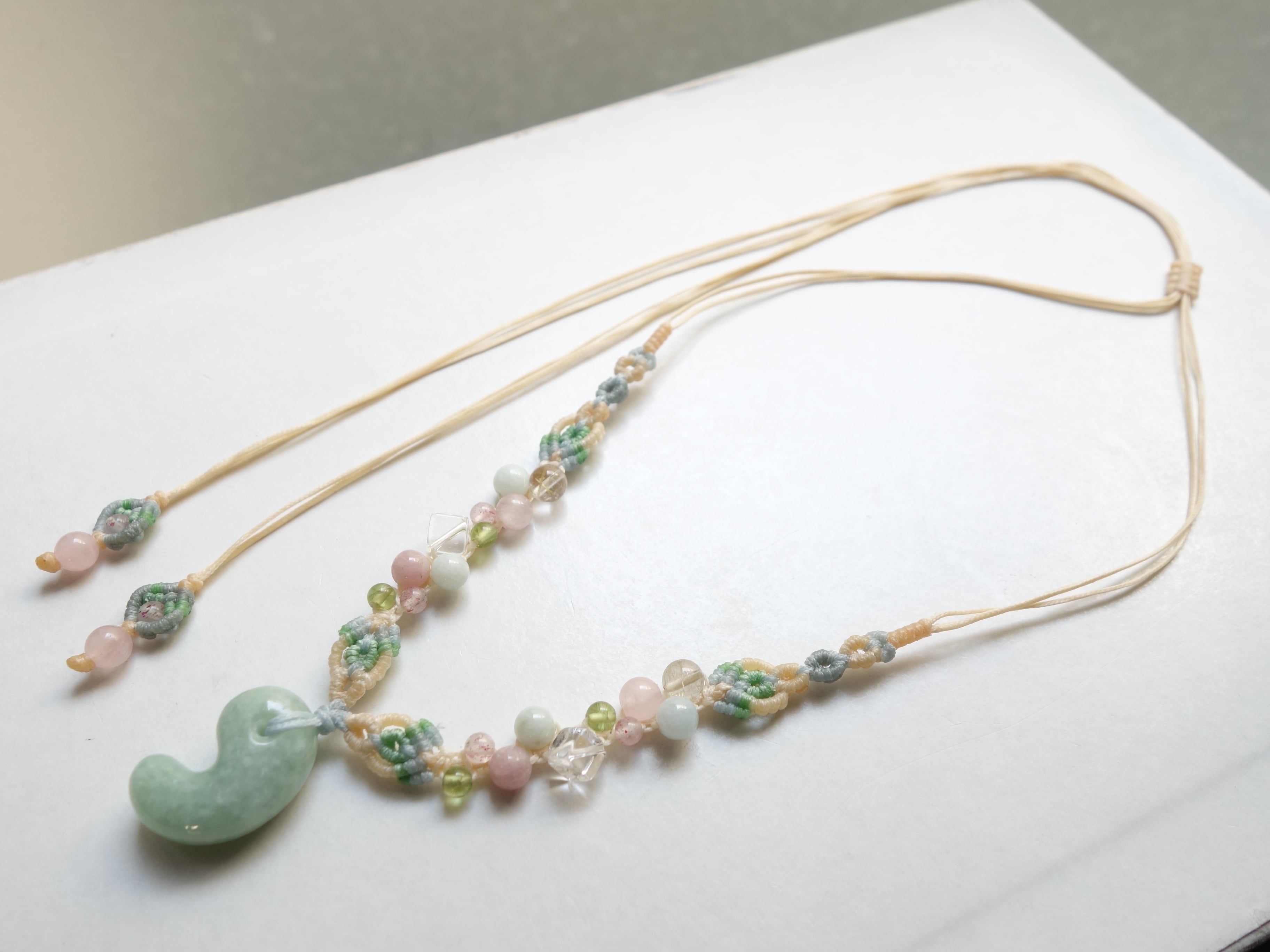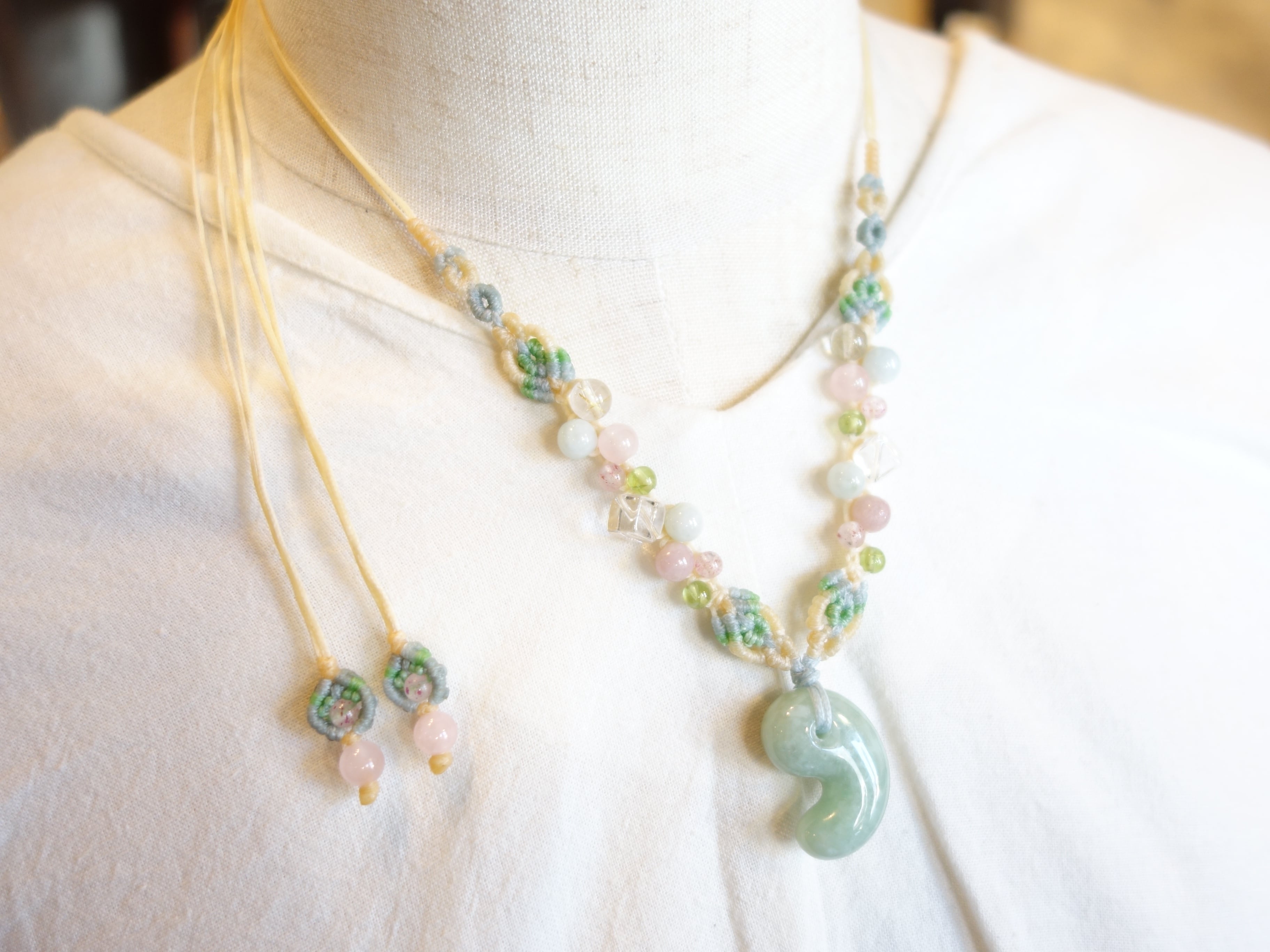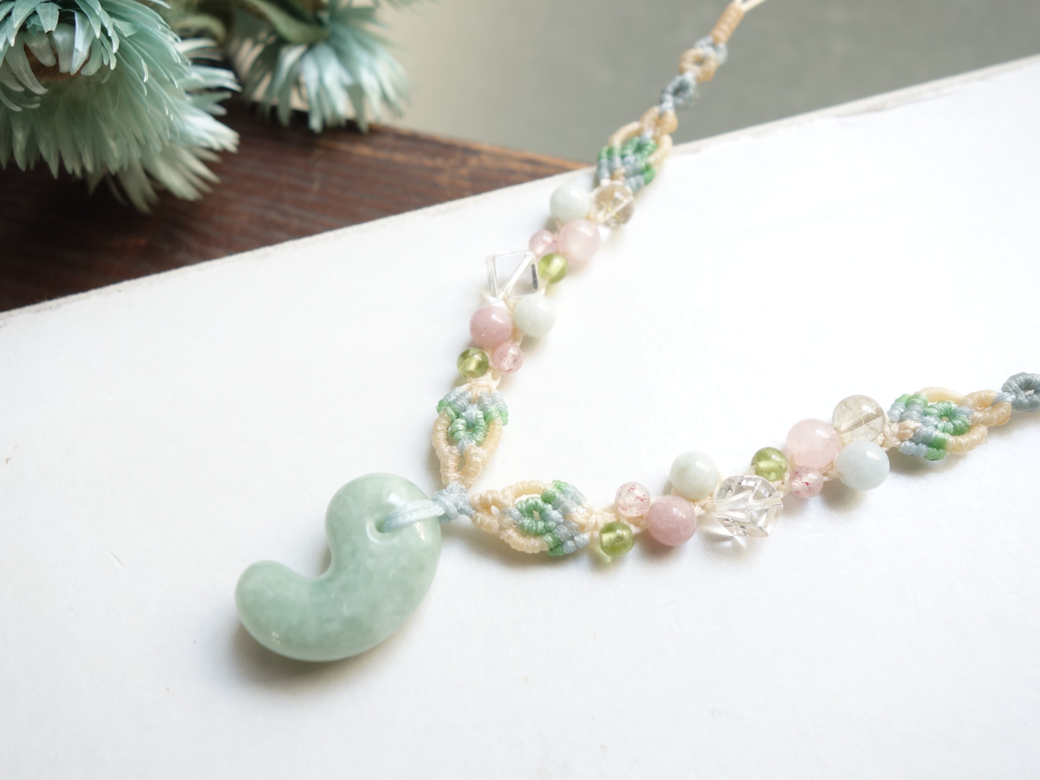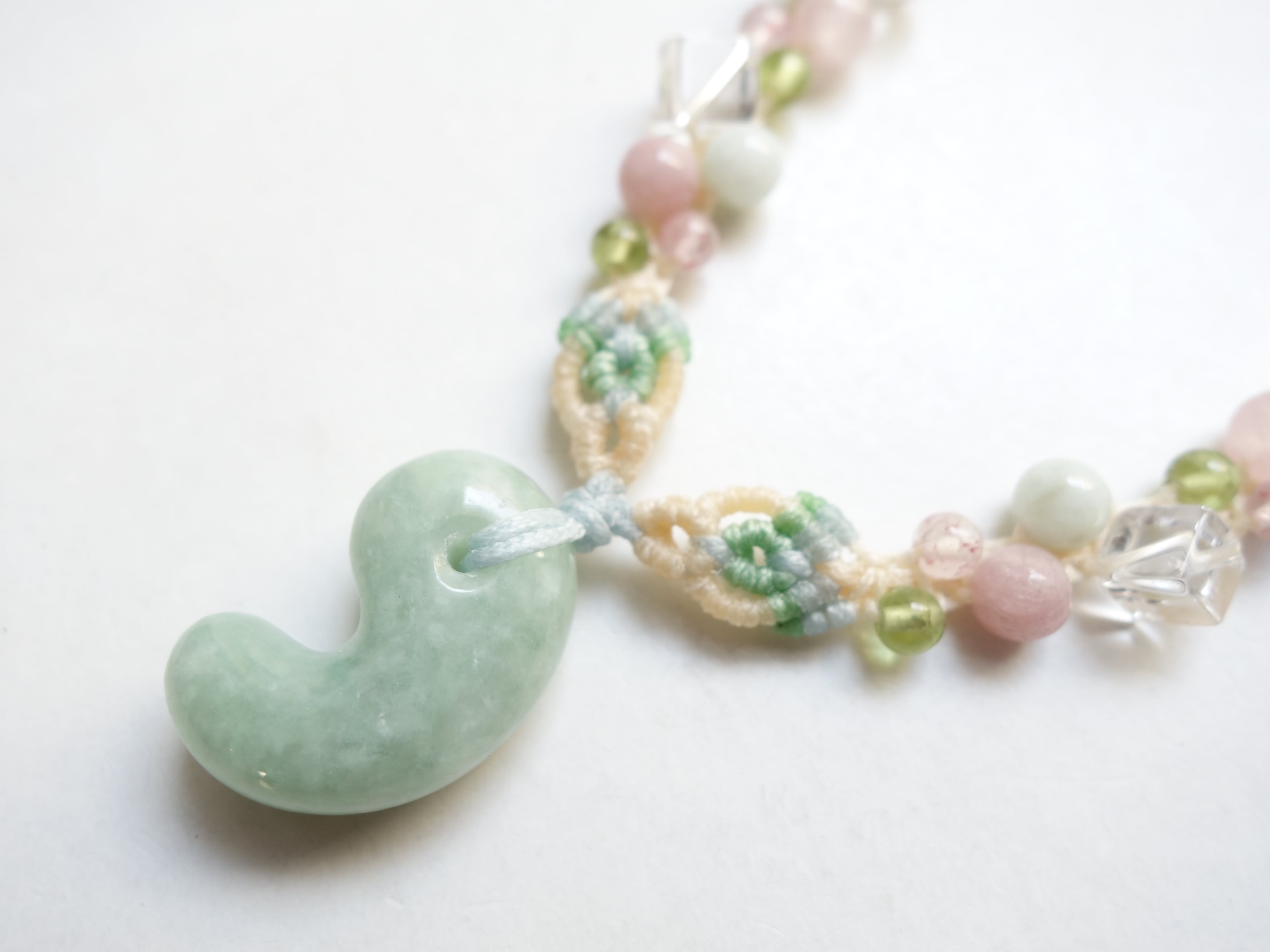 限定【ビルマヒスイ】25ミリ勾玉が主役のマクラメネックレスです。