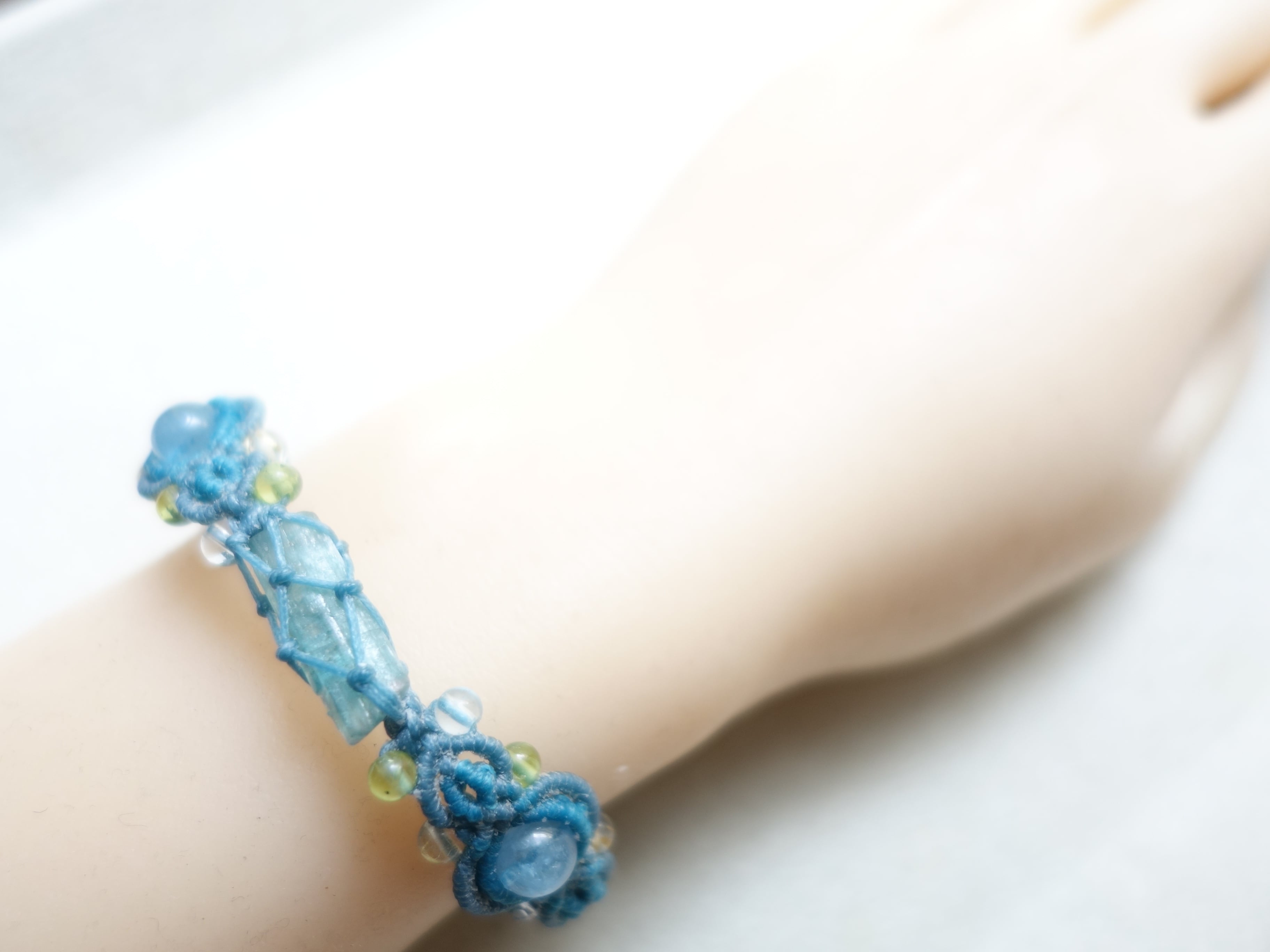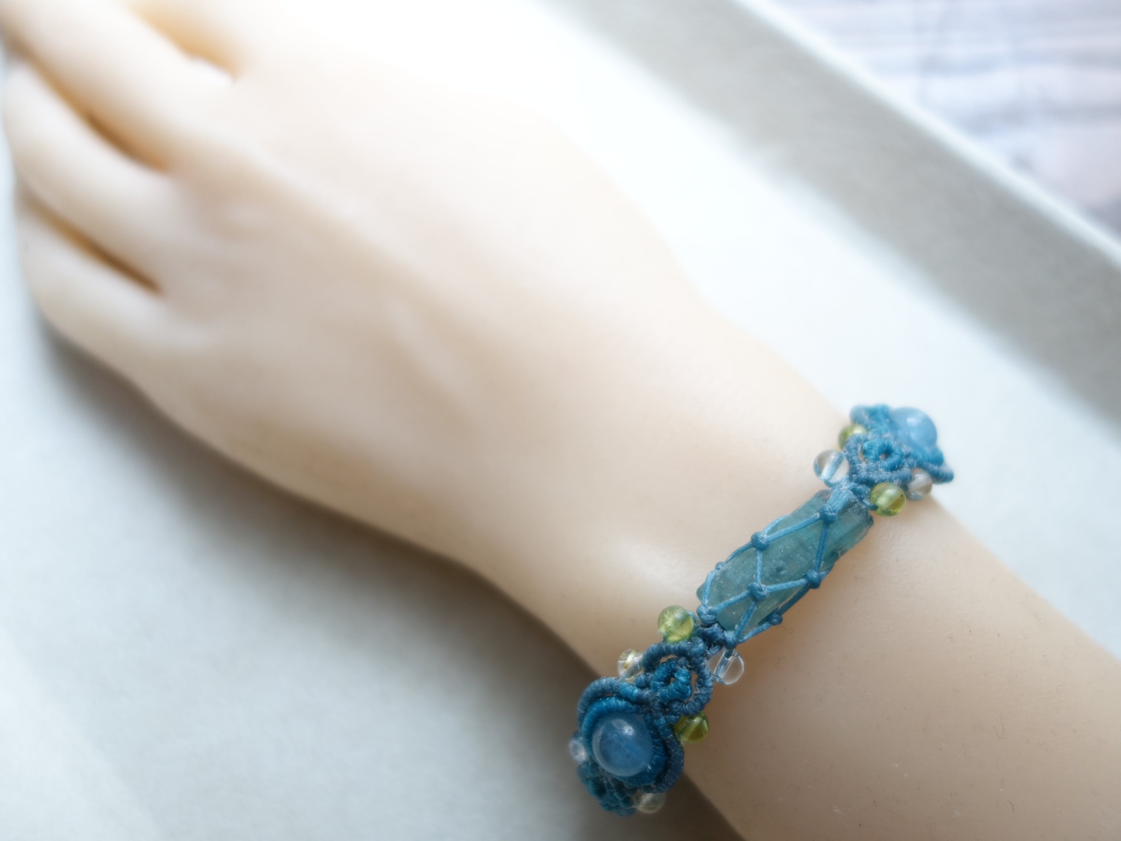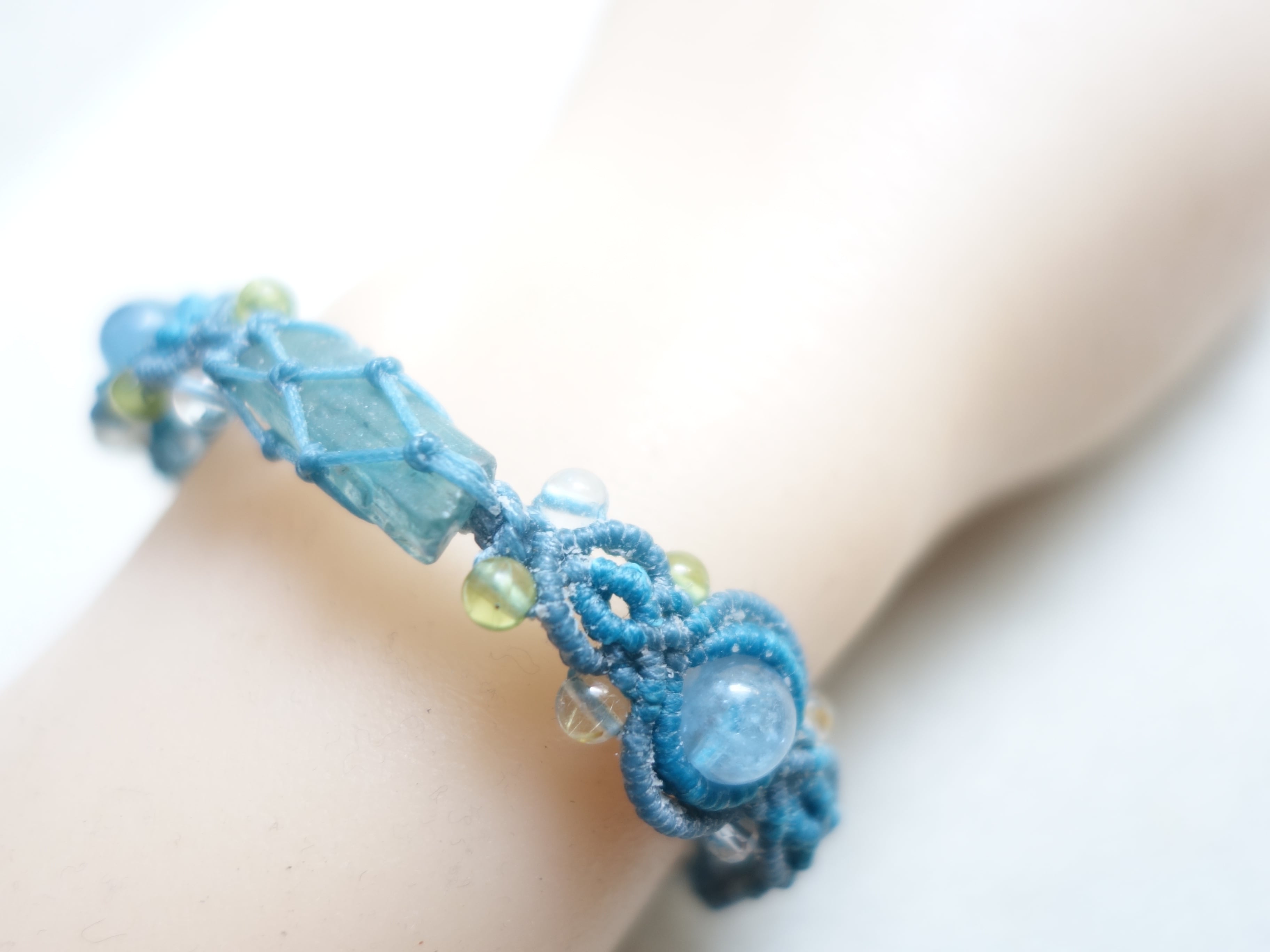手首周りには濃いめの【アクアマリン】ハイクラスビーズを添えて、