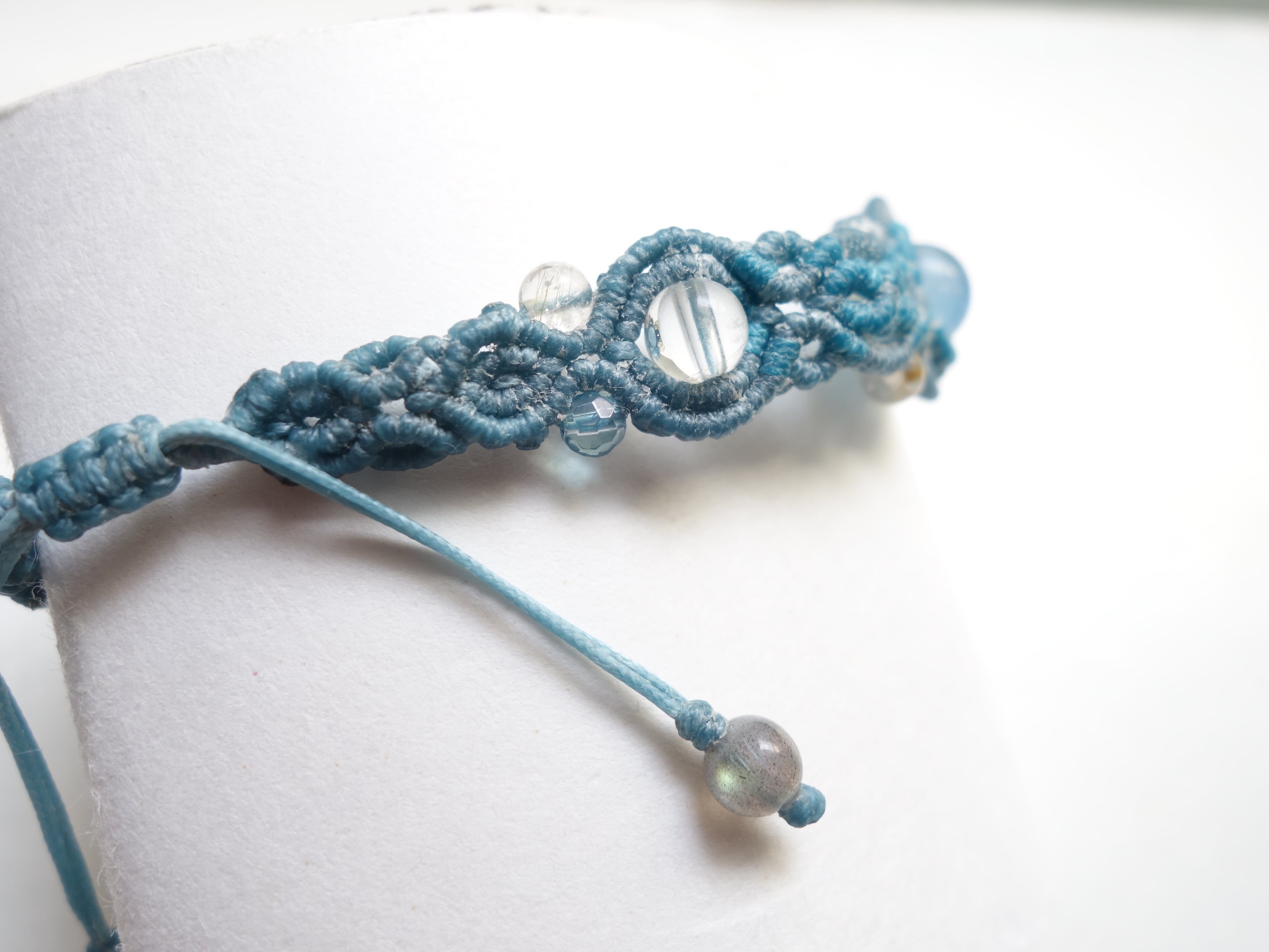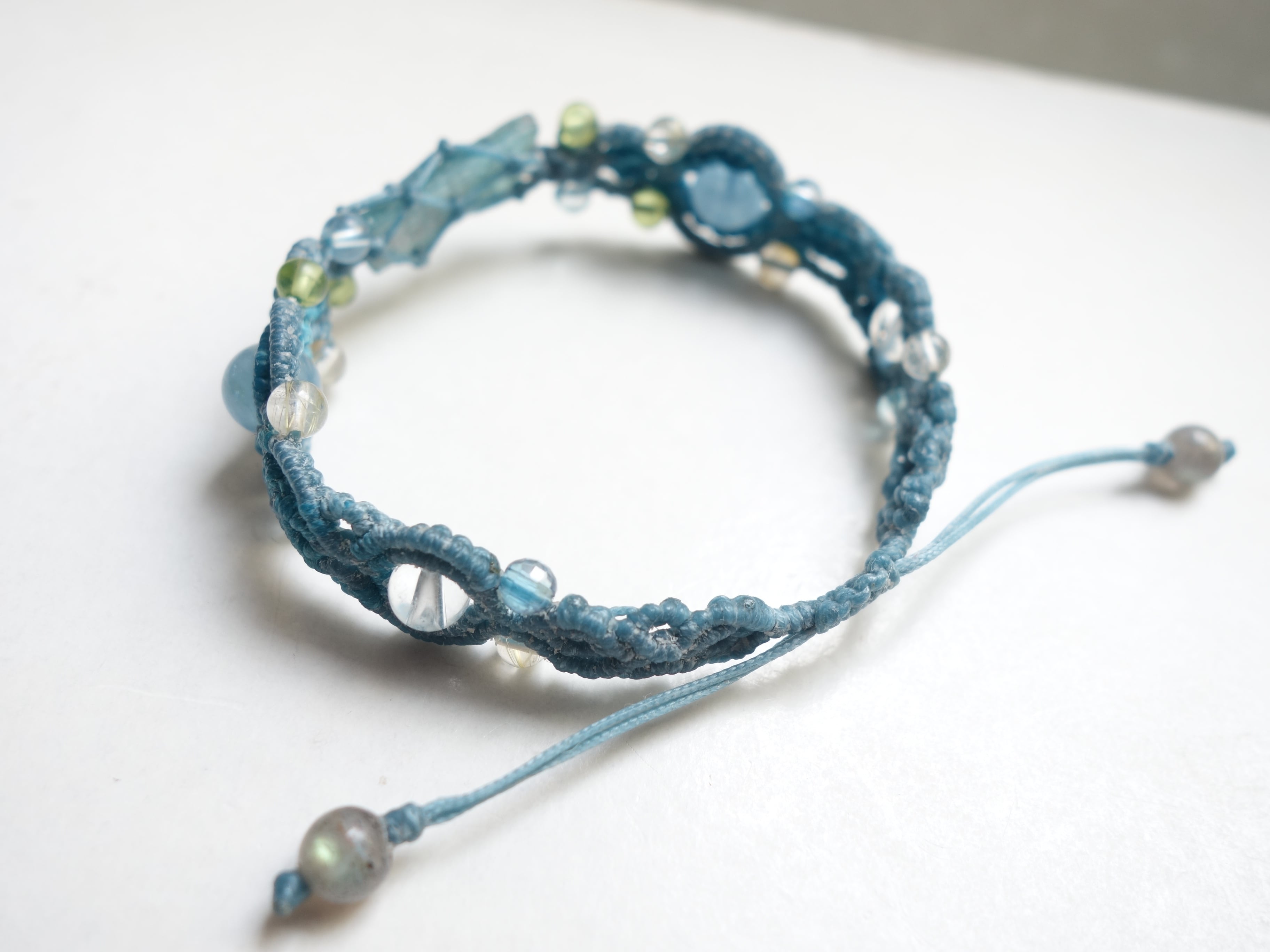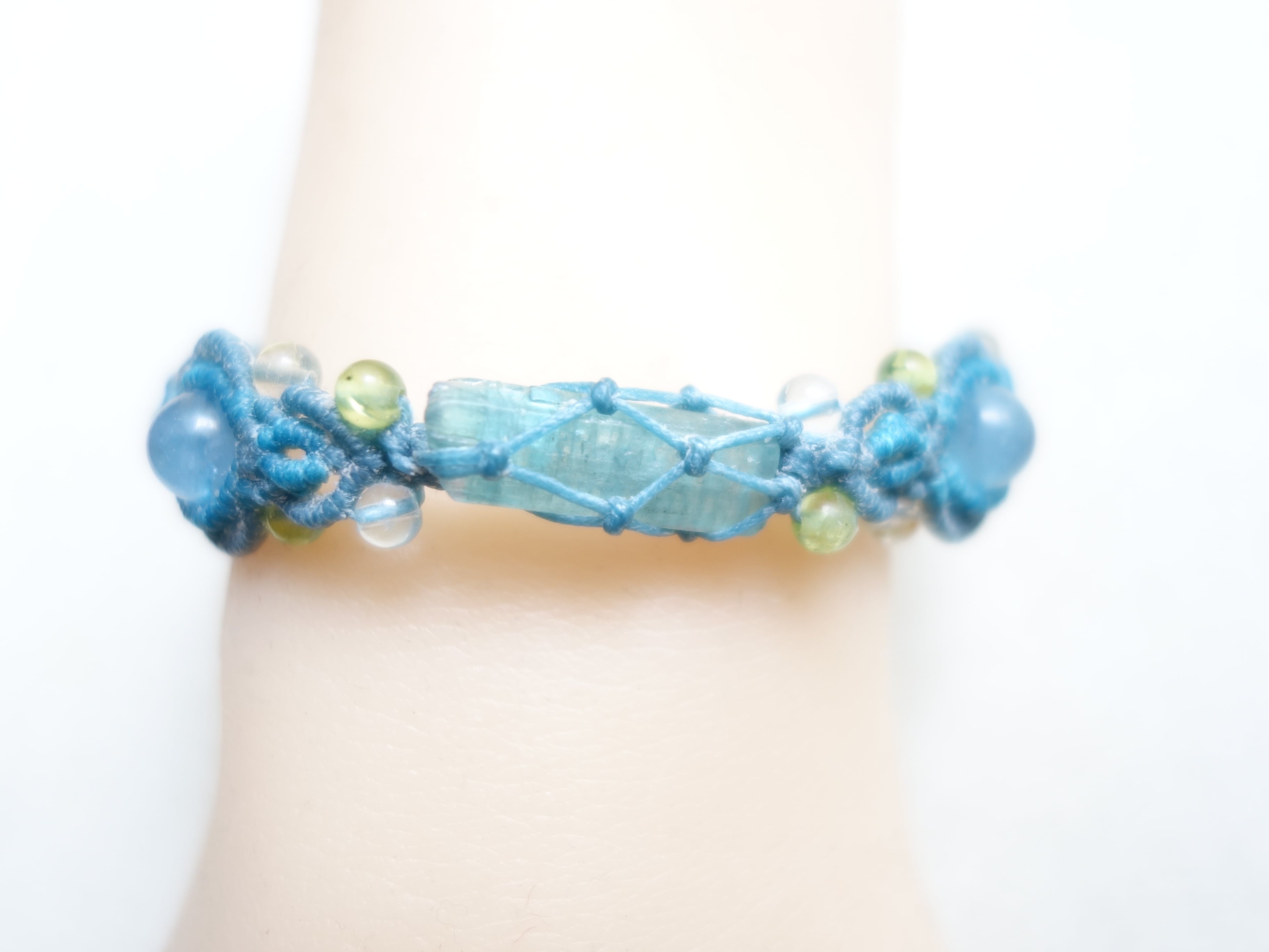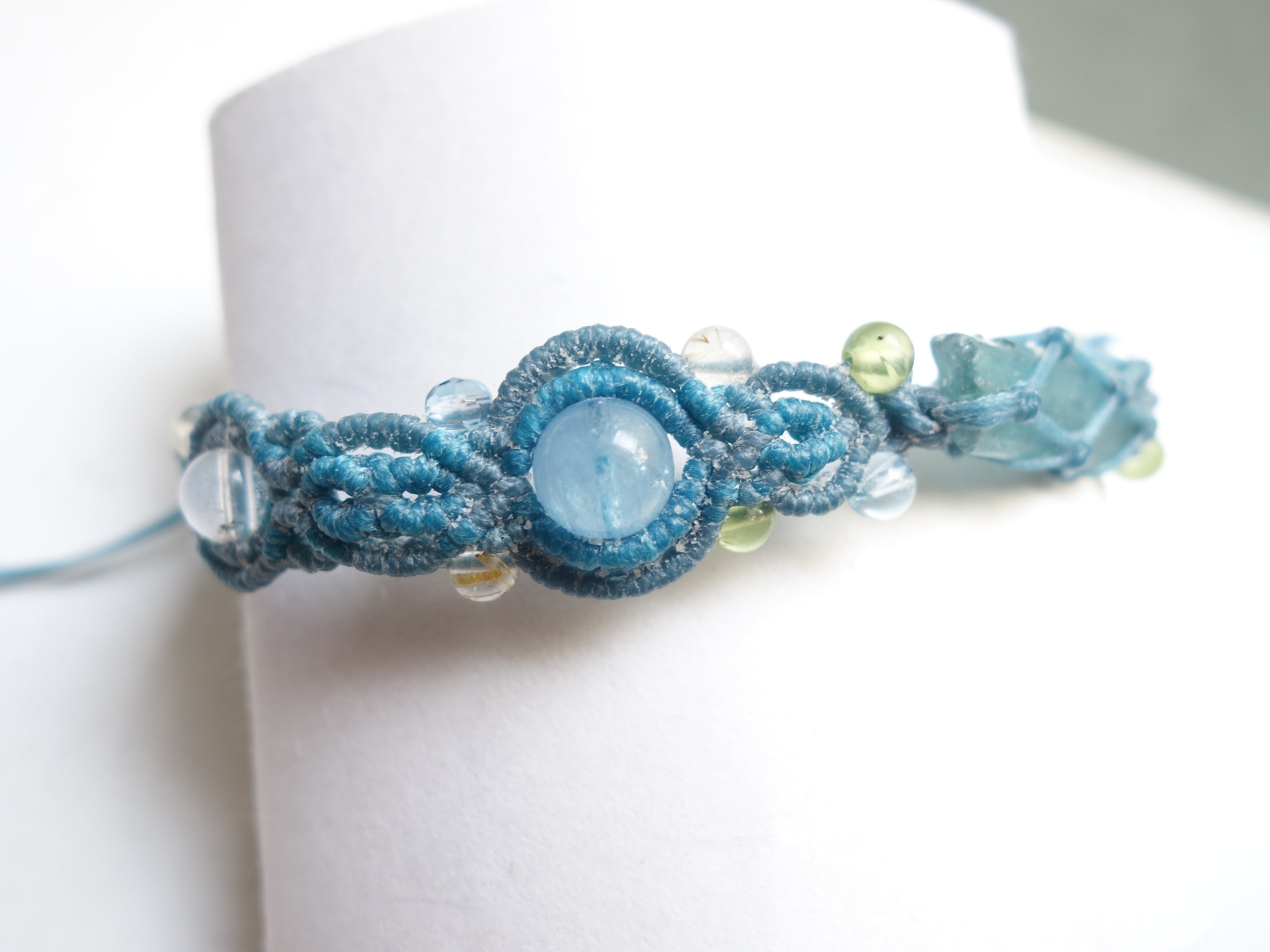 手首周りには濃いめの【アクアマリン】ハイクラスビーズを添えて、