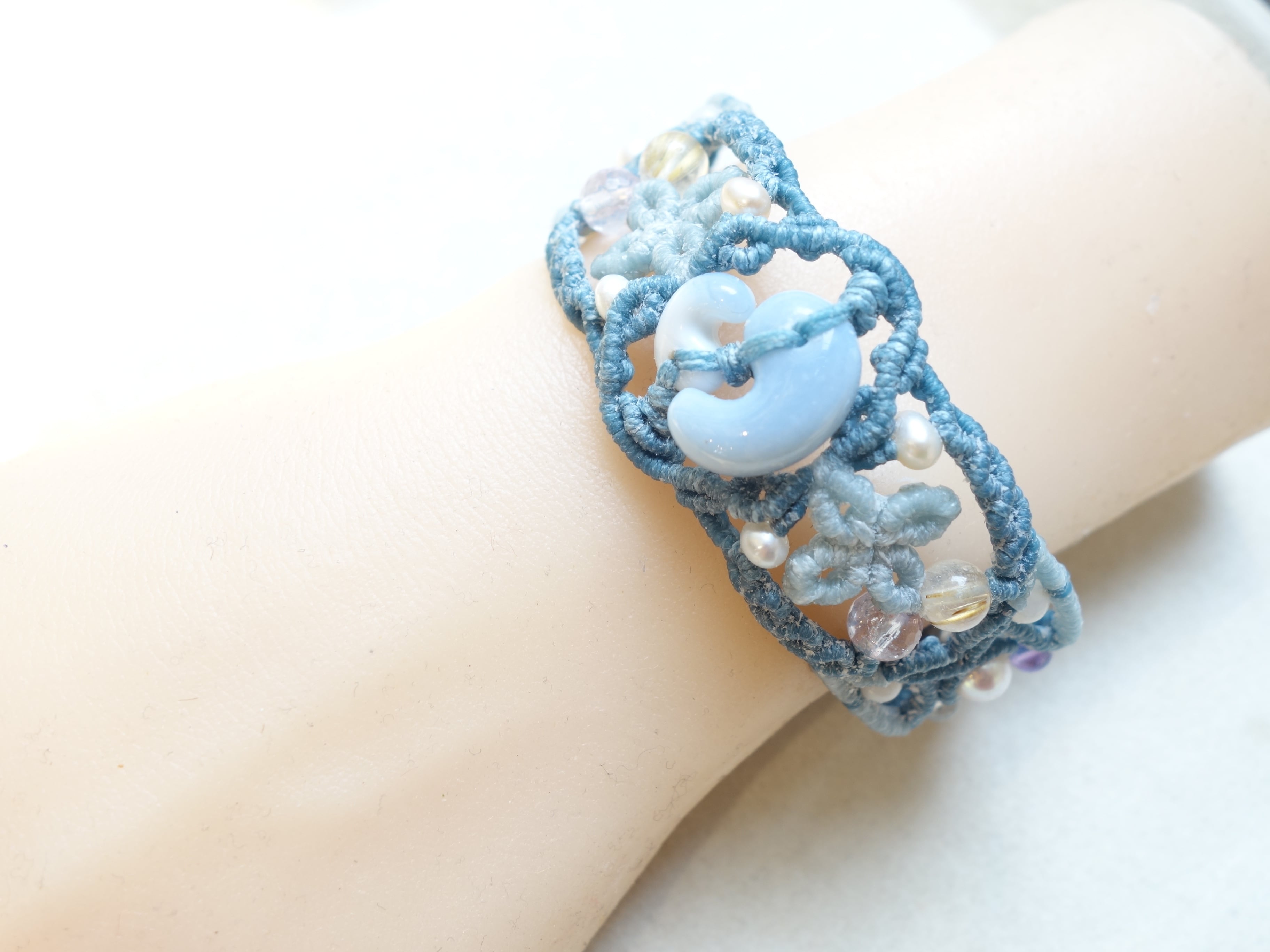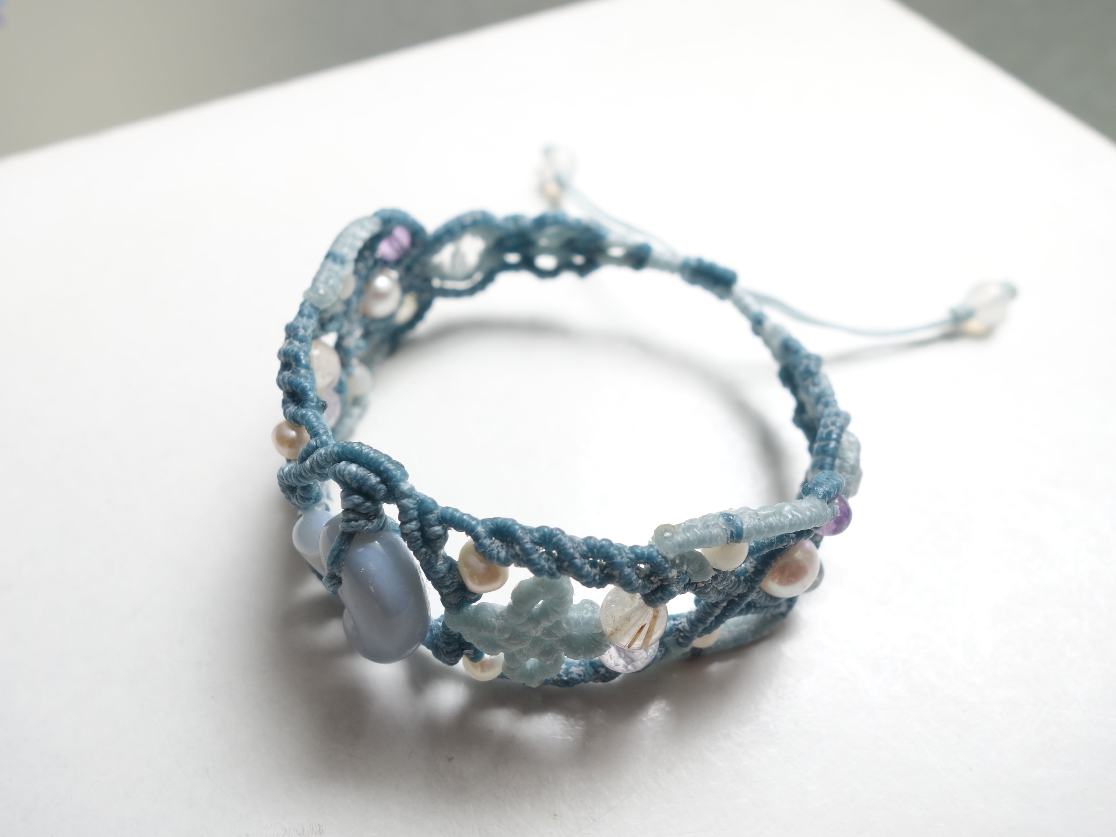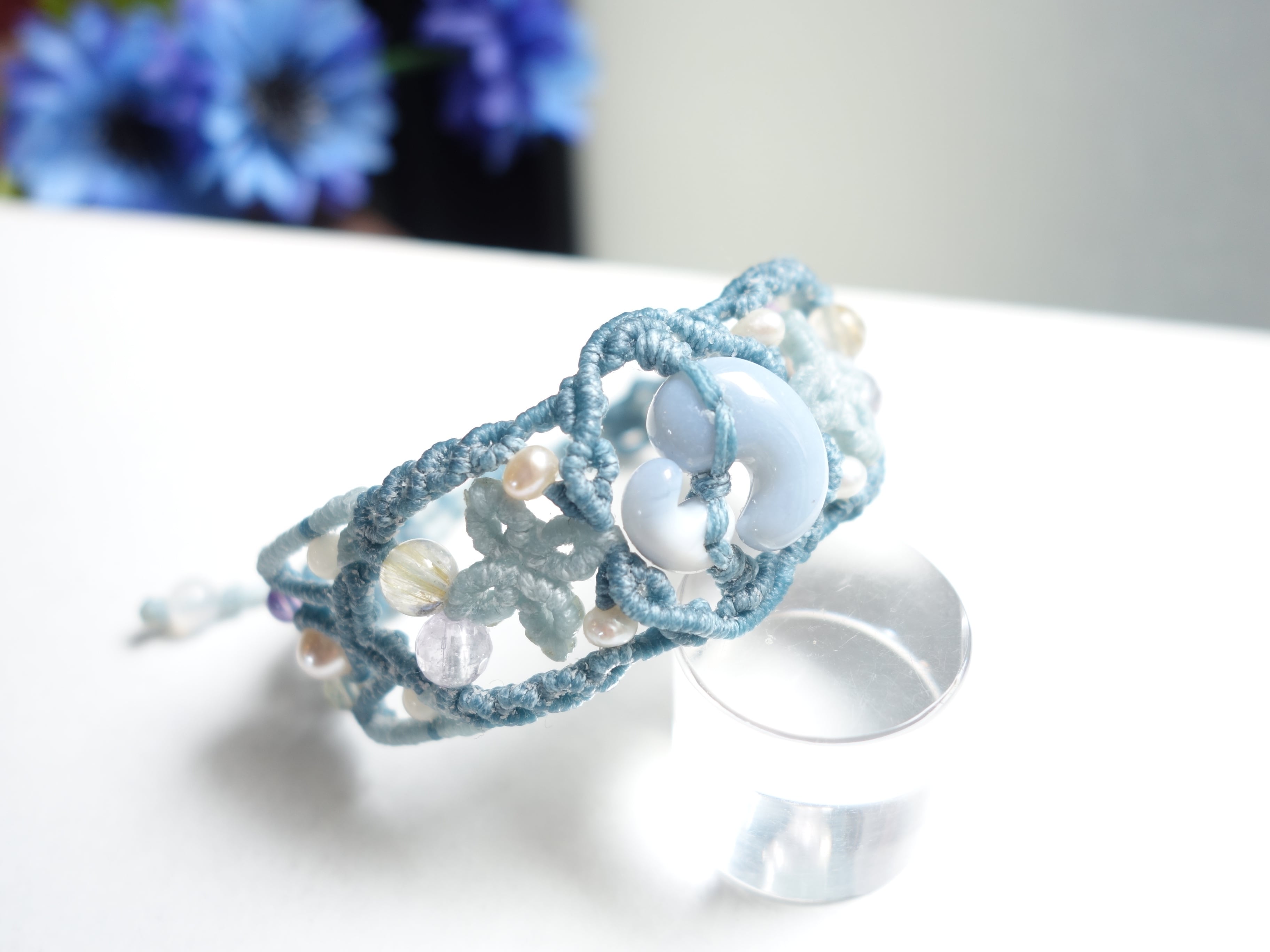 【ブルーオパール】結勾玉 マクラメバングル