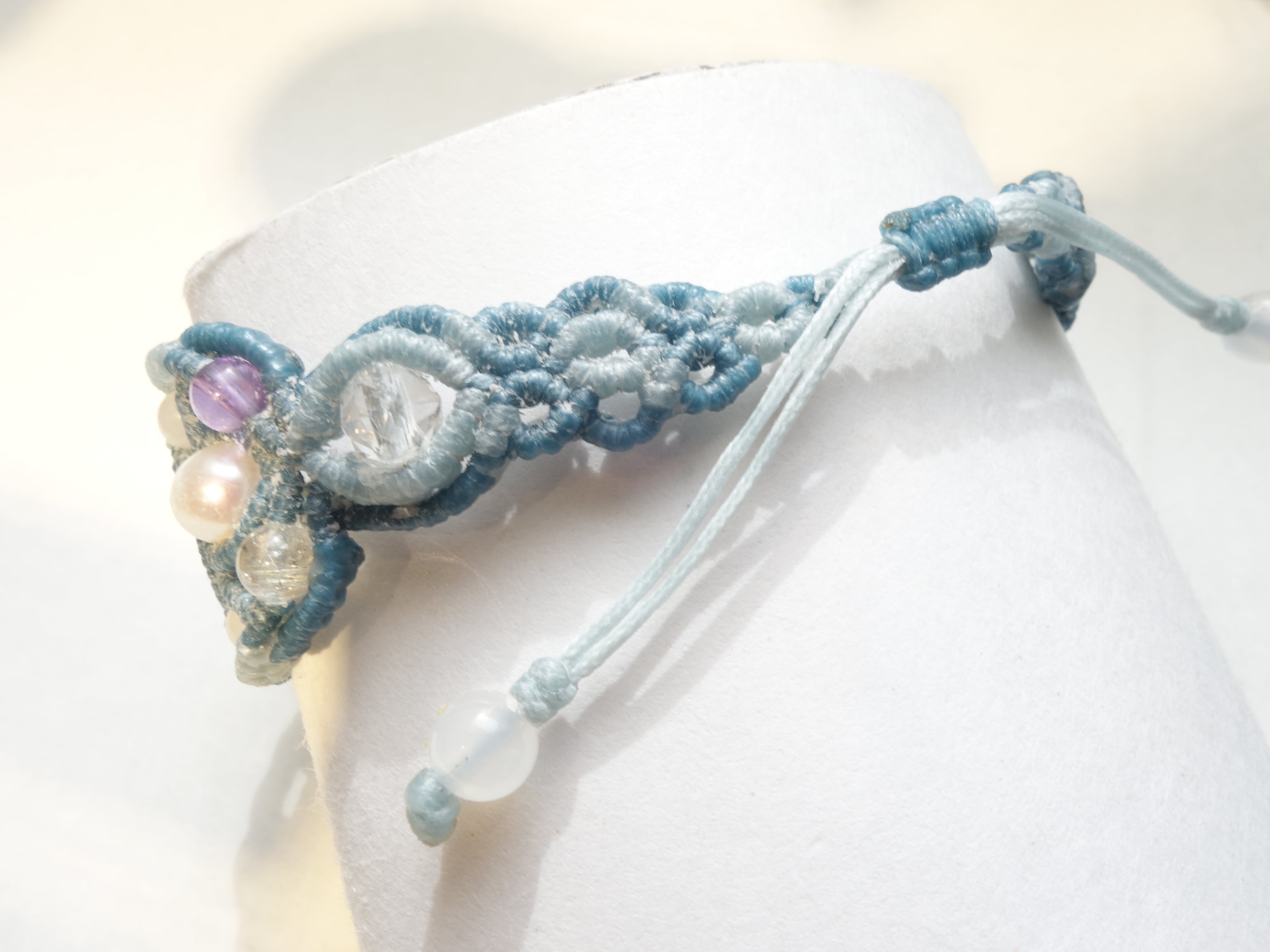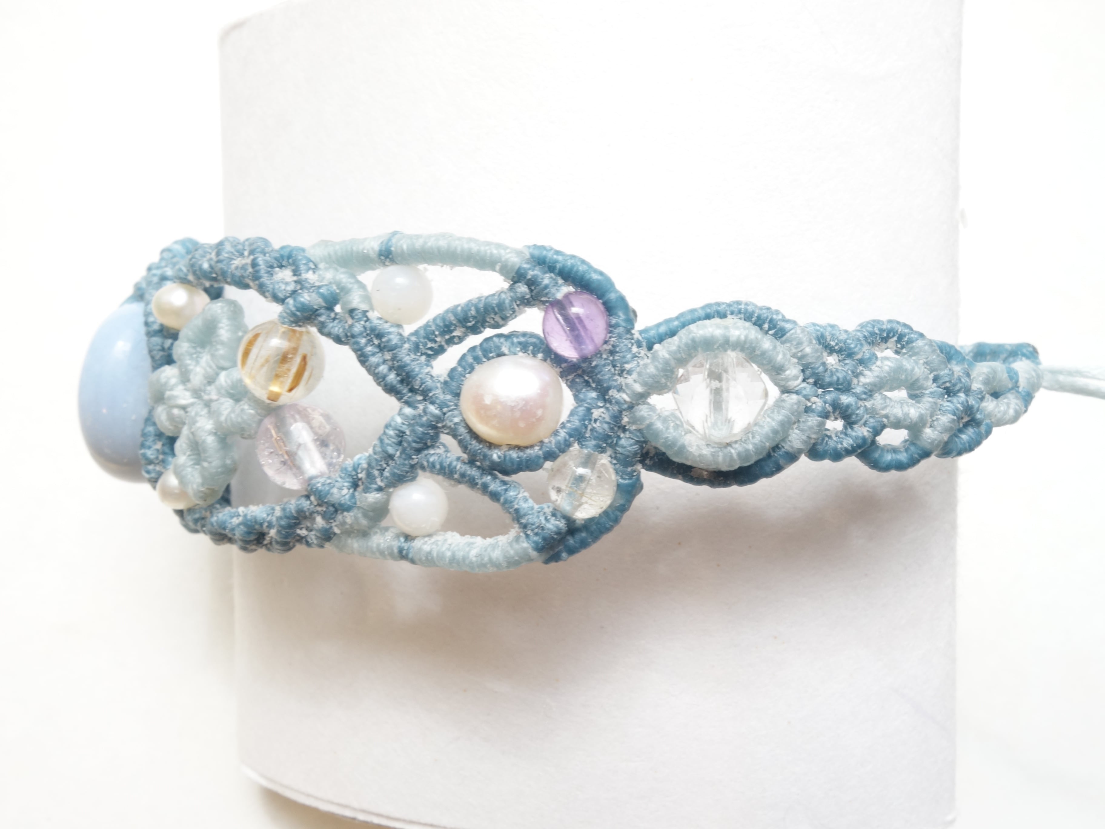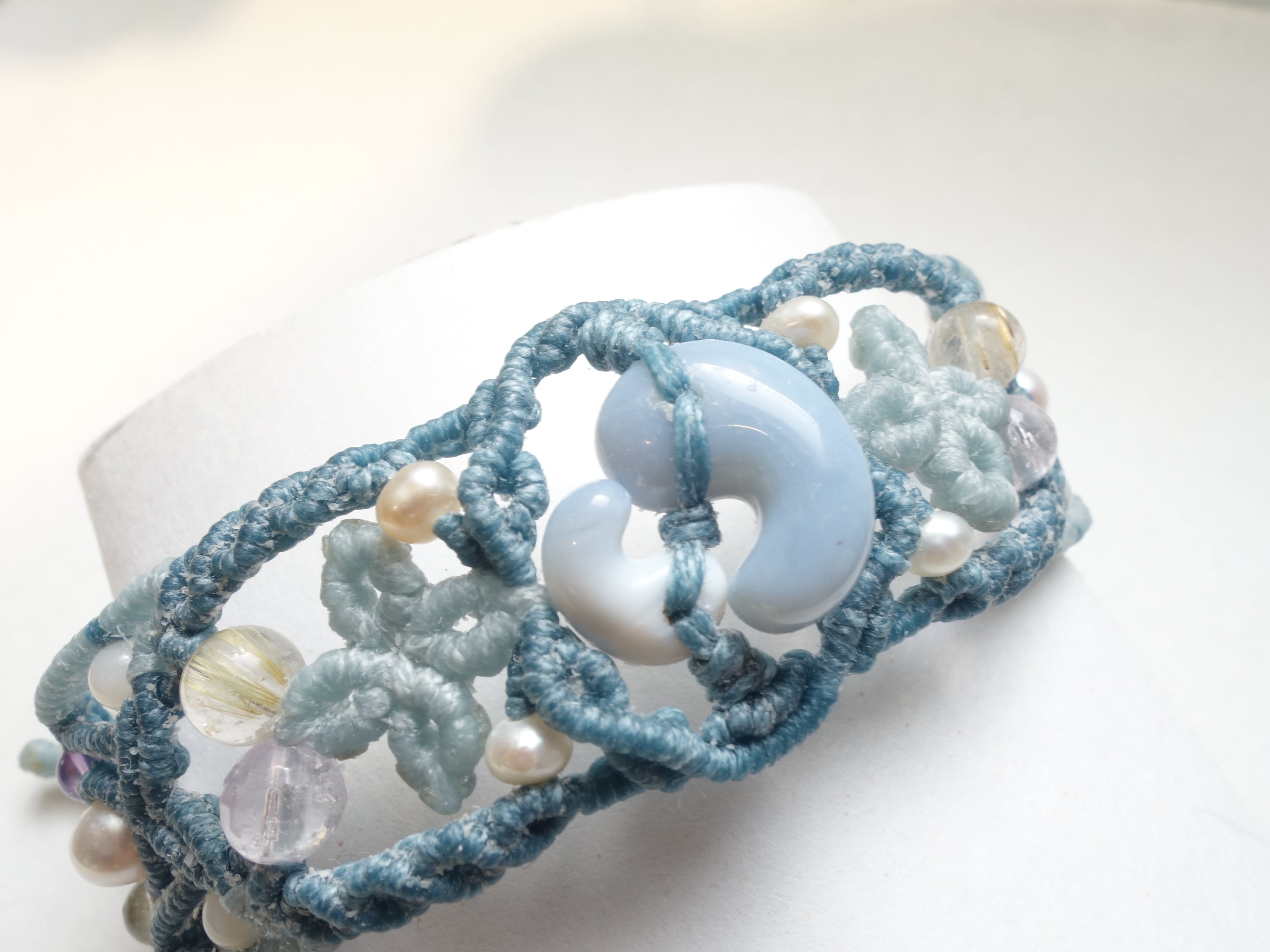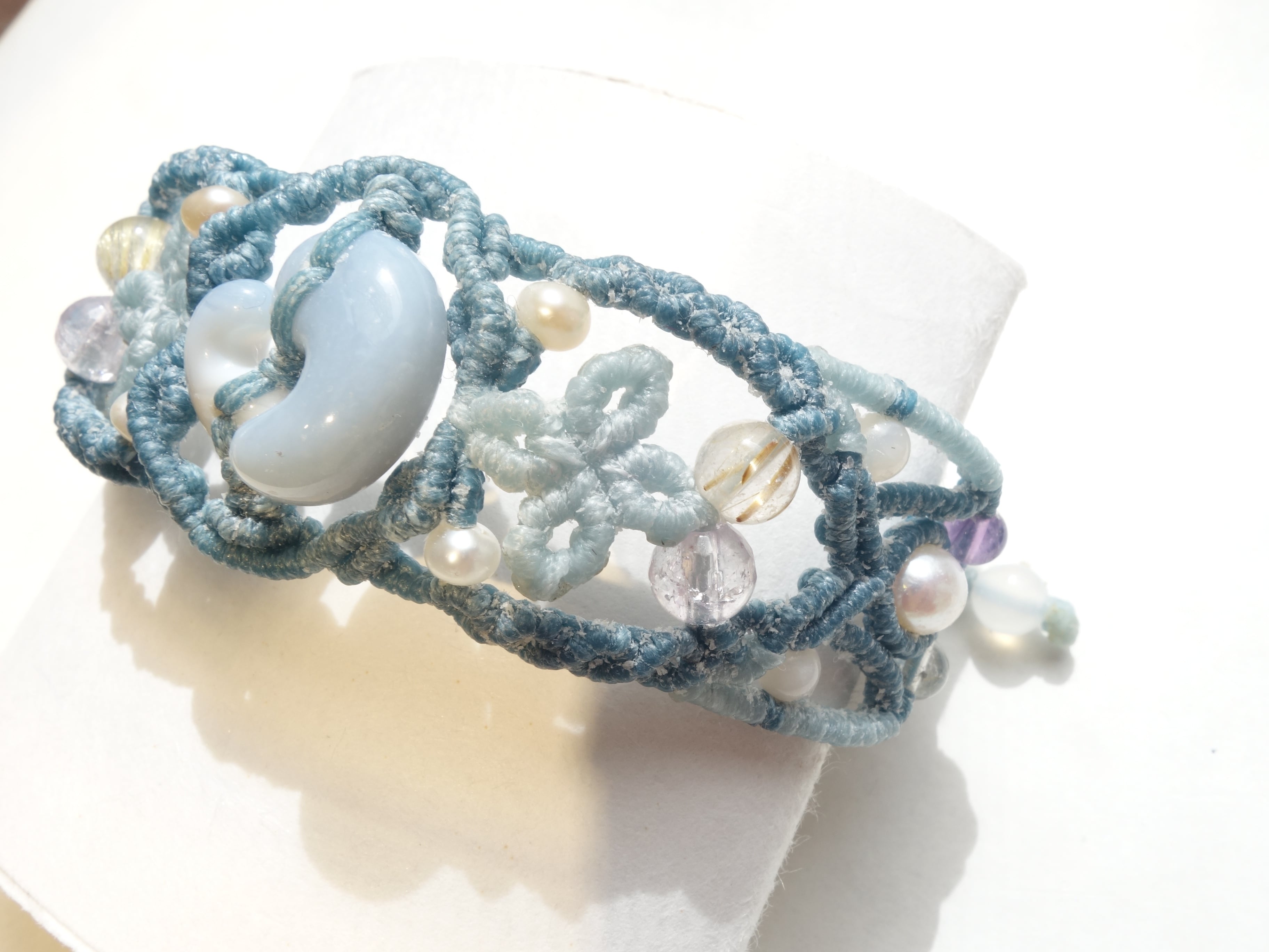 【ブルーオパール】結勾玉 マクラメバングル