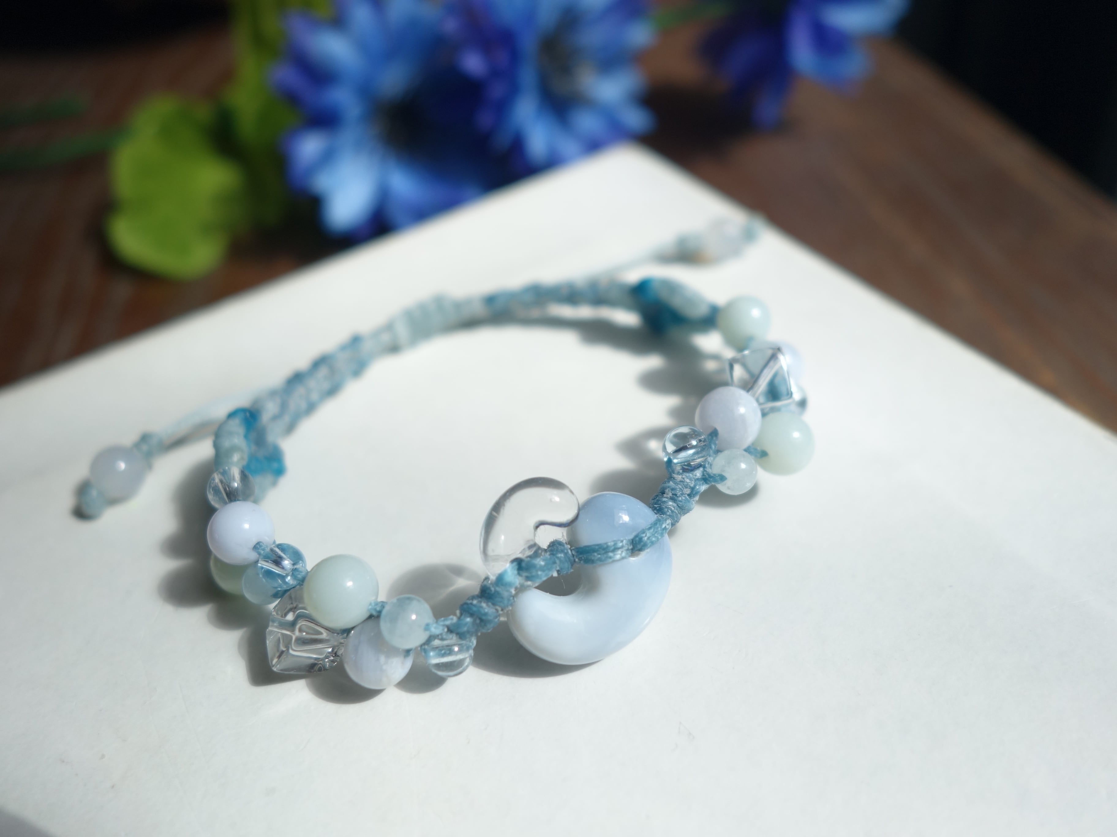 青空と雲の溶けあったような色彩の天然石ブレスレット