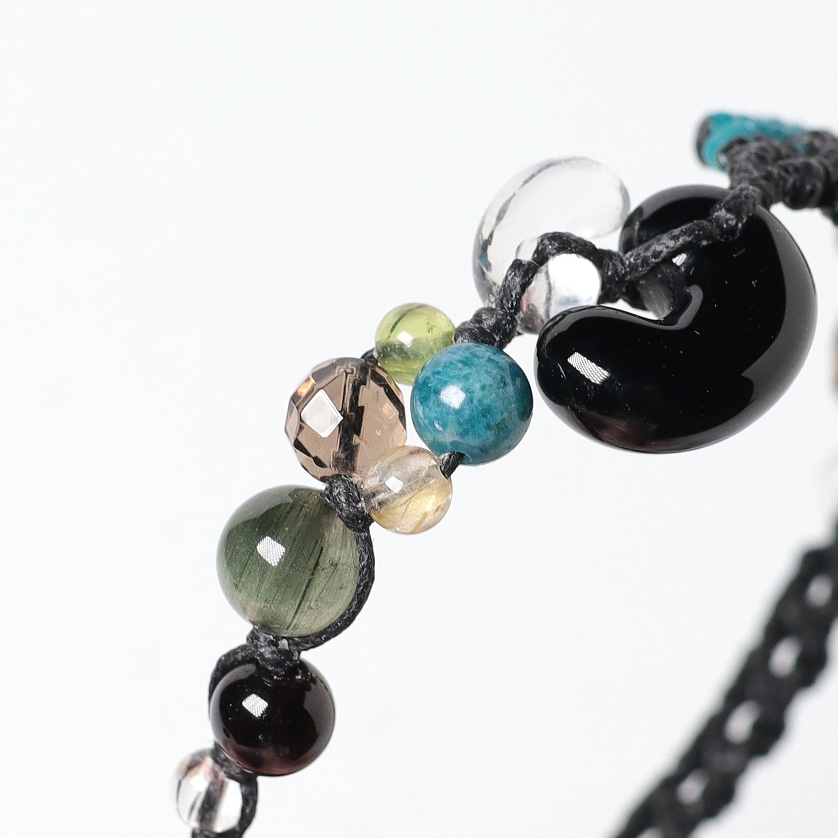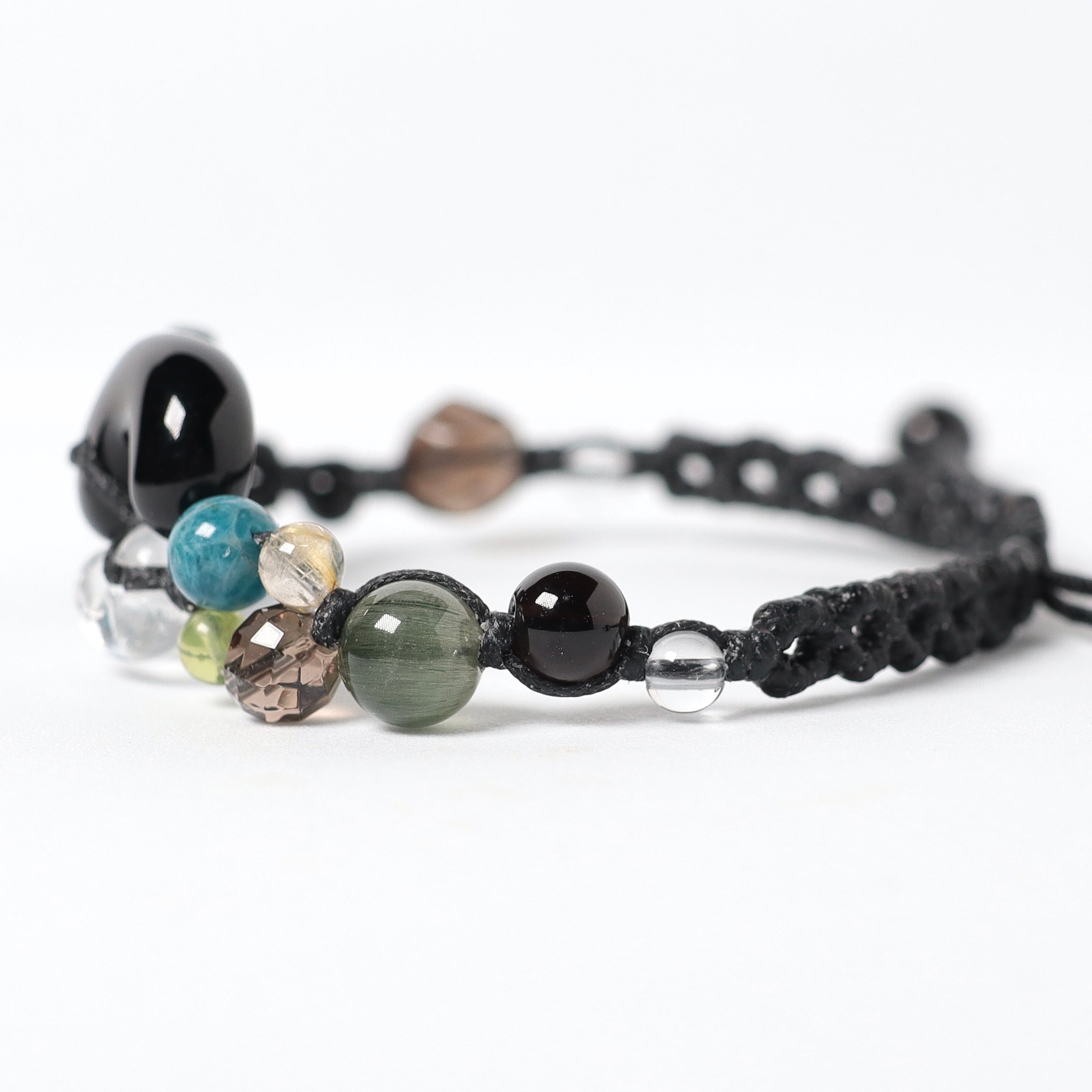 ペリドット、アパタイト、スモーキークォーツ、ルチルクォーツ、キャッツアイグリーンルチルクォーツ、天然黒水晶、水晶、オニキス