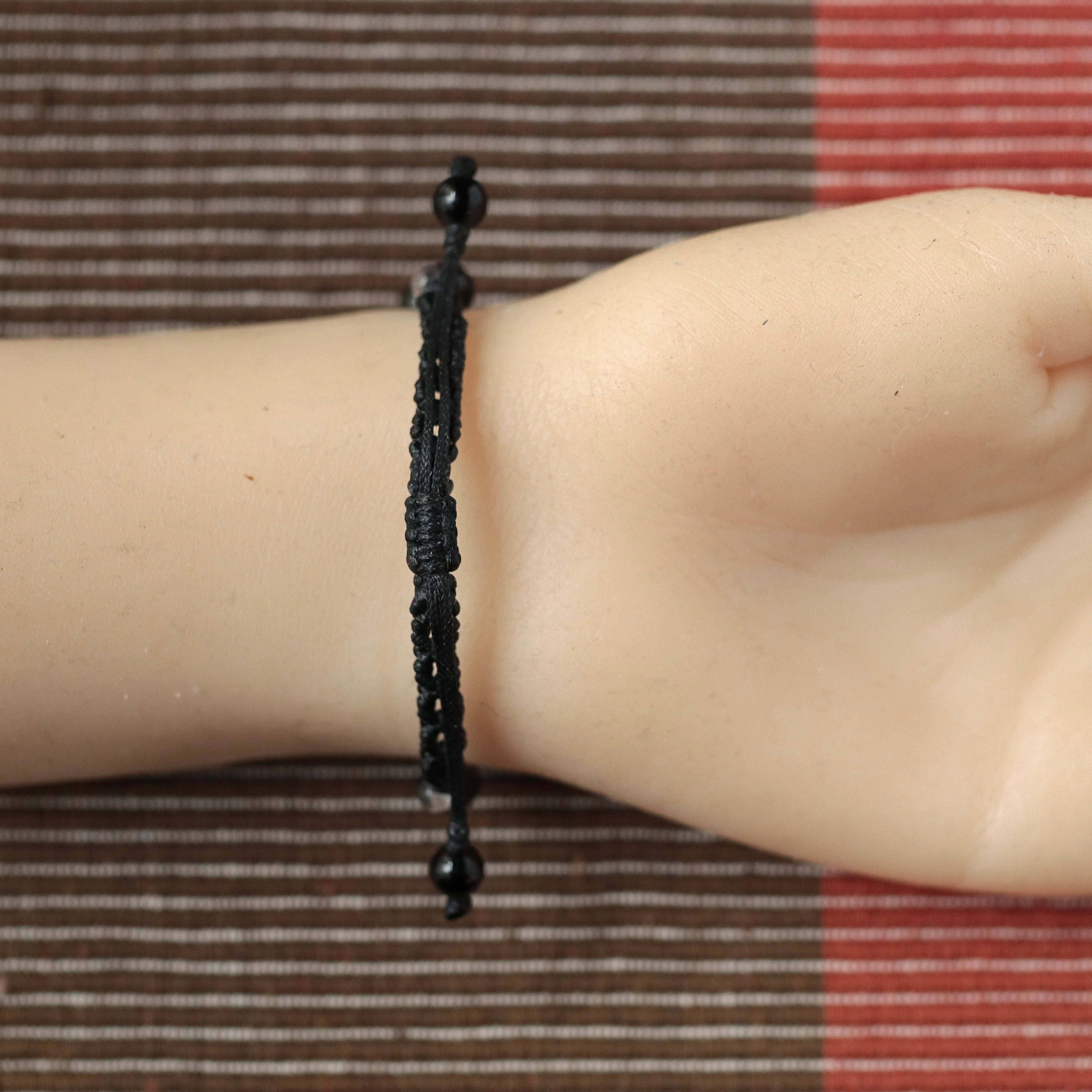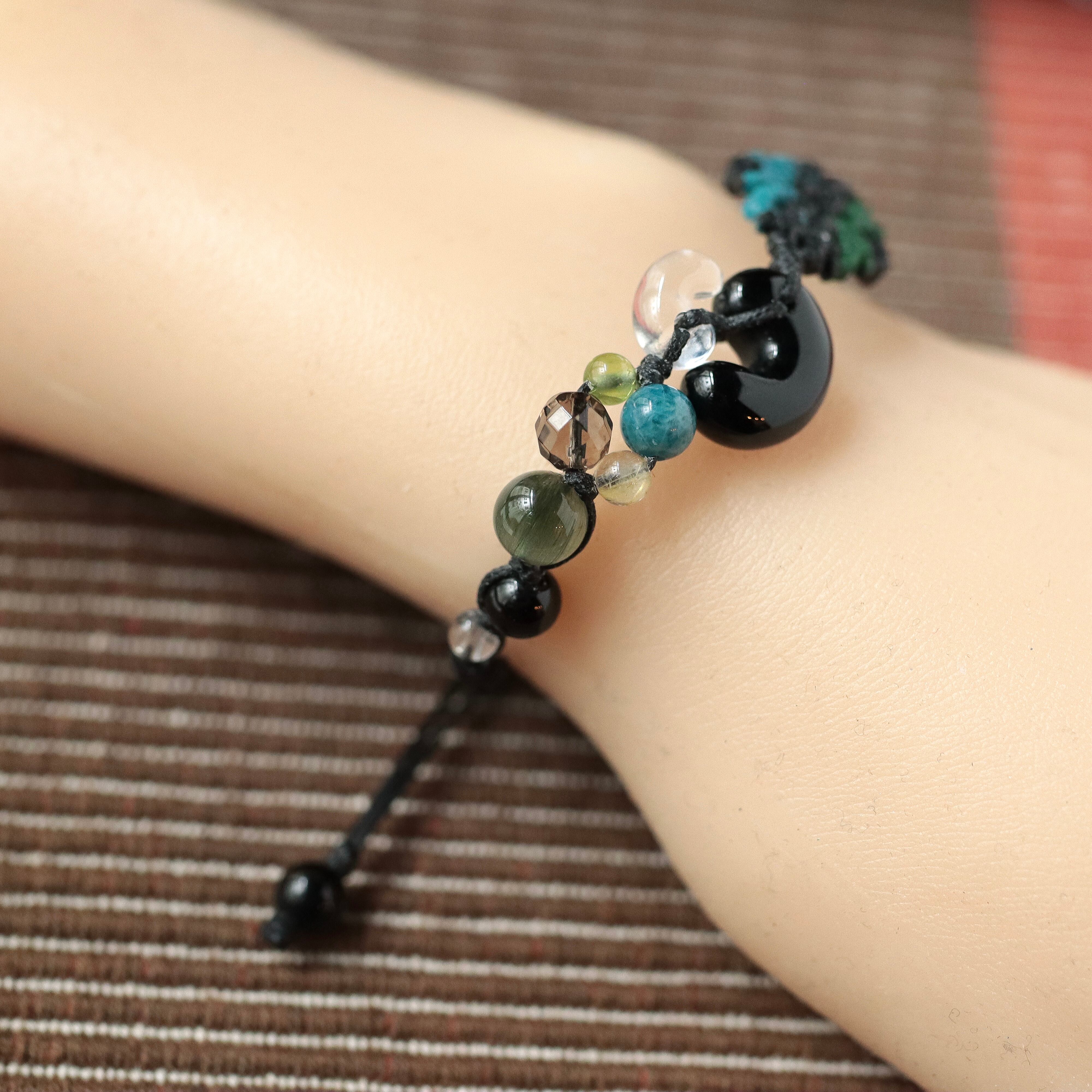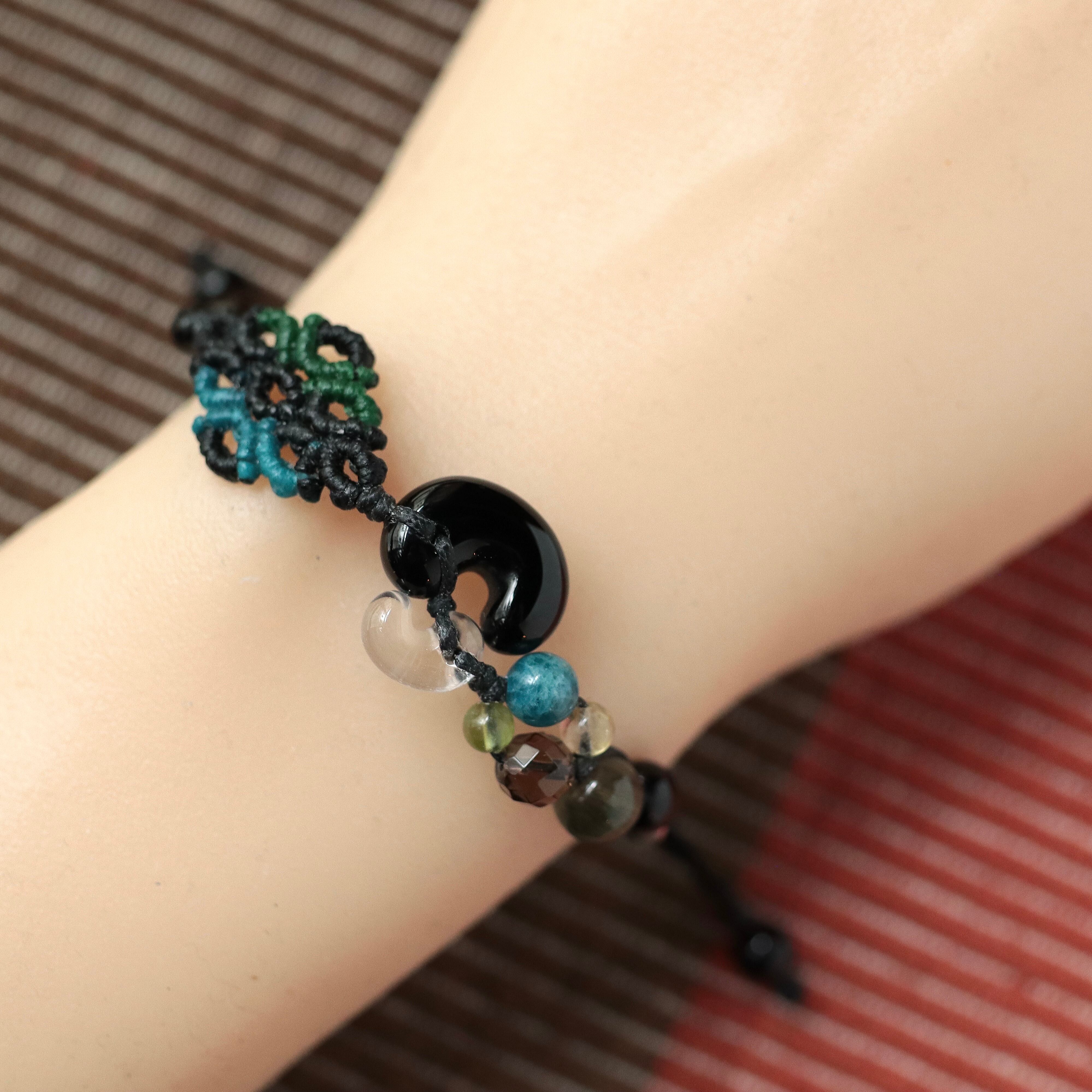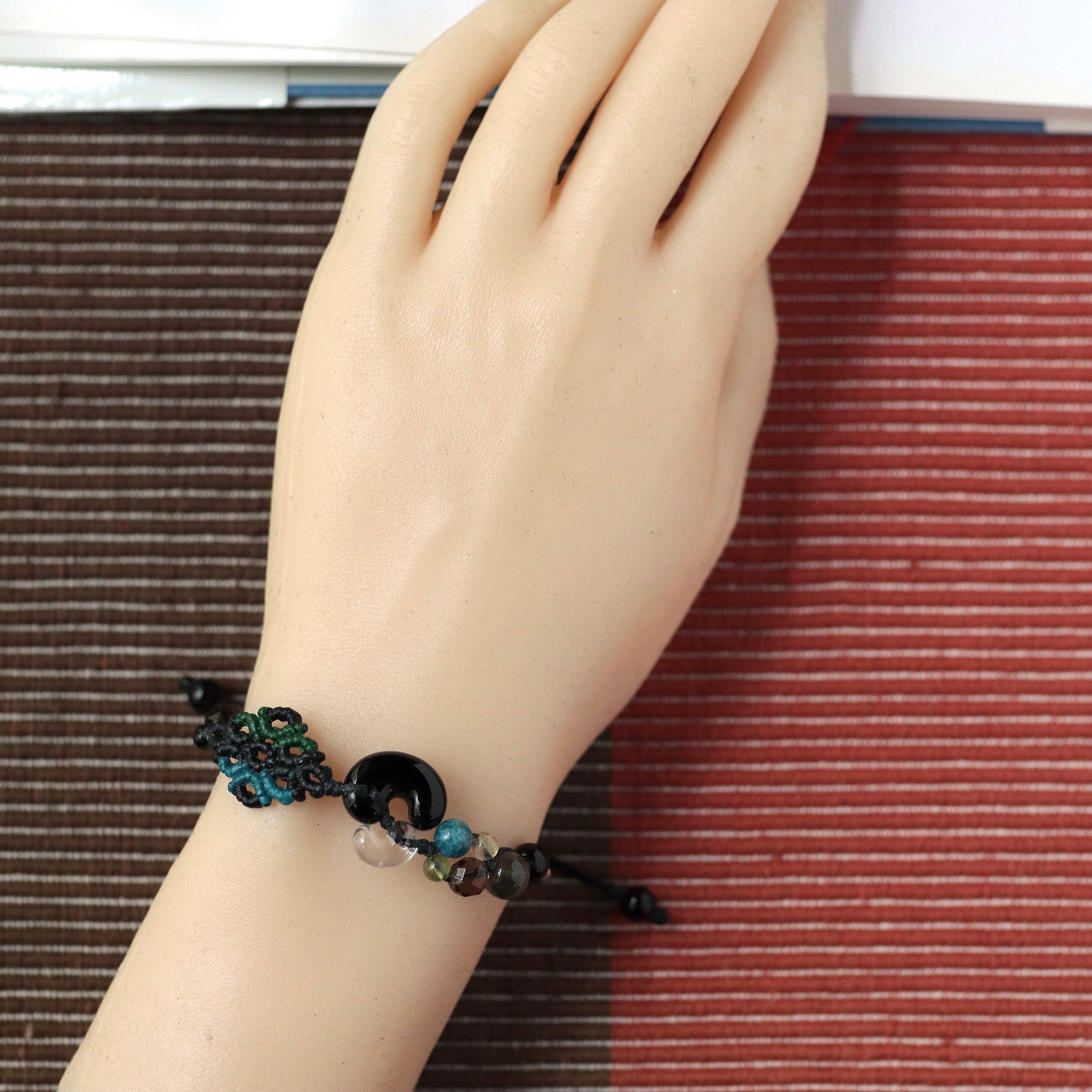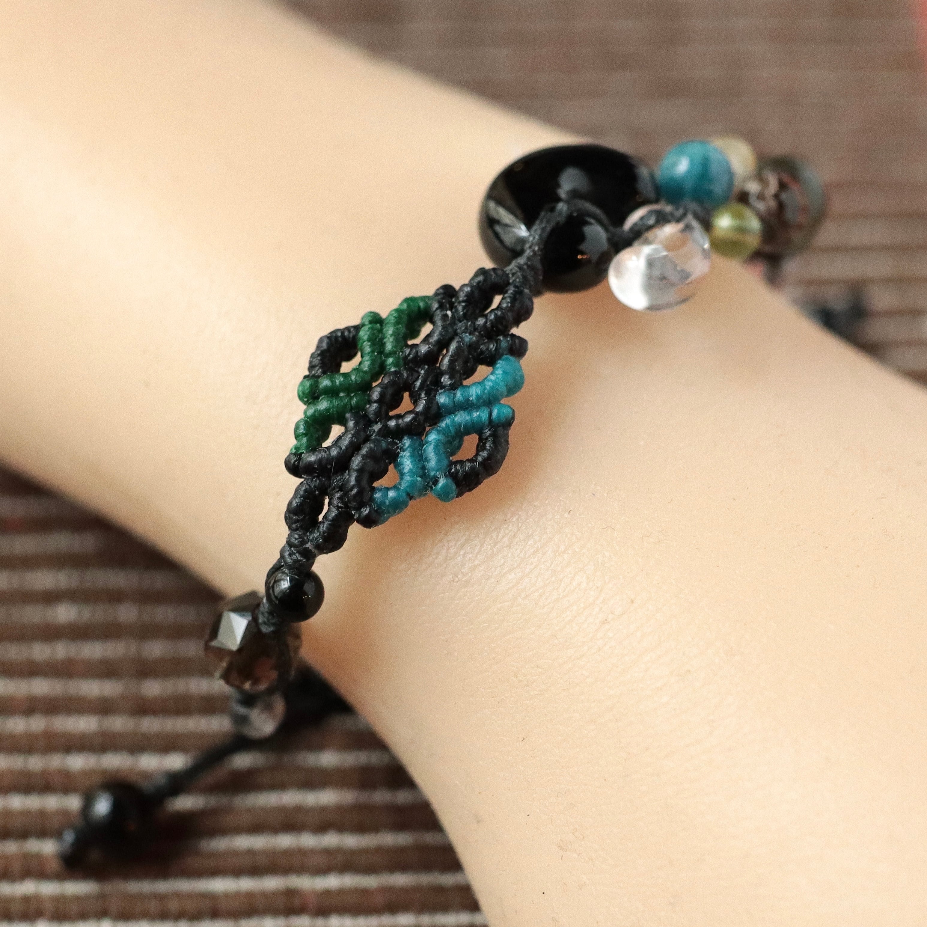 黒色メインですが軽やかにお付けいただける配色のブレスレットです