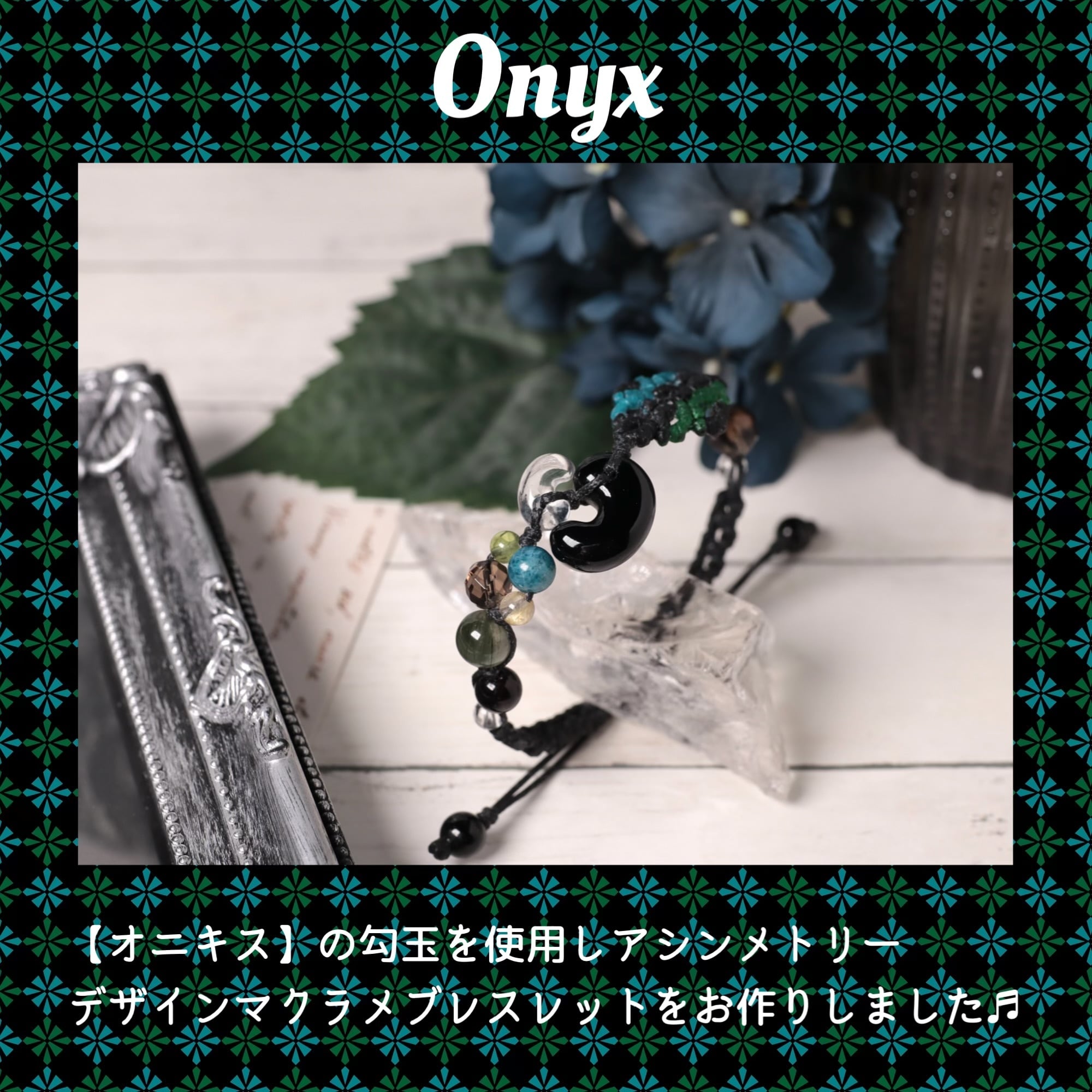 勾玉【16㎜オニキスと10㎜の水晶】を使用して