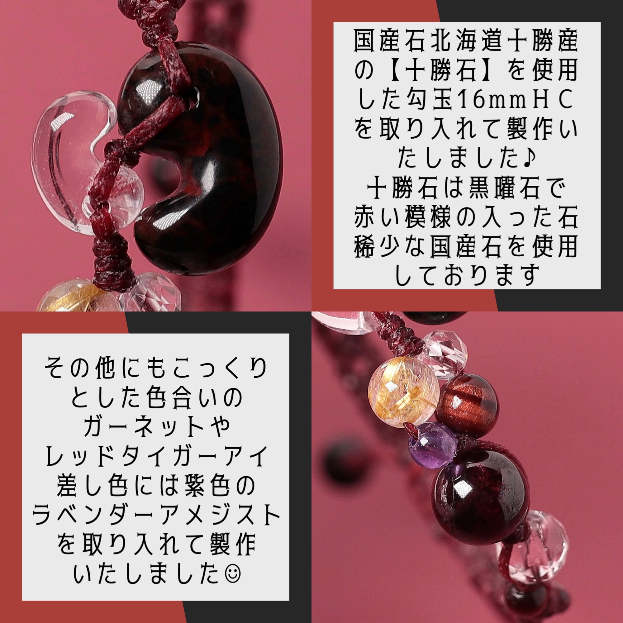 出雲型勾玉…16㎜十勝石(HC)、10㎜水晶