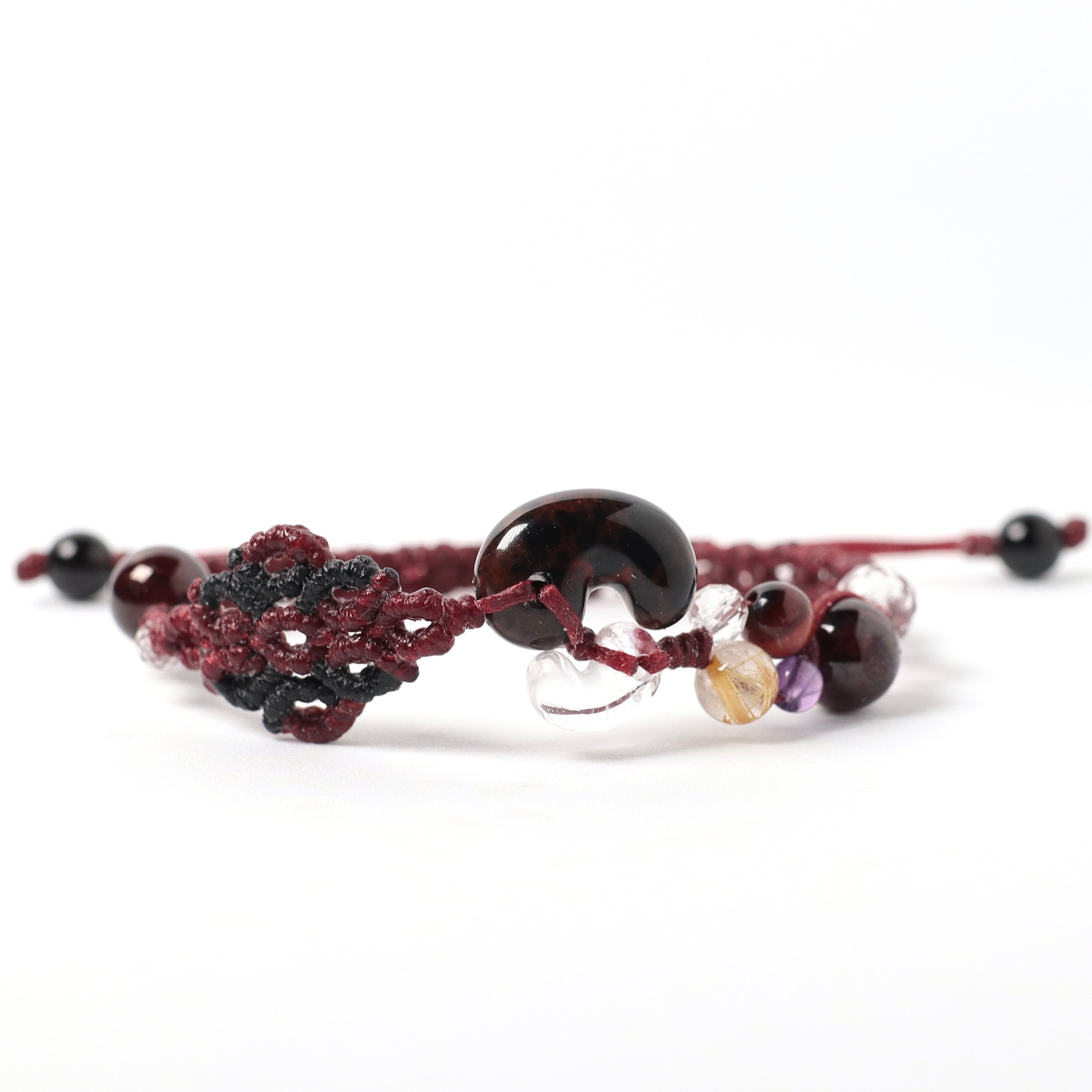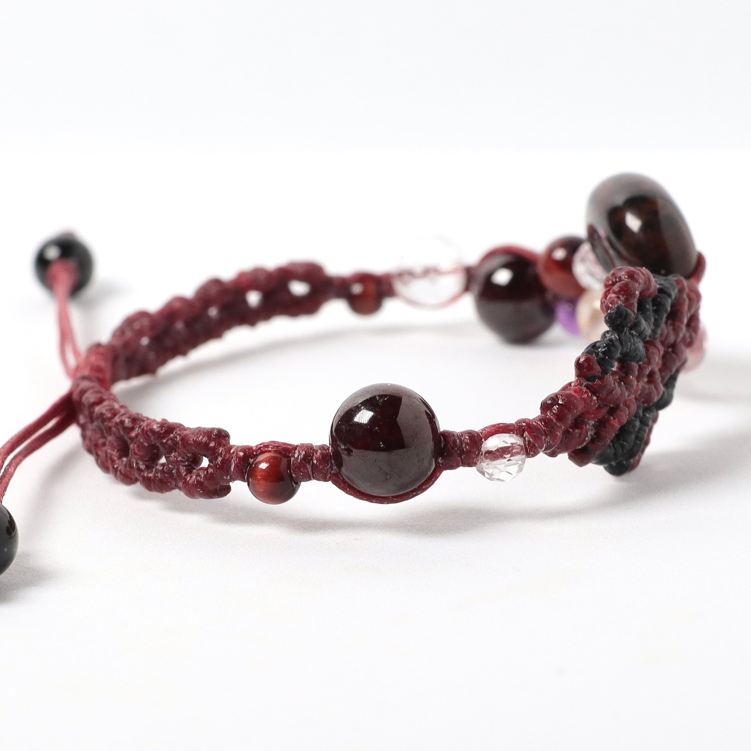ガーネット、水晶、ルチルクォーツ、レッドタイガーアイ、ラベンダーアメジスト、天然黒水晶