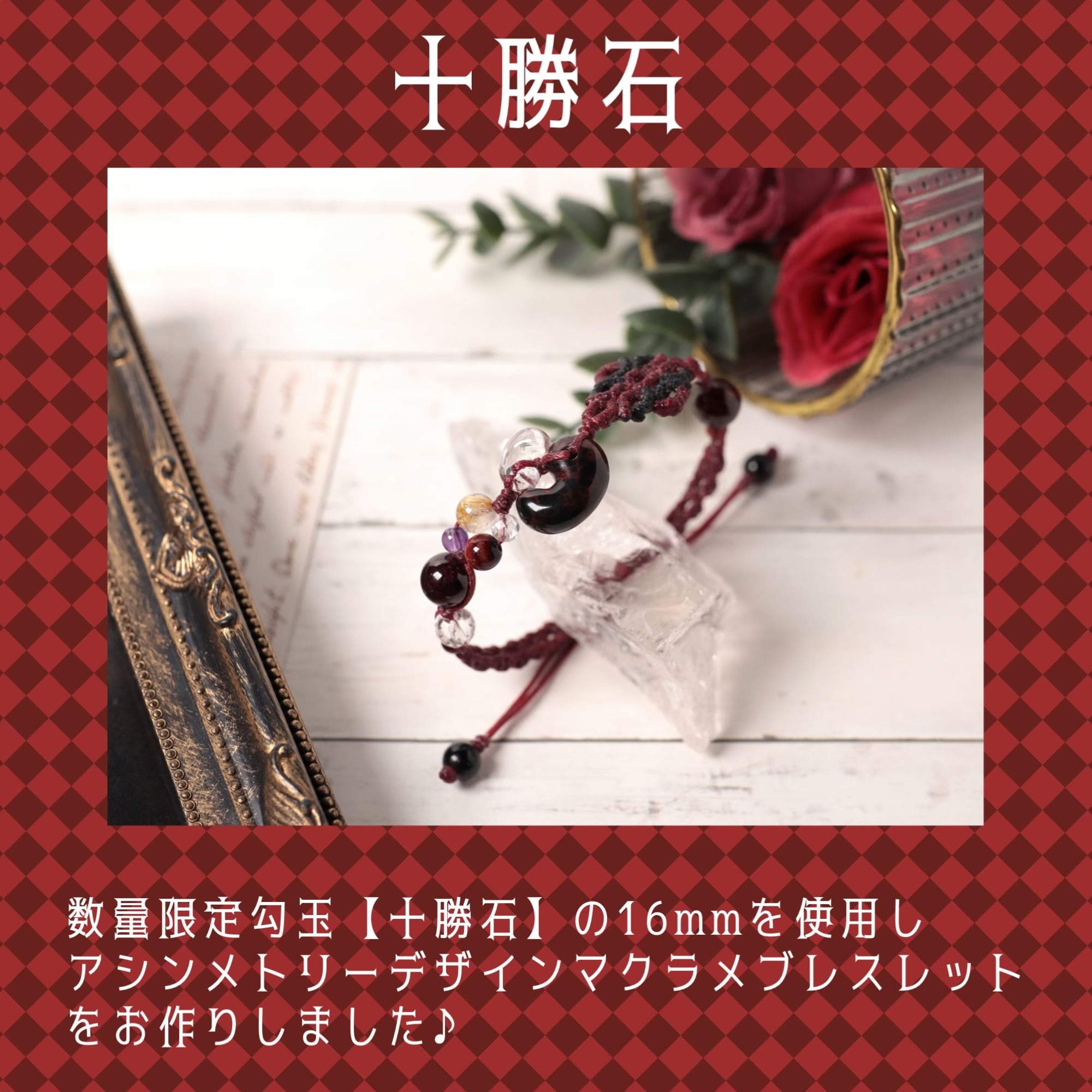 勾玉結アシンメトリーデザインのマクラメ編みブレスレットをお作りしました