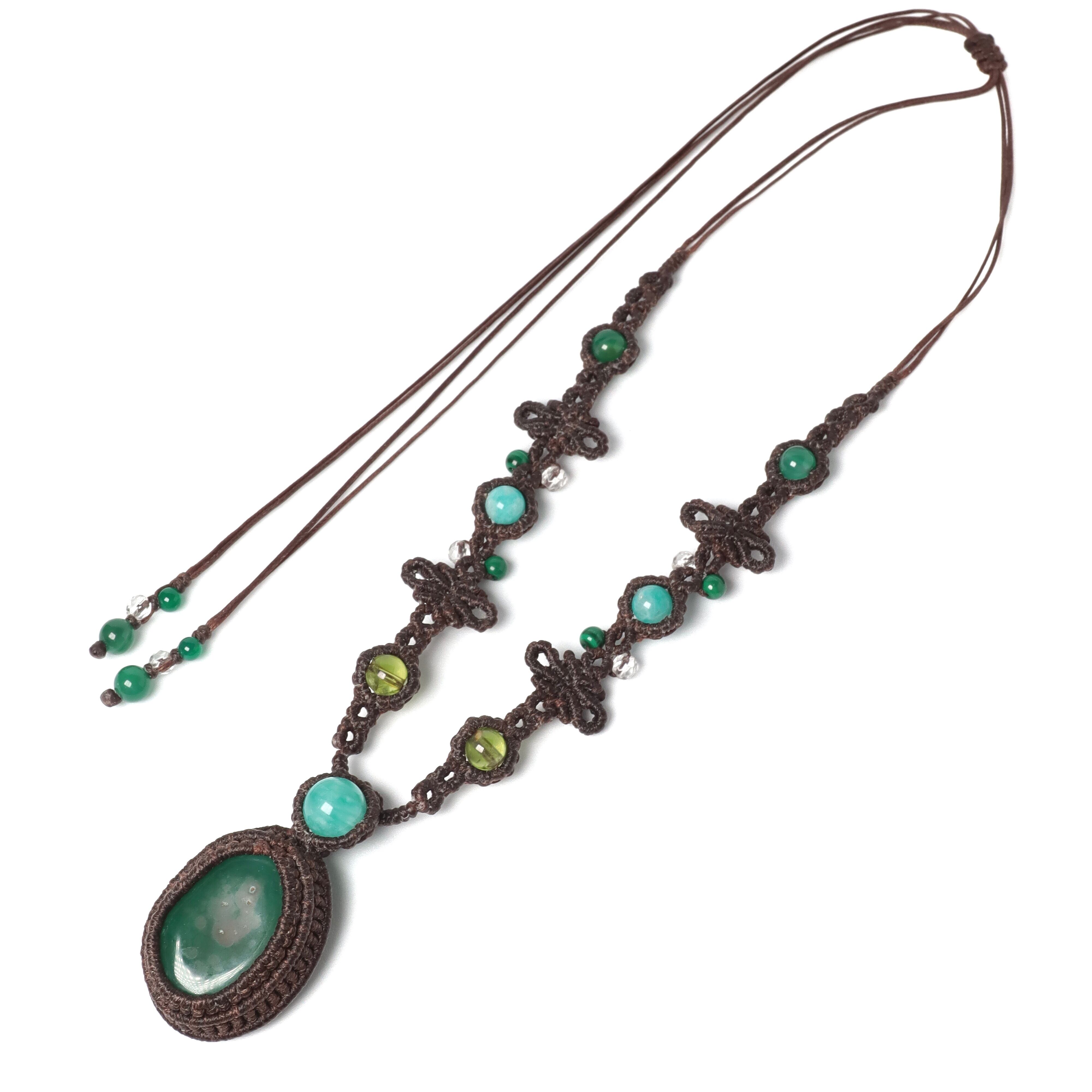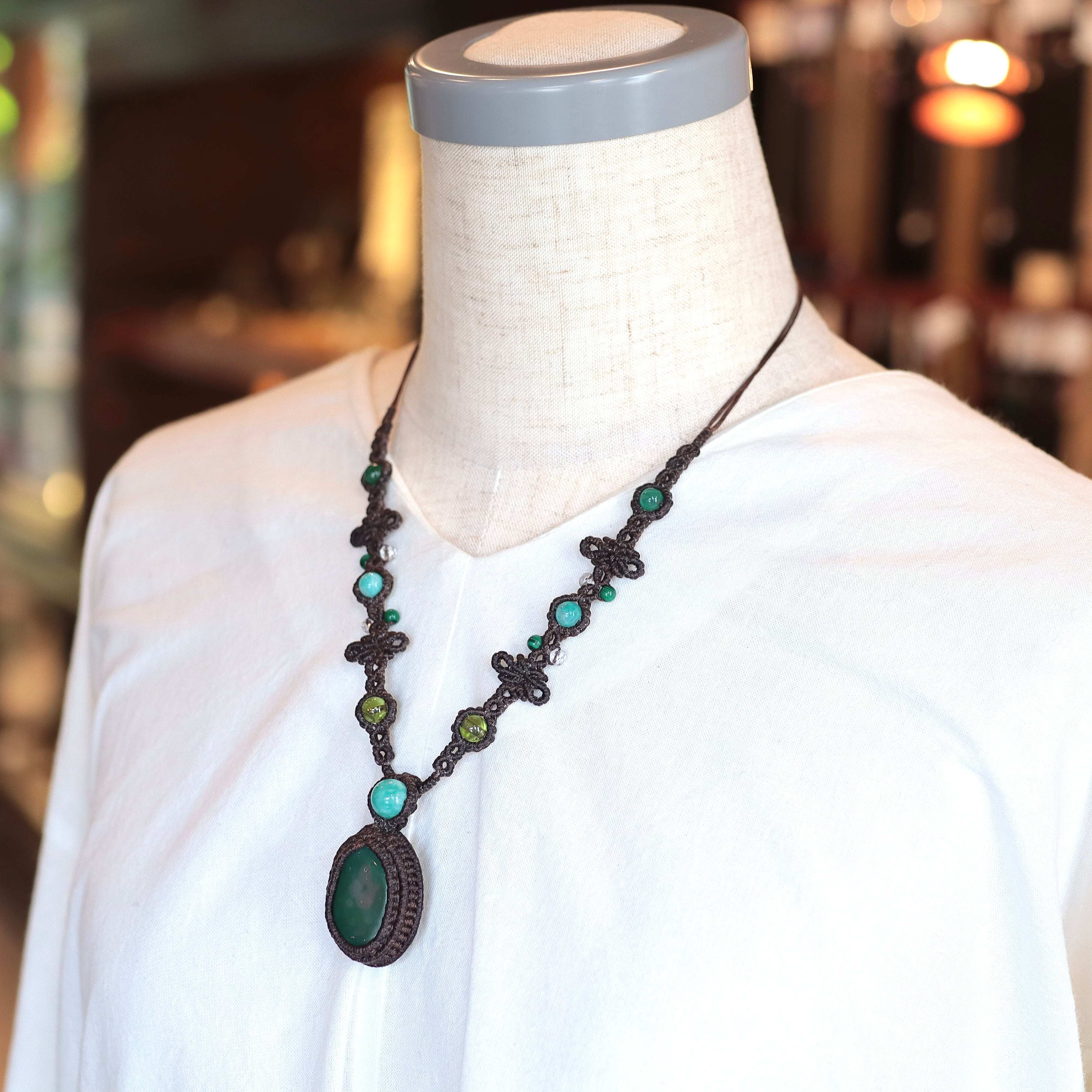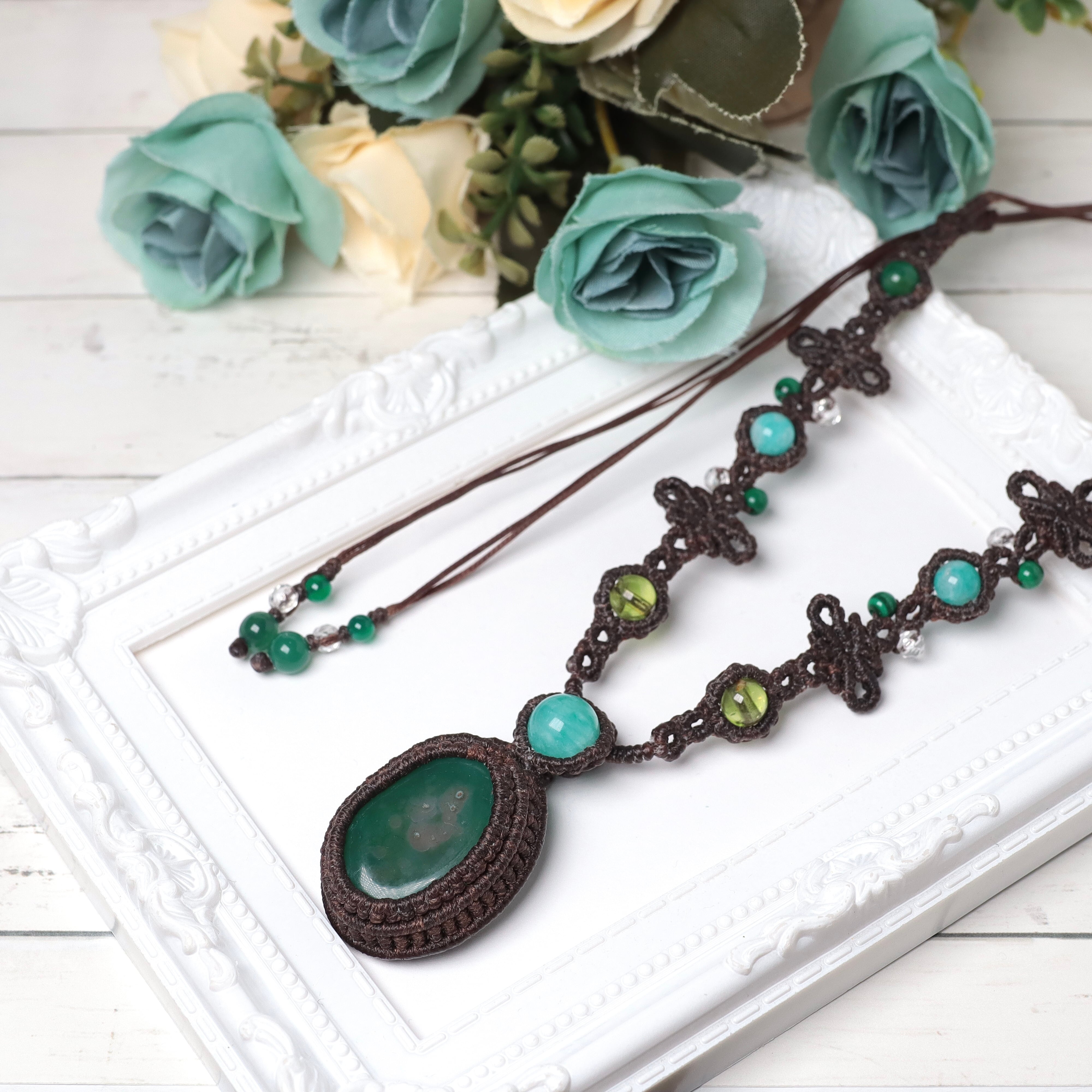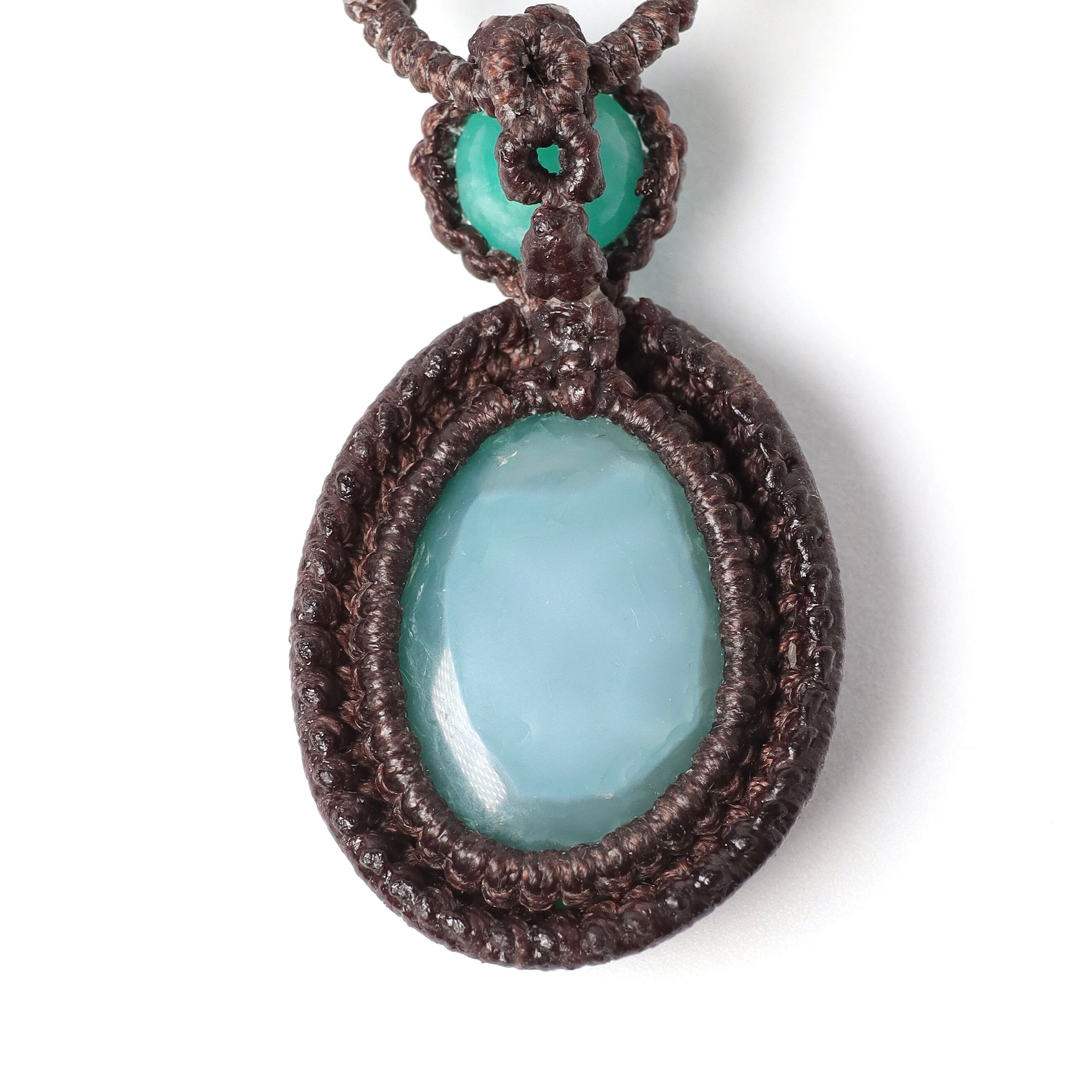 【青めのう】マクラメネックレス アマゾナイト