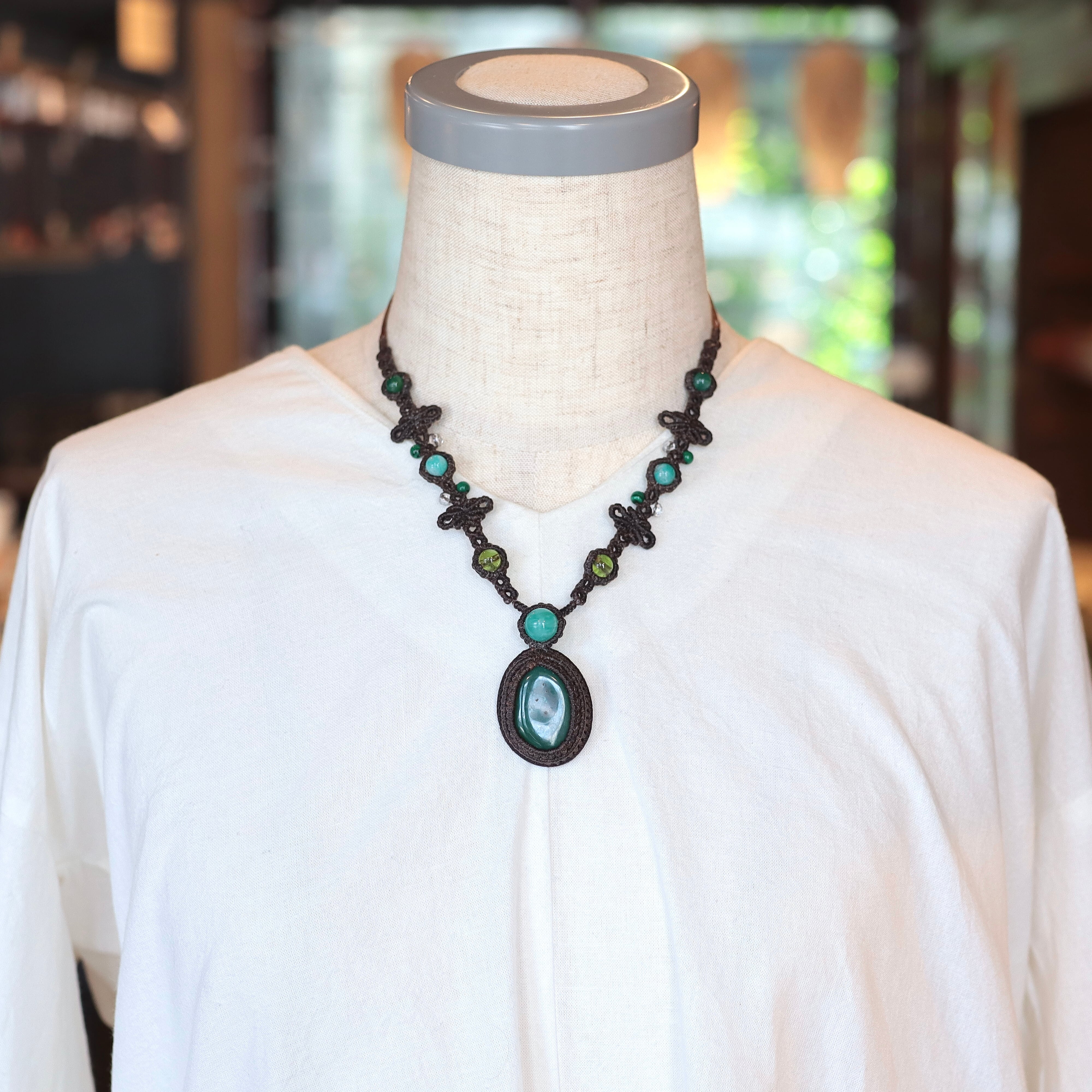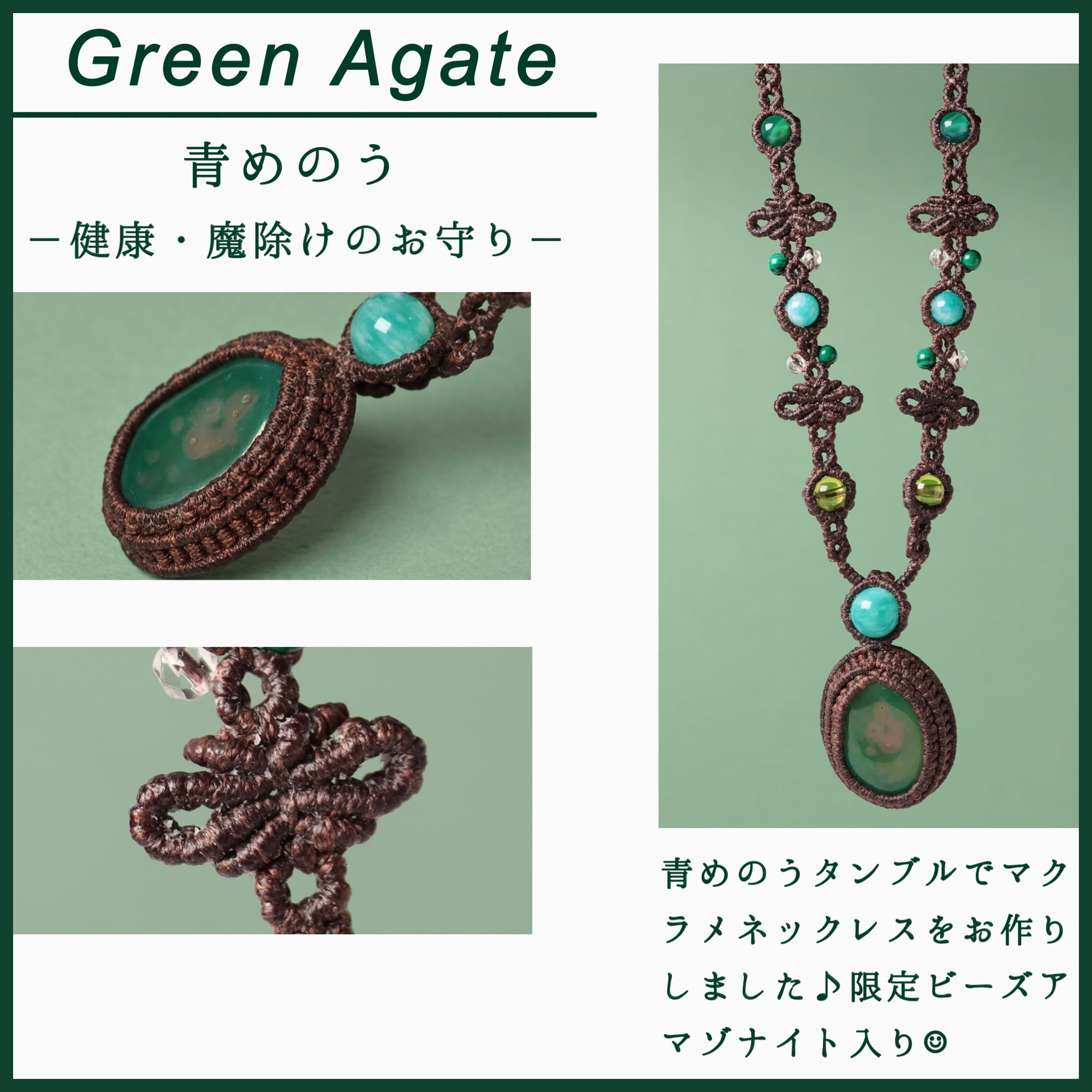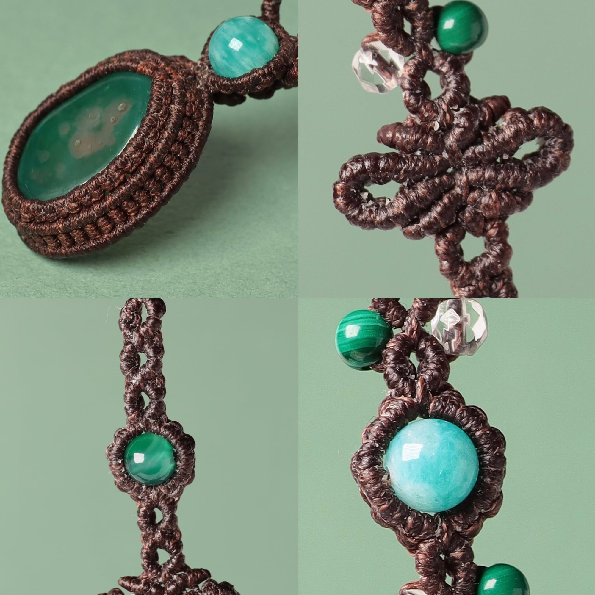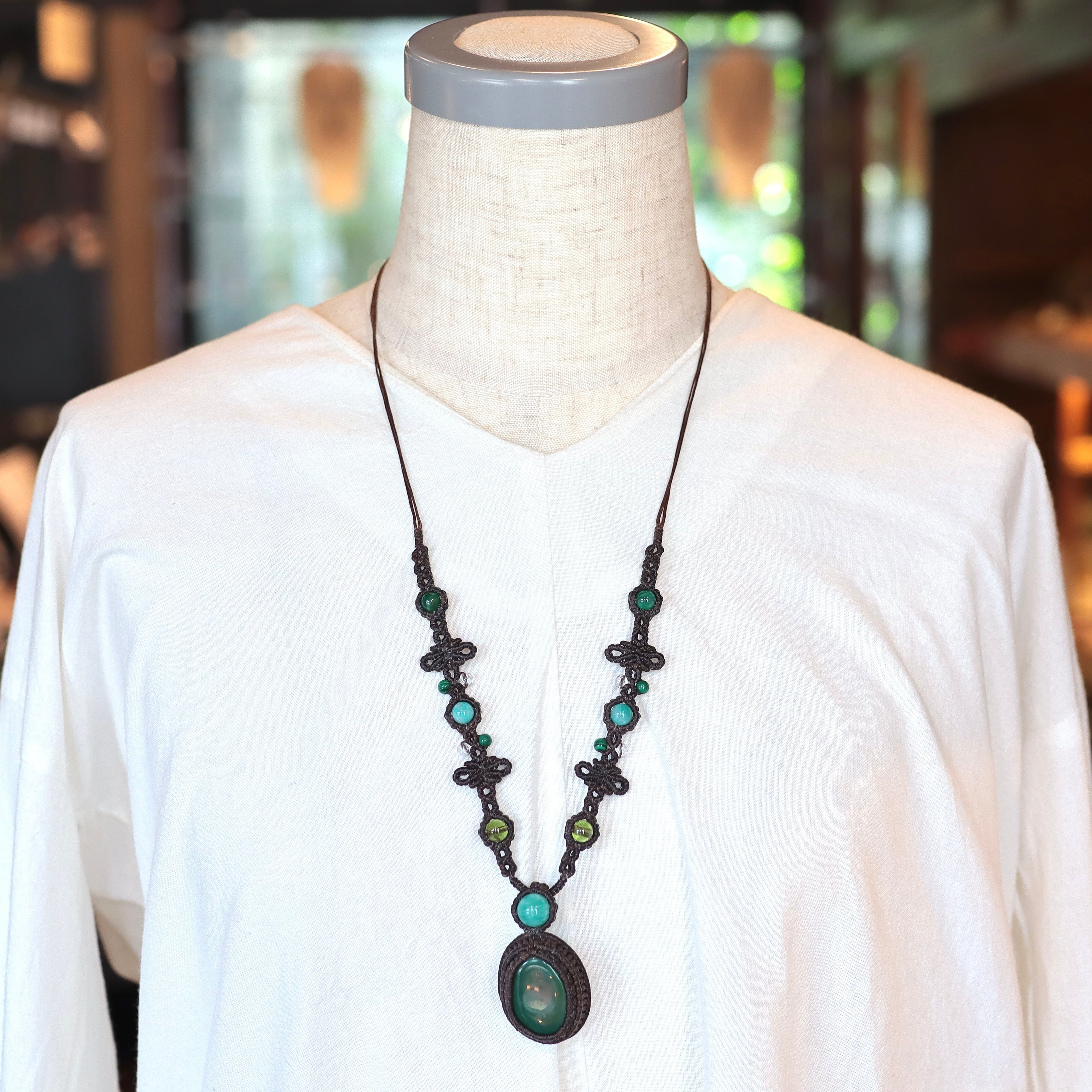【青めのう】マクラメネックレス アマゾナイト