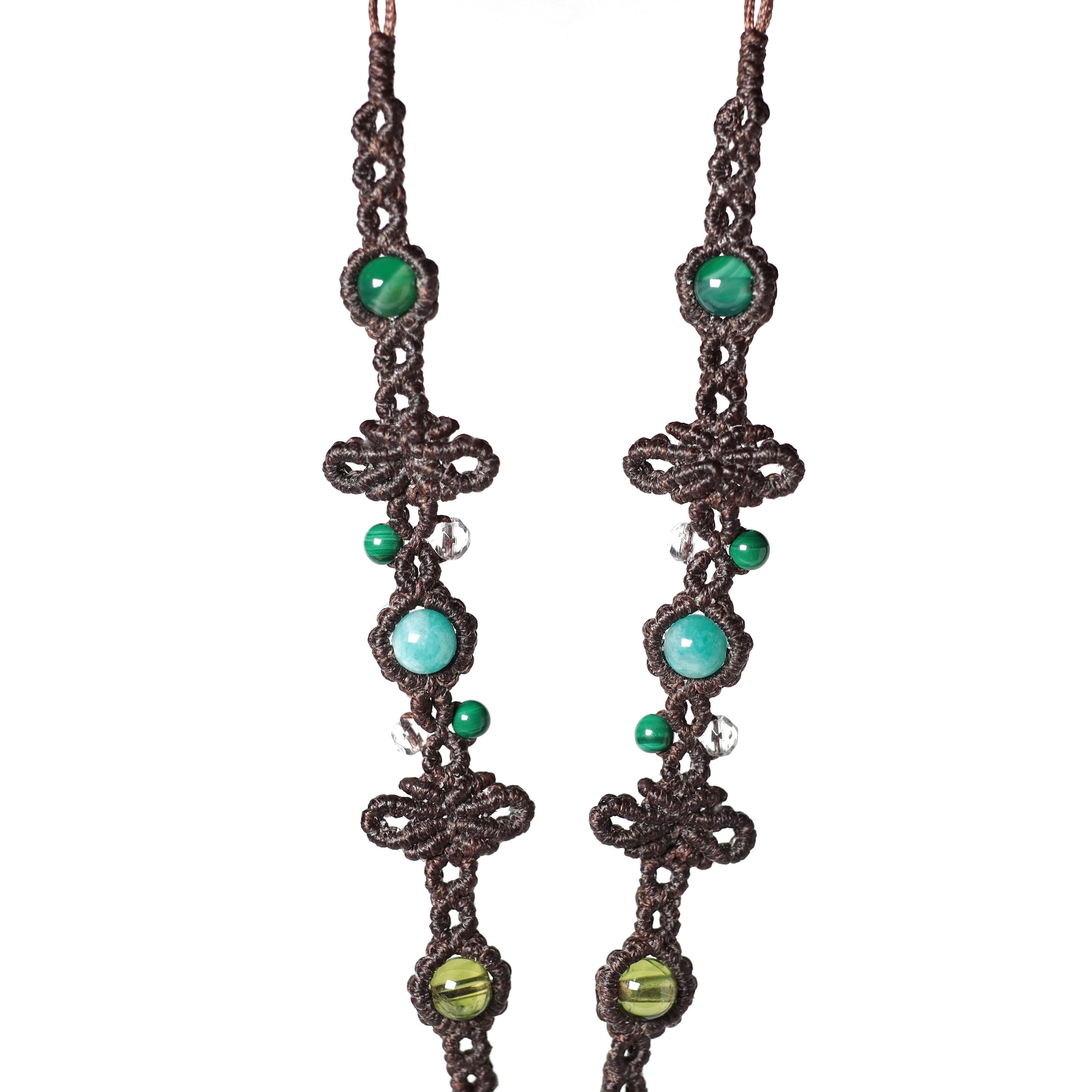 ペリドット、水晶、マラカイト、アマゾナイト、青めのう(縞入り)、青めのう