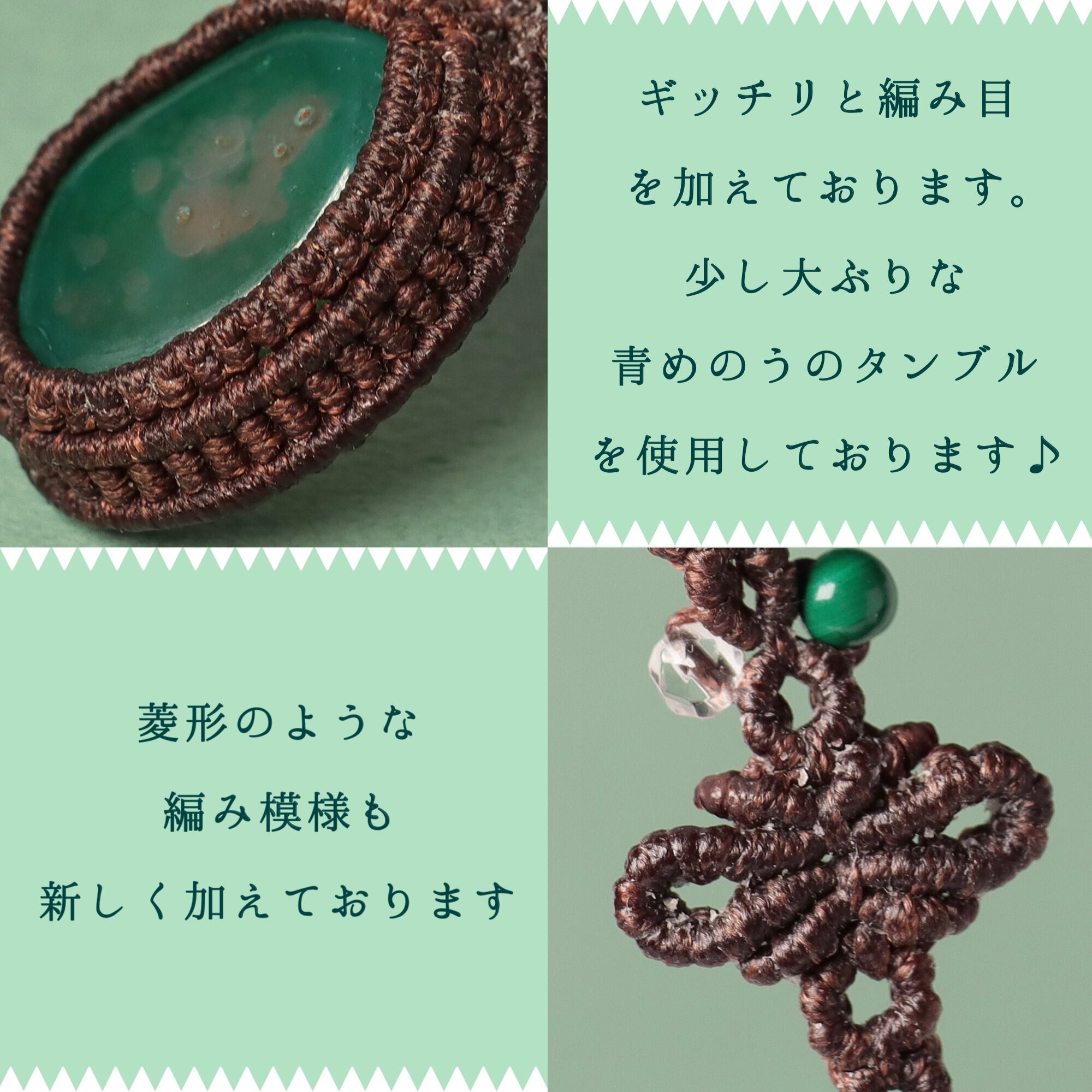 大きめな【青めのう】タンブルを使用してマクラメネックレスをお作りしました